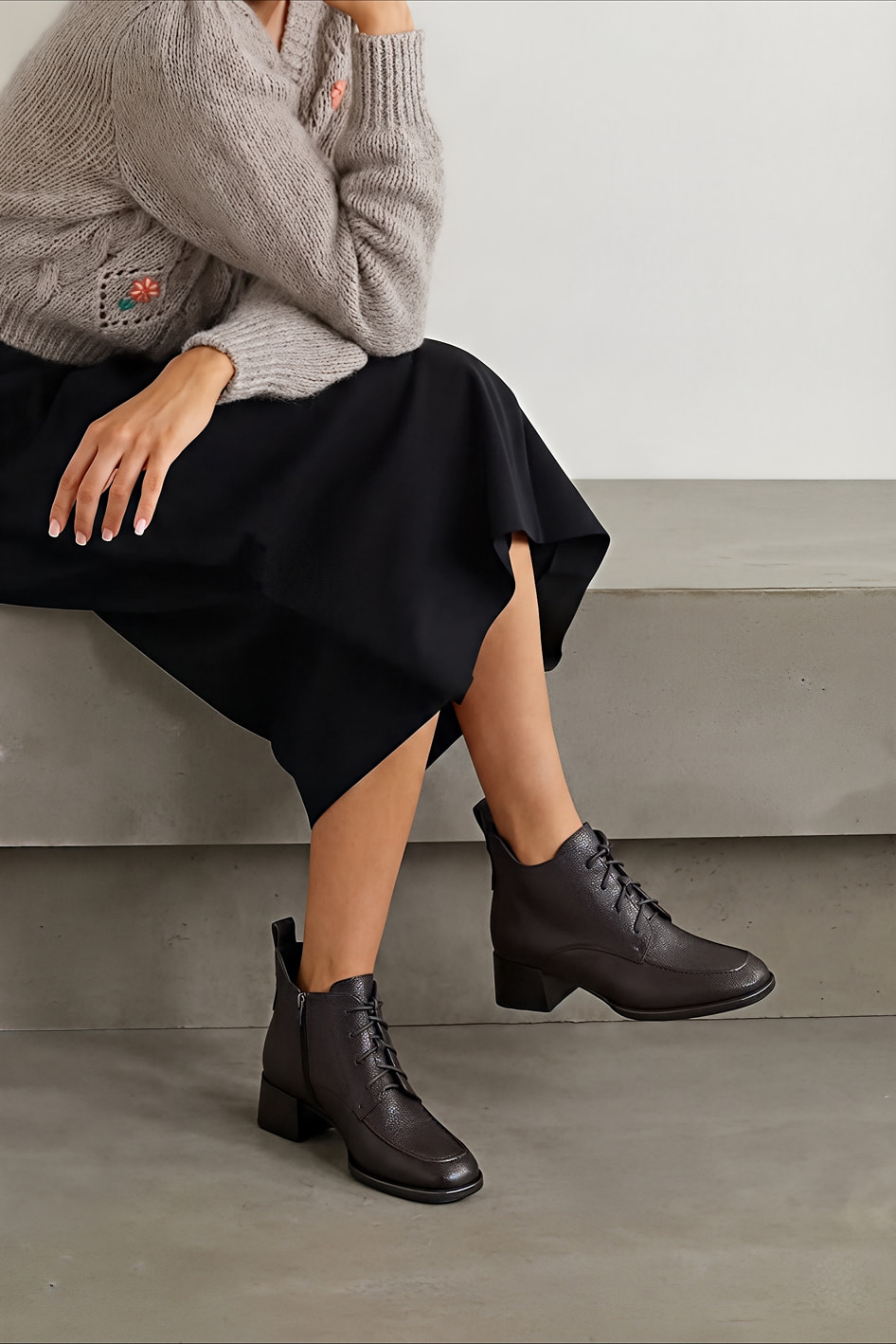 Женские демисезонные ботинки из натуральной коричневой кожи с фурнитурой в цвете металлик обеспечивают стиль, комфорт и практичность в прохладное время года. Округлый мысок и прямой широкий каблук создают современный элегантный образ, а гибкая подошва делает каждый шаг легким и удобным. Практичная молния и шнуровка позволяют идеально подогнать обувь по стопе, обеспечивая комфорт при длительной носке. Эти ботинки идеально подходят для повседневной образов и прогулок по городу, сочетая качественные натуральные материалы, долговечность и модный дизайн.