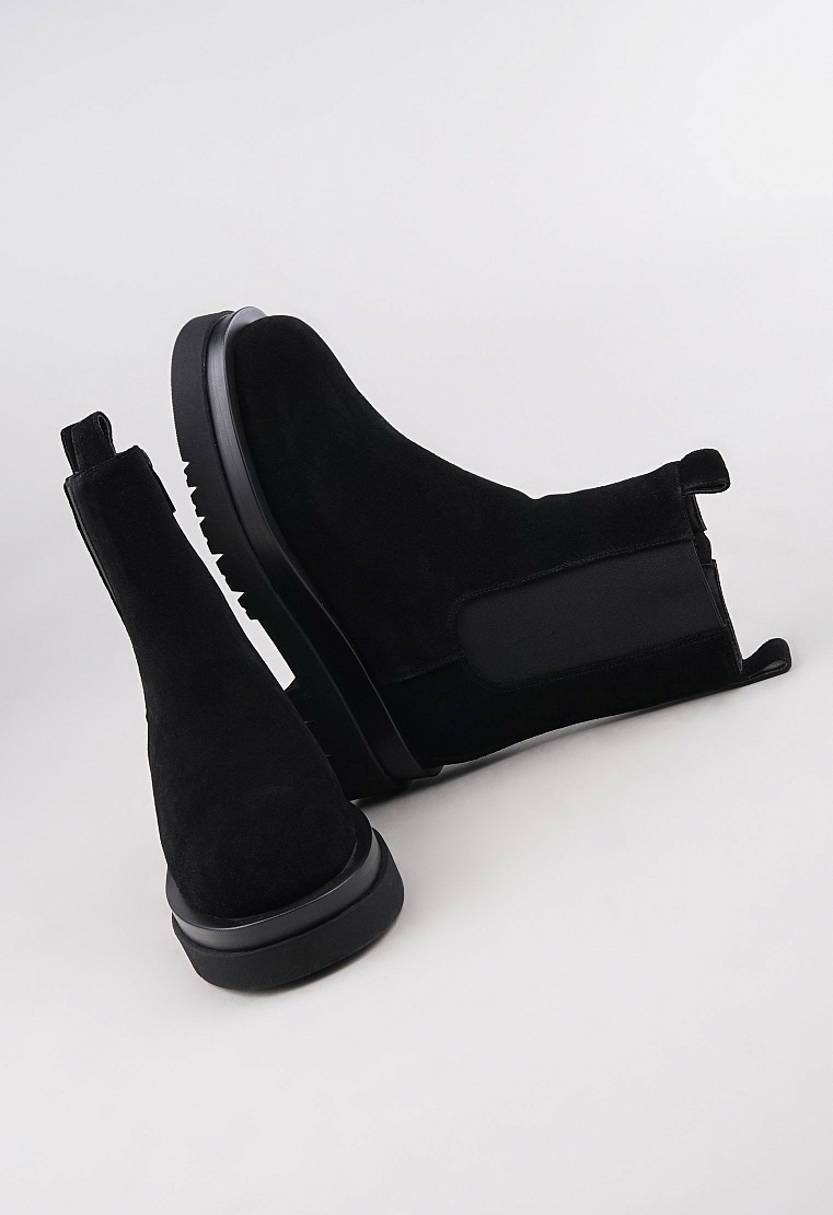 Обратите внимание: данная модель является большемеркой и отлично подходит для ног со средней полнотой и любым подъёмом стопы. Ботинки из новой коллекции выполнены из натуральной замши и дополнены акцентной платформой. Эластичные вставки обеспечивают особенно комфортную посадку, удобная молния позволяет легко одевать и снимать изделие. Утеплённая подкладка из натурального меха подарит тепло в зимний сезон. Актуальная модель станет незаменимым элементом базового гардероба.
