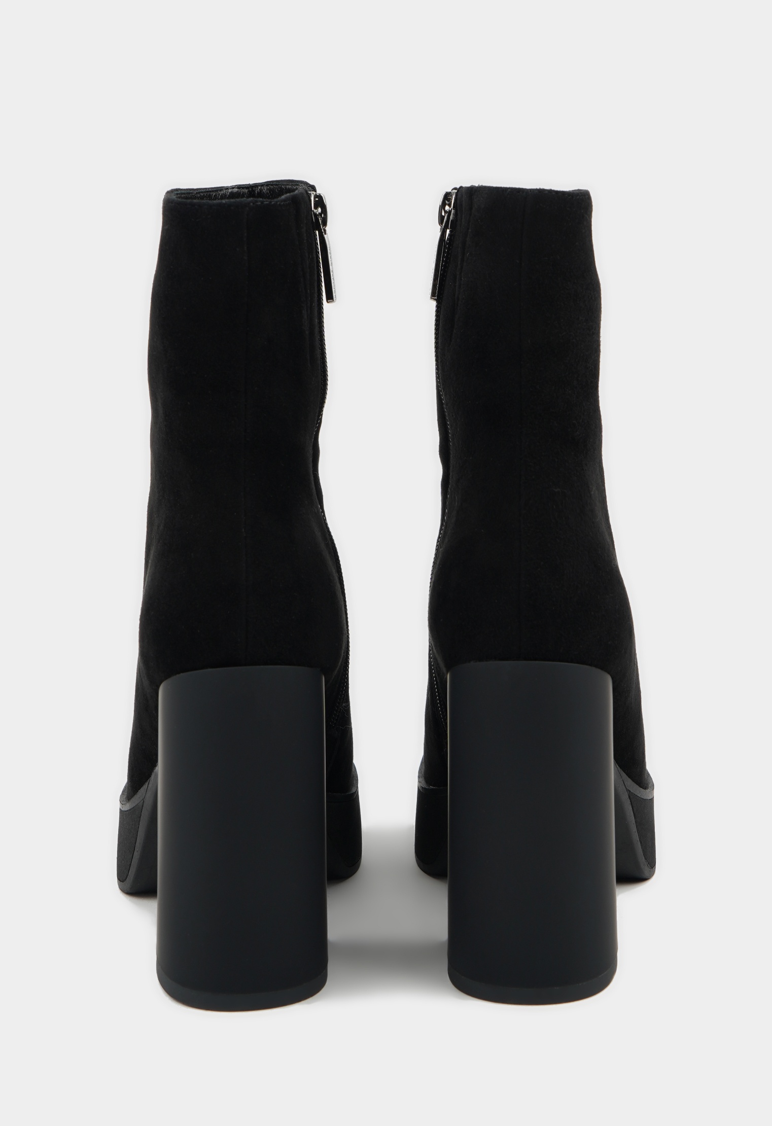 Эффектные ботильоны из новой коллекции выполнены из натуральной замши и представлены в черном цвете. Трендовый крой на платформе дополнен молнией сбоку и устойчивым каблуком. Мягкая подкладка и стелька из натурального меха подарят тепло в любую погоду. Современная модель удачно впишется в базовый гардероб и останется актуальной не один сезон. Чтобы выбрать наиболее комфортную модель, соответствующую вашим анатомическим особенностям, следует учесть полноту модели и характеристики стопы. Более подробную информацию по выбору размера и об особенностях модели предоставит наш менеджер.