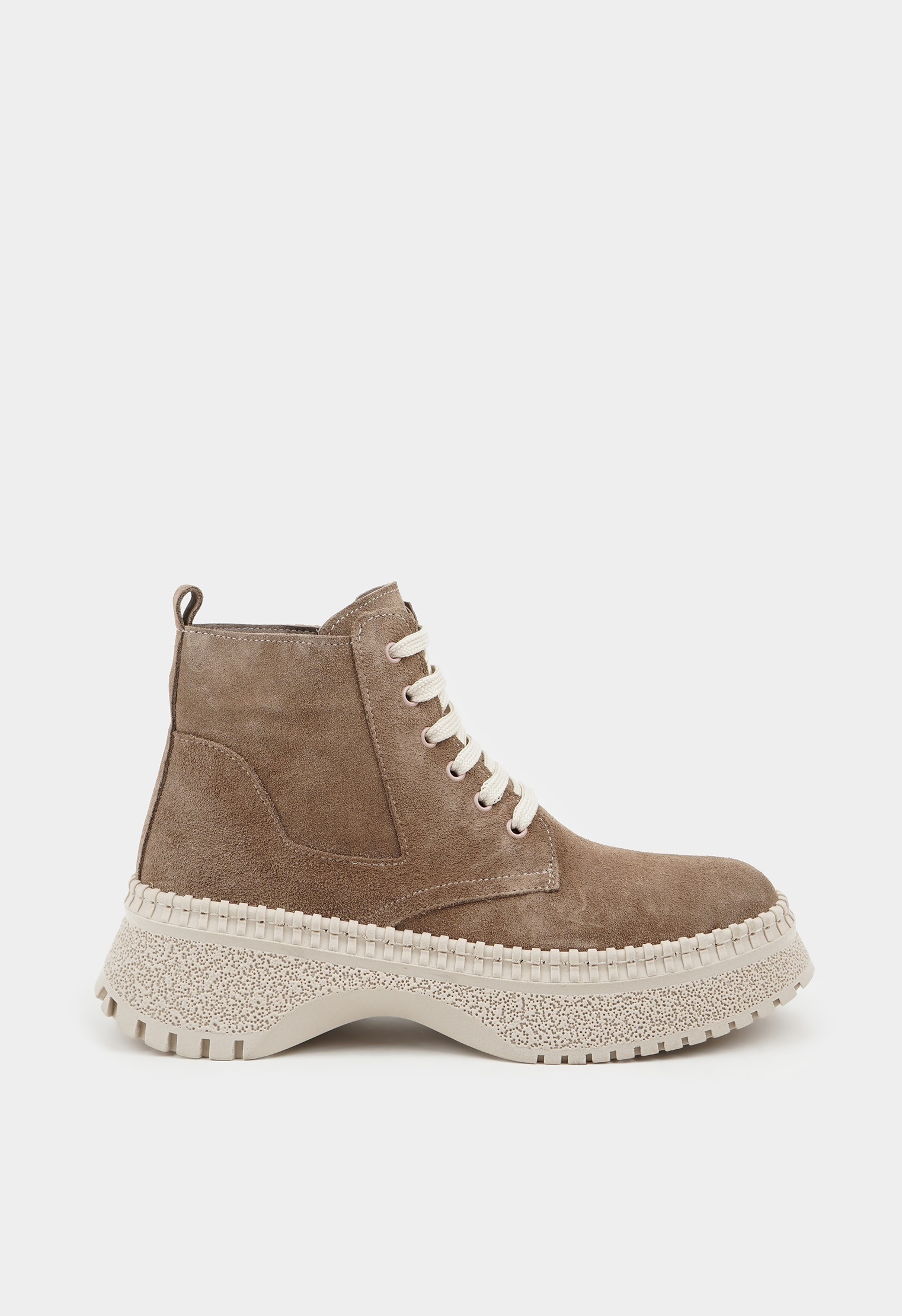 Высокие ботинки из новой коллекции выполнены из натуральной замши и представлены в однотонном дизайне. Актуальный силуэт дополнен контрастной шнуровкой и оригинальной платформой. Утепленная подкладка из натурального меха обеспечивает комфорт в зимний сезон. Лаконичная модель удачно впишется в базовый гардероб и никогда не выйдет из моды. Чтобы выбрать наиболее комфортную модель, соответствующую вашим анатомическим особенностям, следует учесть полноту модели и характеристики стопы. Более подробную информацию по выбору размера и об особенностях модели предоставит наш менеджер.