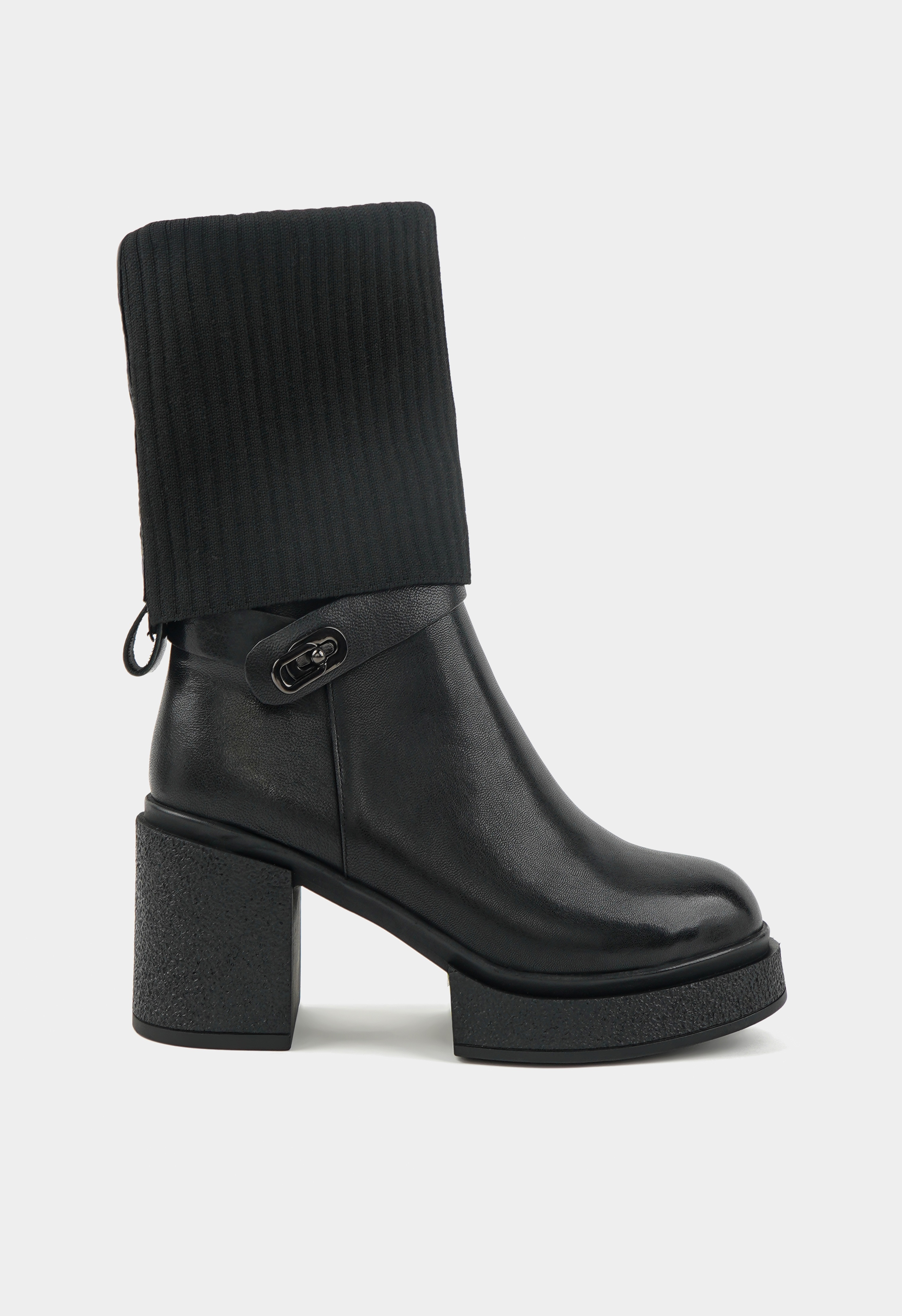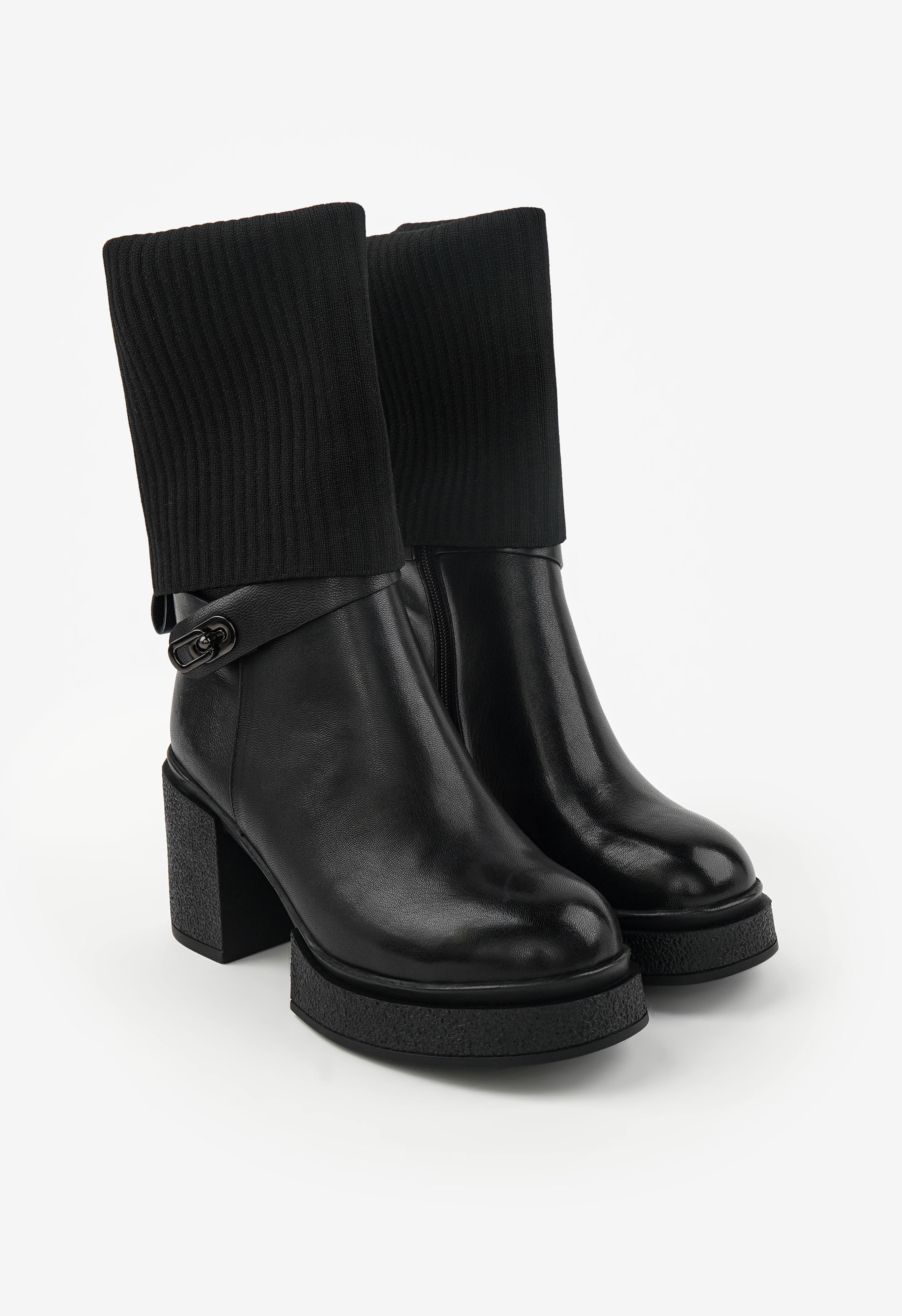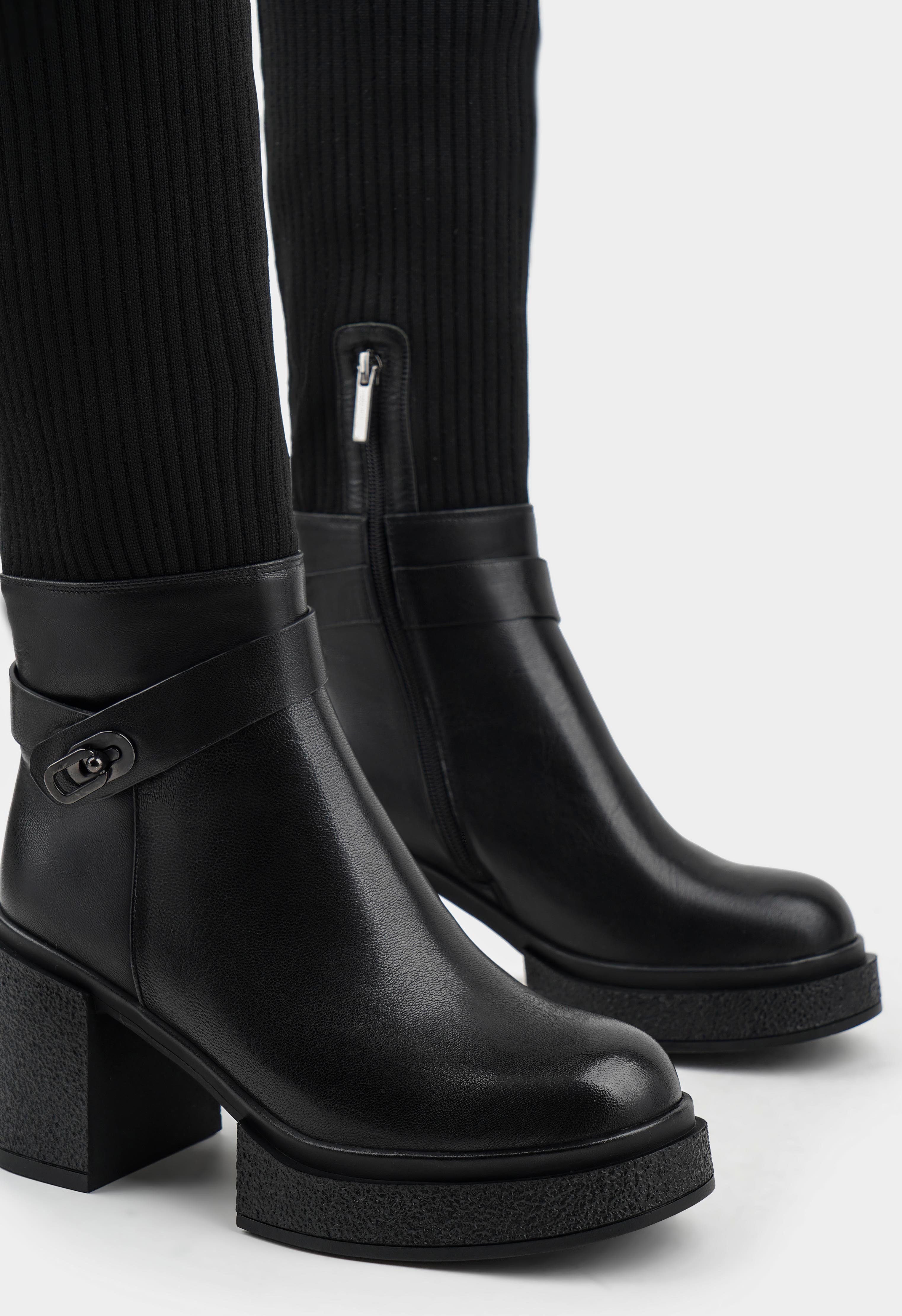 Полусапоги из натуральной кожи с теплым мехом внутри – идеальный союз стиля и уюта для холодного сезона. Жесткая подошва и устойчивый широкий каблук обеспечивают комфорт и поддержку даже в долгих прогулках, а округлый мысок сохраняет свободу движений. Контрастное текстильное голенище добавляет модный акцент, в то время как молния с фурнитурой металлик завершает образ современно и функционально.