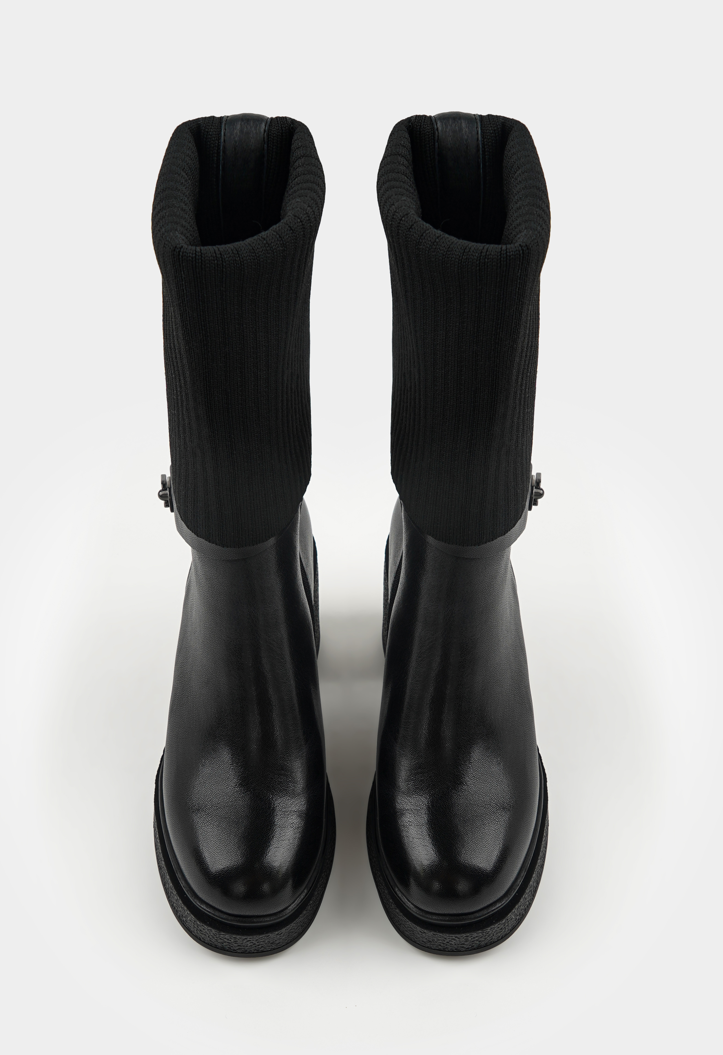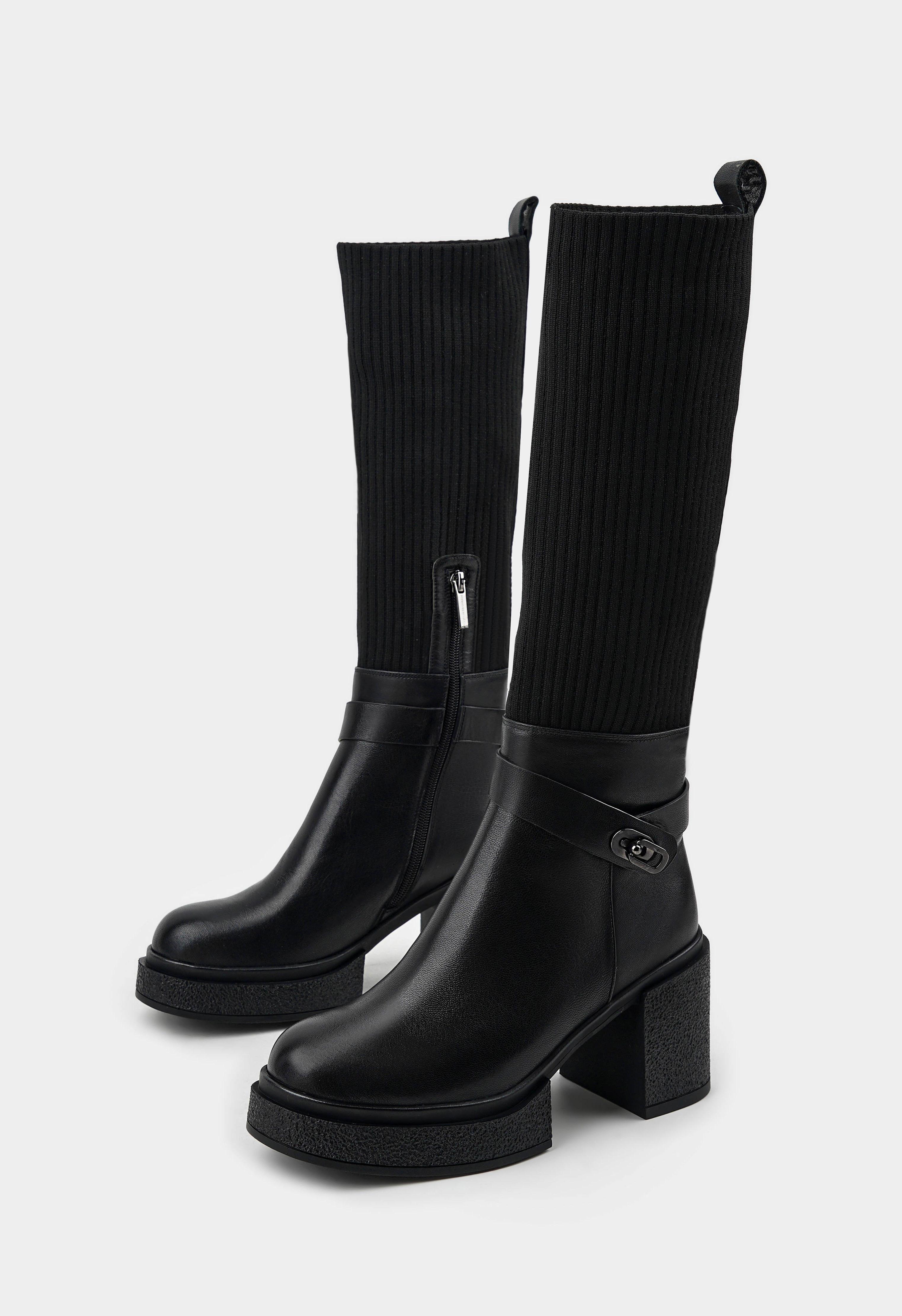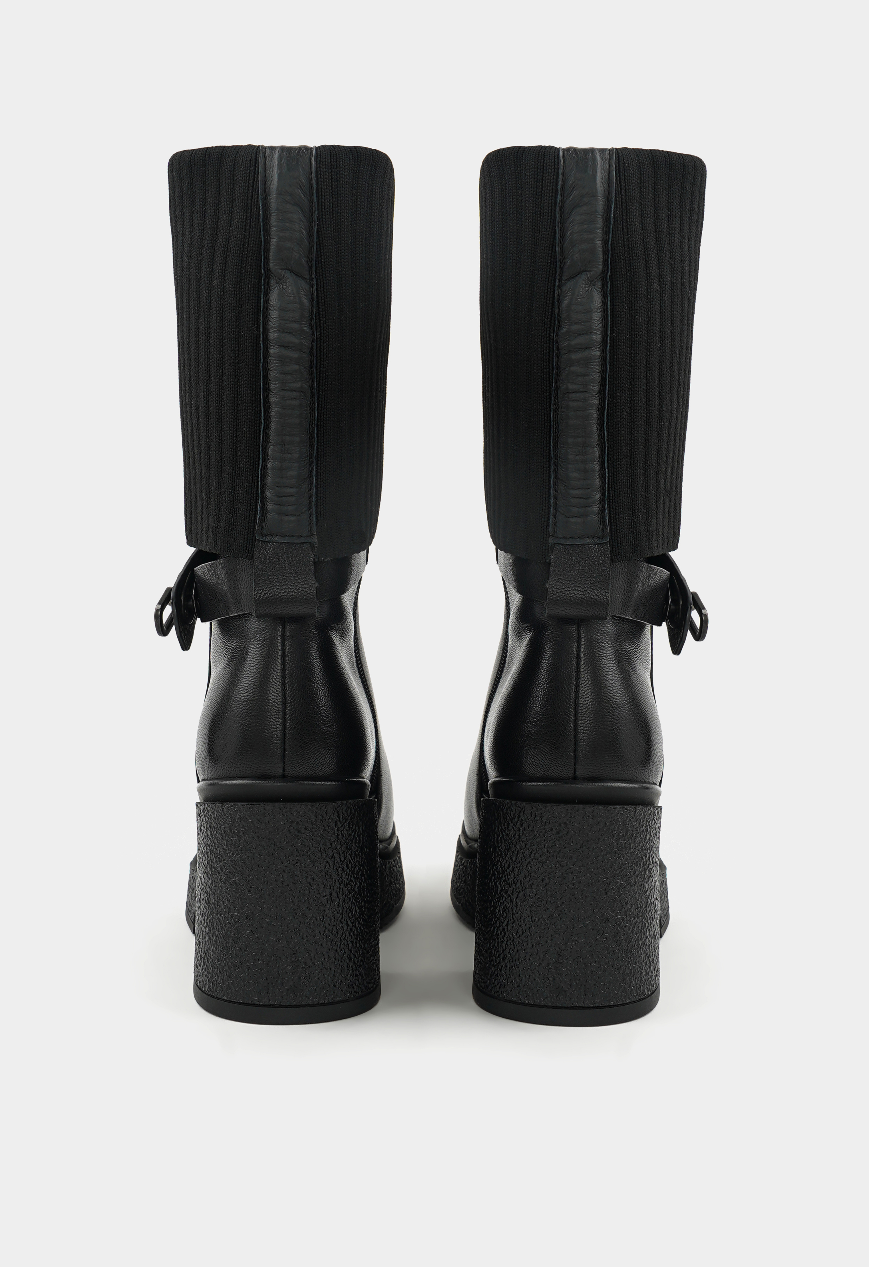 Полусапоги из натуральной кожи с теплым мехом внутри – идеальный союз стиля и уюта для холодного сезона. Жесткая подошва и устойчивый широкий каблук обеспечивают комфорт и поддержку даже в долгих прогулках, а округлый мысок сохраняет свободу движений. Контрастное текстильное голенище добавляет модный акцент, в то время как молния с фурнитурой металлик завершает образ современно и функционально.