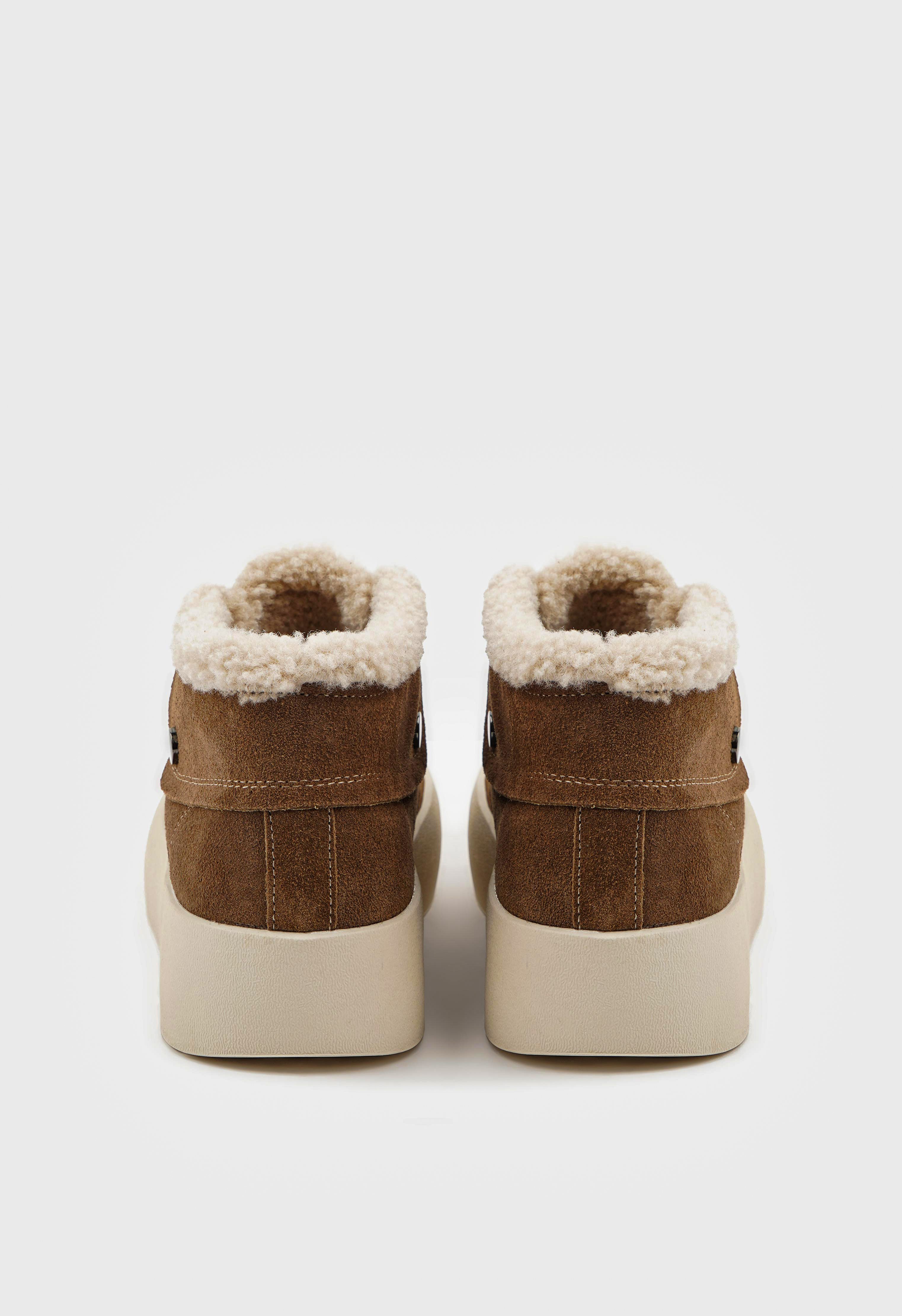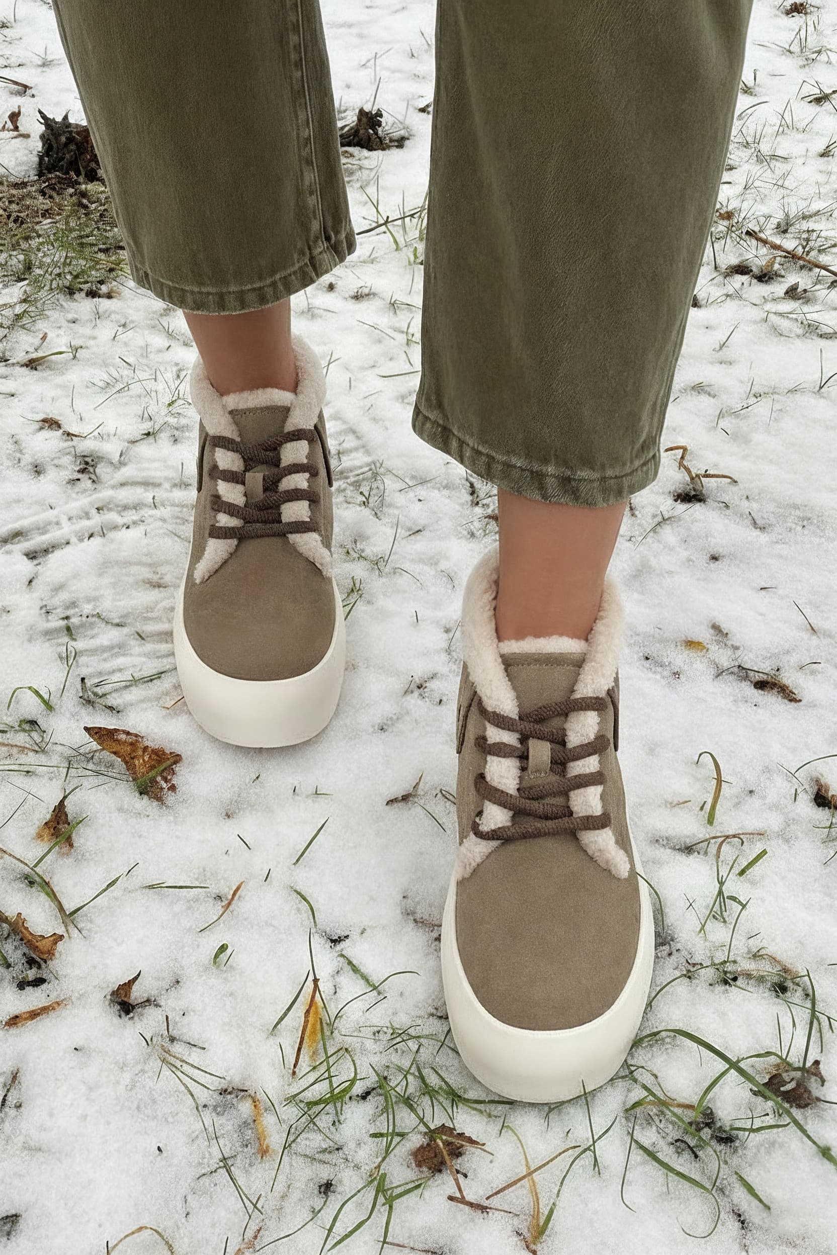 Теплые зимние ботинки из мягкой натуральной замши с густой натуральной шерстью внутри подарят уют и защиту в самые морозные дни. Гибкая подошва и устойчивая платформа обеспечивают комфорт при ходьбе, а округлый мысок дает ногам свободу и удобство. Стильная металлическая фурнитура и классическая шнуровка добавляют образу динамики и позволяют регулировать посадку. Глубокий коричневый цвет смотрится благородно и легко сочетается с повседневным гардеробом, делая эти ботинки идеальным выбором для города и активного отдыха зимой.