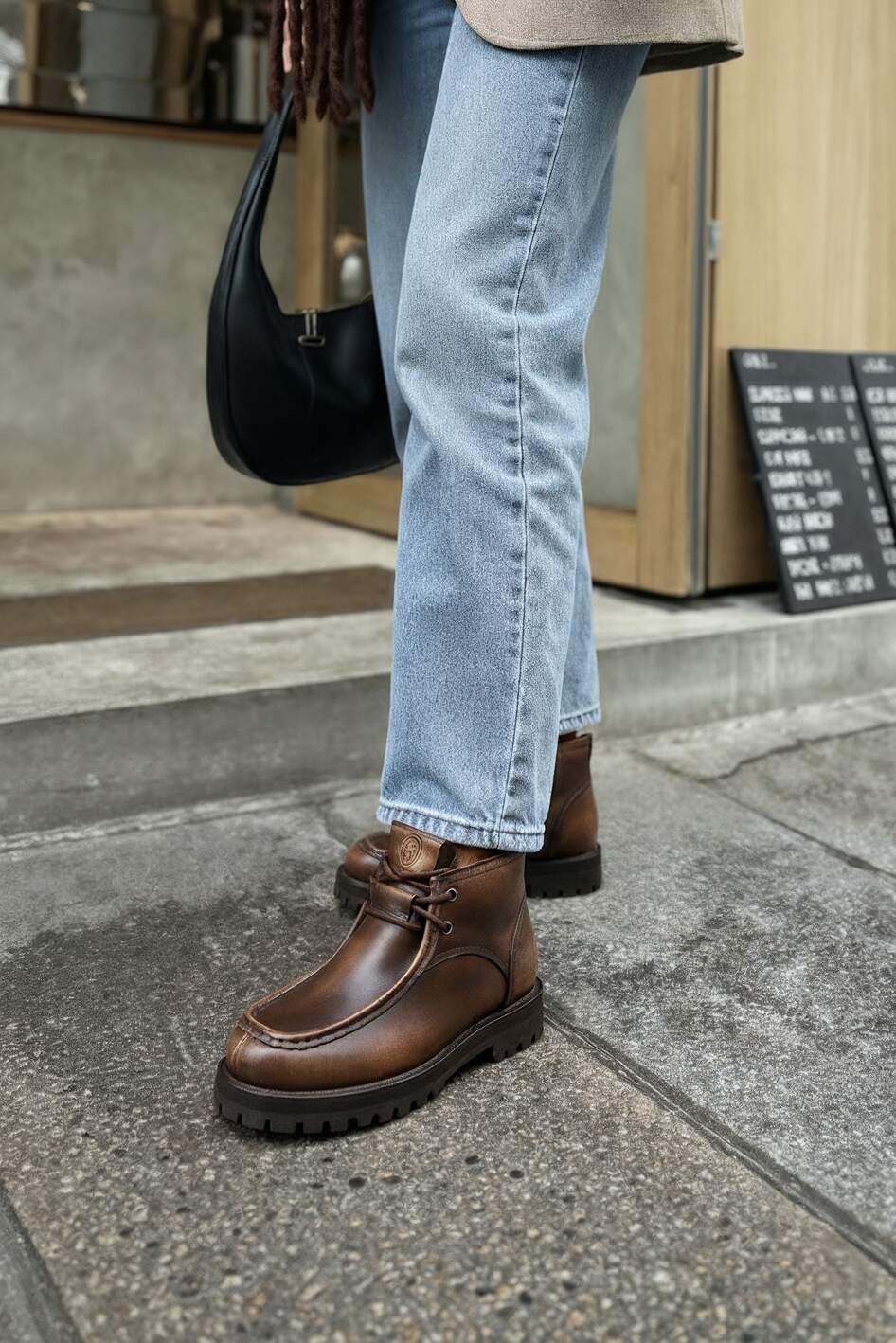 Зимние ботинки из натуральной кожи в глубоком коричневом цвете – это сочетание безупречного стиля и настоящего комфорта. Внутри – мягкий натуральный мех, который сохранит тепло даже в самые морозные дни, а жесткая подошва и широкий каблук обеспечат уверенную устойчивость на любом покрытии. Округлый мысок и классическая шнуровка с фурнитурой в цвете металлик добавляют элегантности и удобства в повседневной носке. Эти ботинки станут вашим универсальным выбором на зиму: они прекрасно впишутся как в деловой образ, так и в более свободный, оставаясь надежными, стильными и удобными каждый день.
