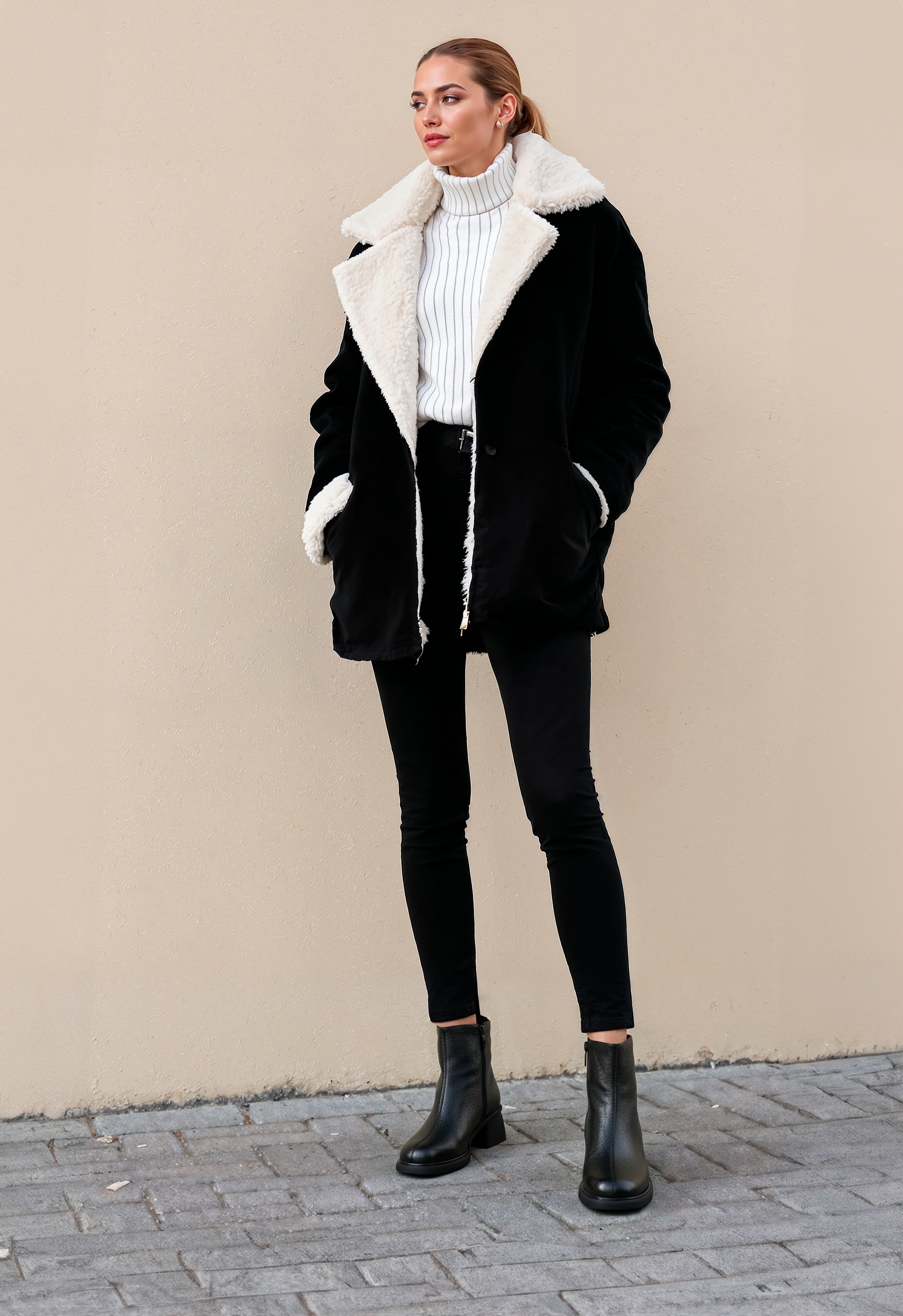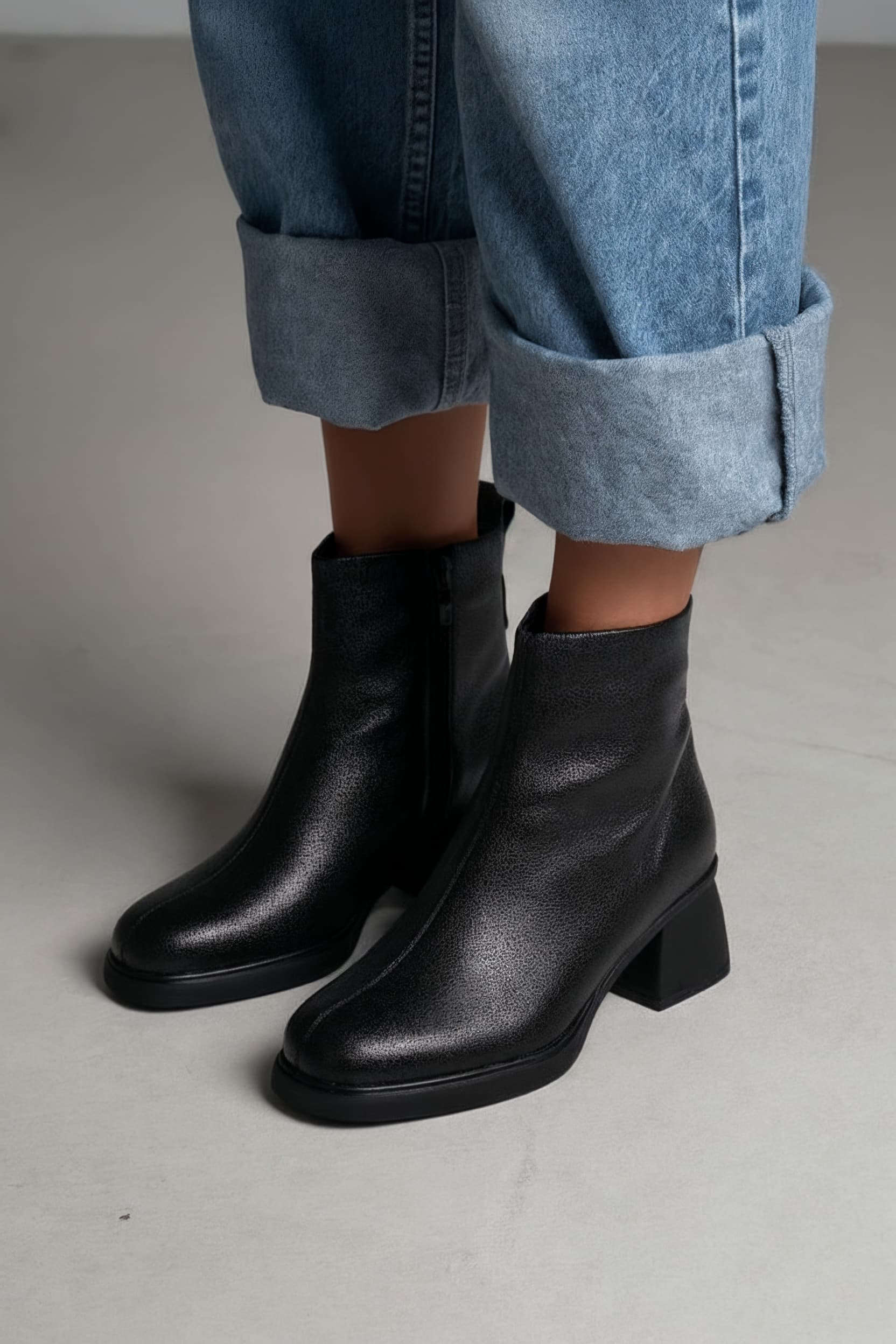 Черные ботильоны из натуральной кожи с мягким натуральным мехом внутри – это гармония стиля и тепла для прохладных дней. Гибкая подошва и округлый мысок делают их невероятно удобными в ежедневной носке, а трапециевидный каблук добавляет устойчивости и визуально вытягивает силуэт. Элегантная металлическая фурнитура и практичная молния подчеркивают современный характер модели. Эти ботильоны легко впишутся как в повседневные, так и в более строгие образы, даря уверенность, комфорт и безупречный стиль в любой ситуации.