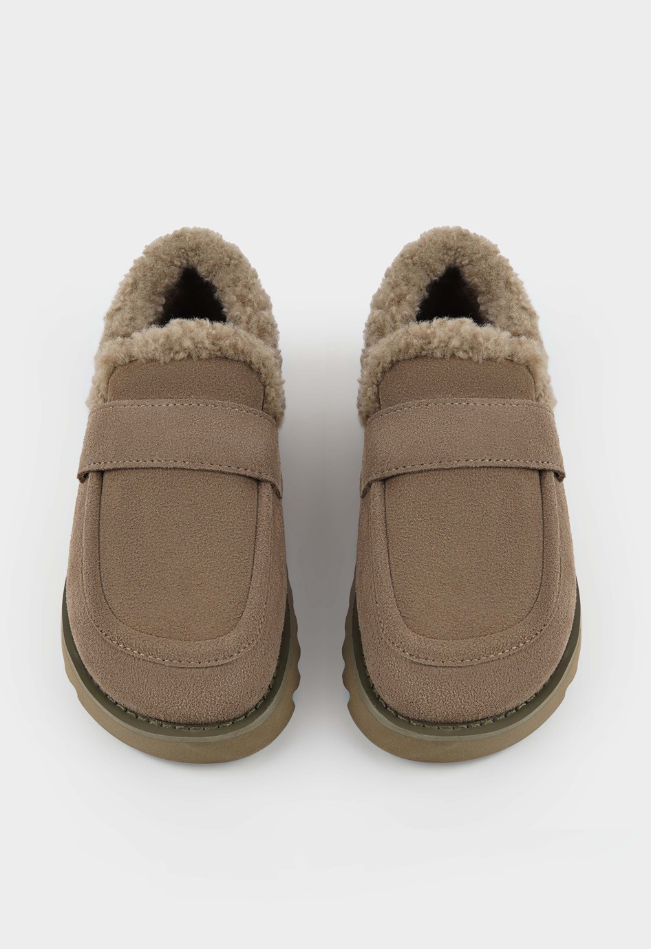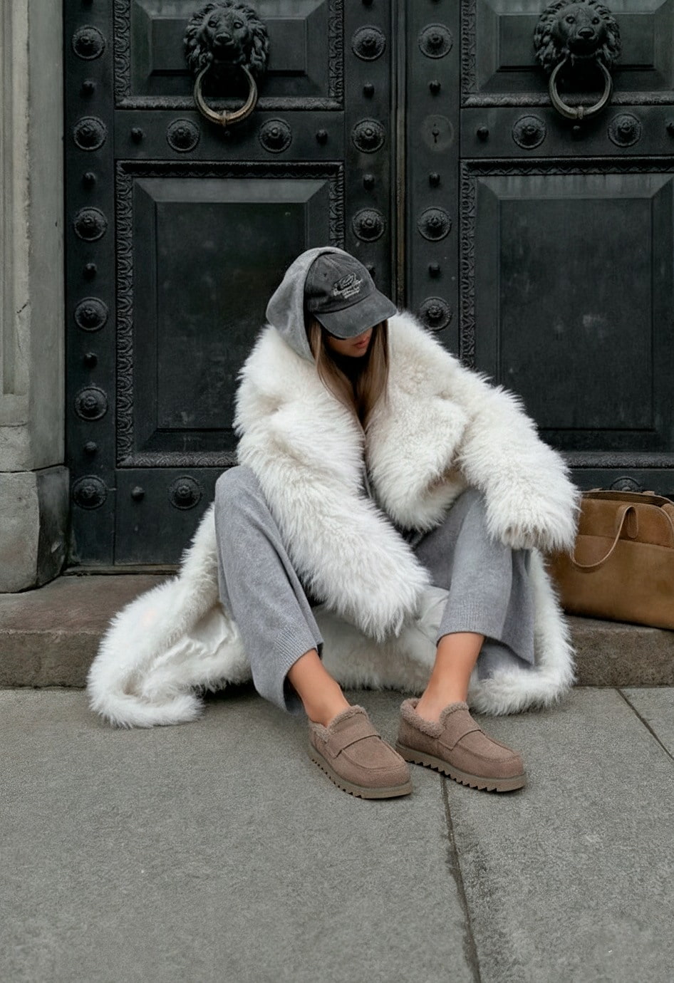 Эти стильные бежевые лоферы из благородной натуральной замши с выразительной платформой и классическим округлым мыском создают уютный и одновременно статусный образ для холодного сезона. Модель с жесткой износостойкой подошвой обеспечивает надежную устойчивость, а роскошная подкладка из натуральной шерсти мягко согревает в любые морозы. Универсальная пара станет идеальным дополнением городского гардероба, безупречно сочетаясь с утепленными джинсами, грубыми свитерами и практичными пальто, даря непревзойденный комфорт и уверенность в каждом шаге.