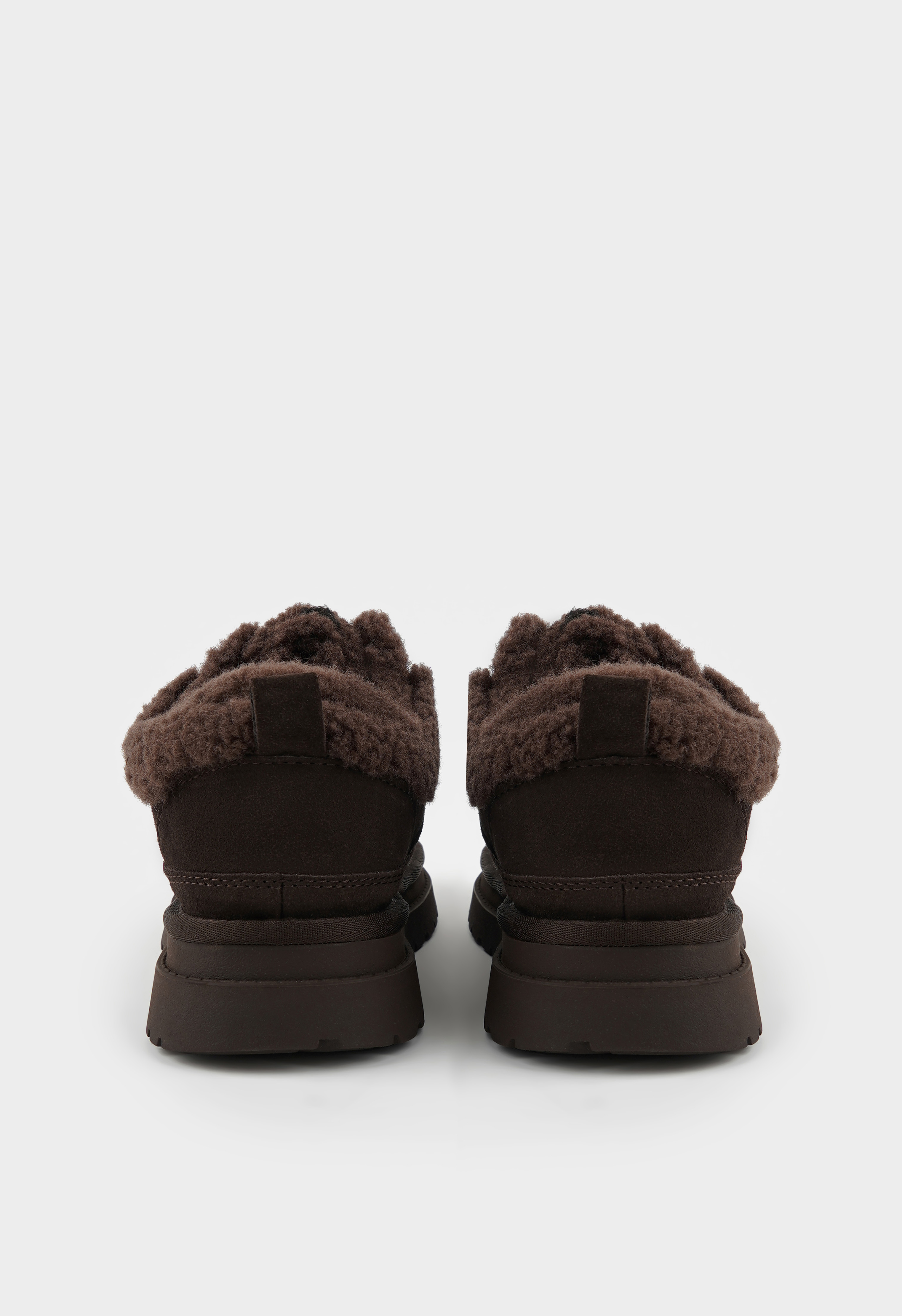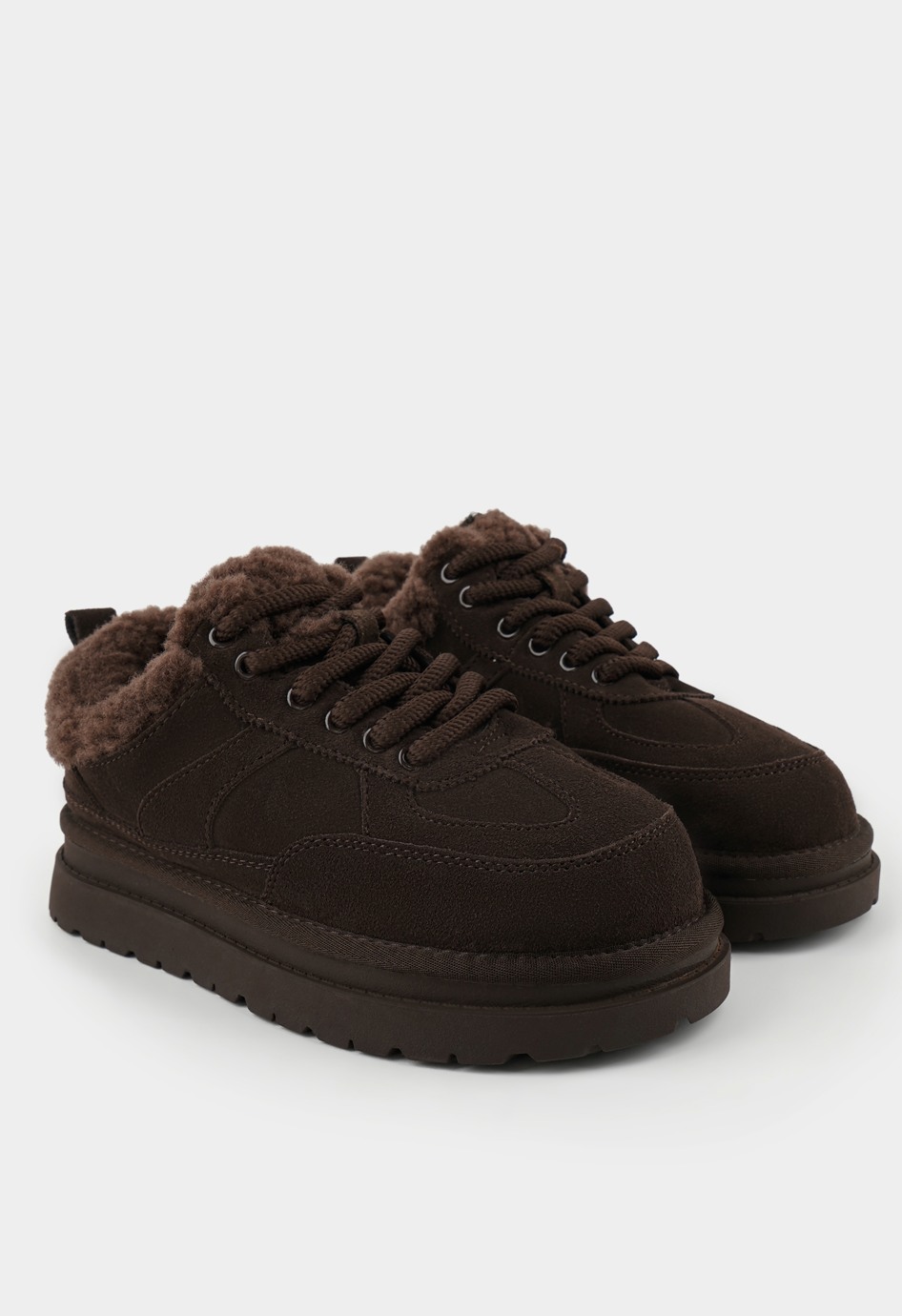 Кроссовки в коричневом цвете – идеальный вариант для тех, кто предпочитает практичную и стильную обувь на каждый день. Благодаря жесткой подошве модель отличается устойчивостью и долговечностью, а округлый мысок обеспечивает свободу движений и комфорт при ходьбе. Выполненные из мягкой натуральной замши, они выглядят изысканно и при этом отлично держат форму, в то время как внутренняя отделка из натуральной шерсти дарит тепло и уют даже в прохладную погоду. Удобная шнуровка позволяет точно регулировать посадку, коричневая фурнитура гармонично дополняет дизайн. Аккуратная платформа придает образу современное внешний вид и легкость.