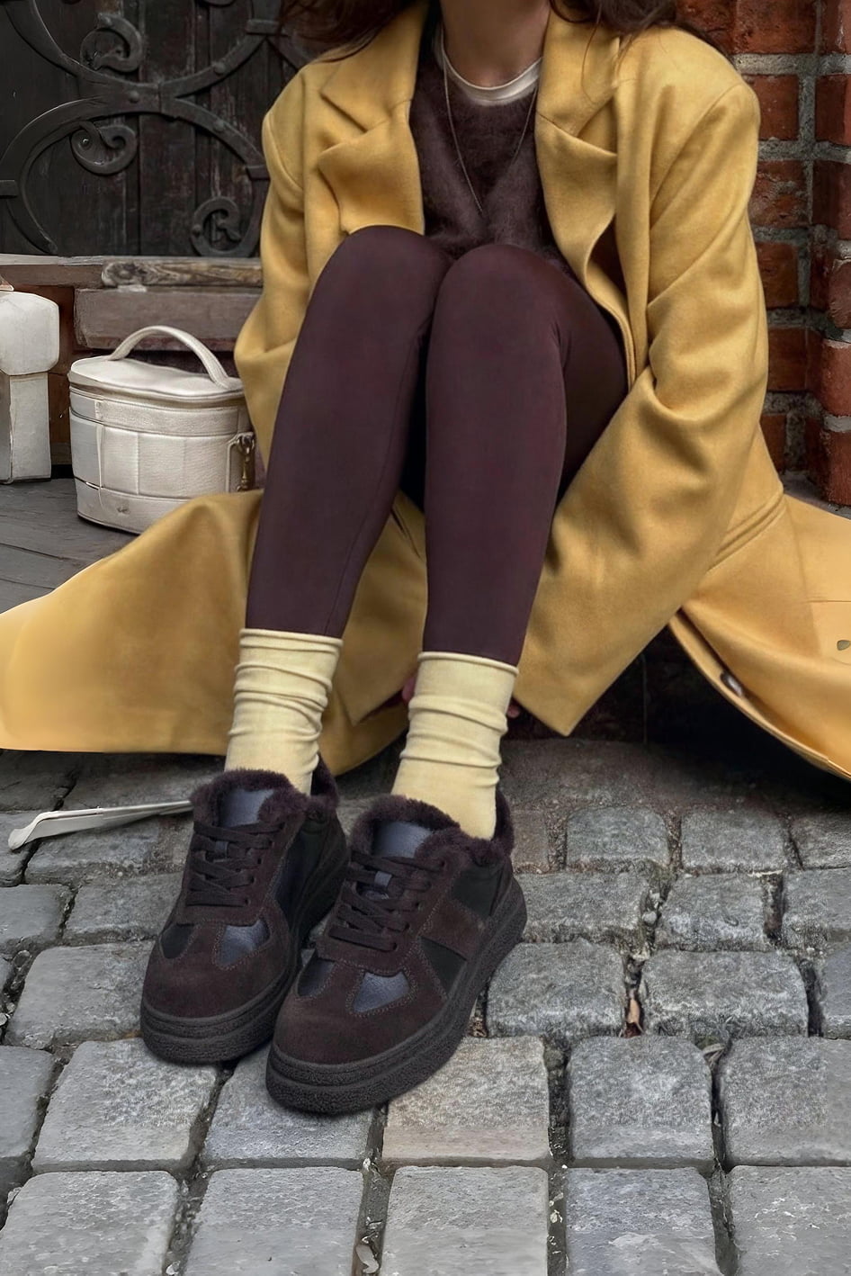 Ботинки коричневого цвета – надежное решение для тех, кто ценит стиль и комфорт в холодный сезон. Верх выполнен из сочетания натуральной кожи и замши, что придает модели выразительный внешний вид и прочность, а внутренняя отделка из натуральной шерсти сохраняет тепло и ощущение уюта. Жесткая подошва обеспечивает устойчивость и долговечность, округлый мысок делает обувь удобной даже при длительной ходьбе, в то время как классическая шнуровка гарантирует плотную фиксацию стопы. Лаконичная платформа добавляет современности и легкости в образ, делая ботинки идеальным выбором для активных будней.