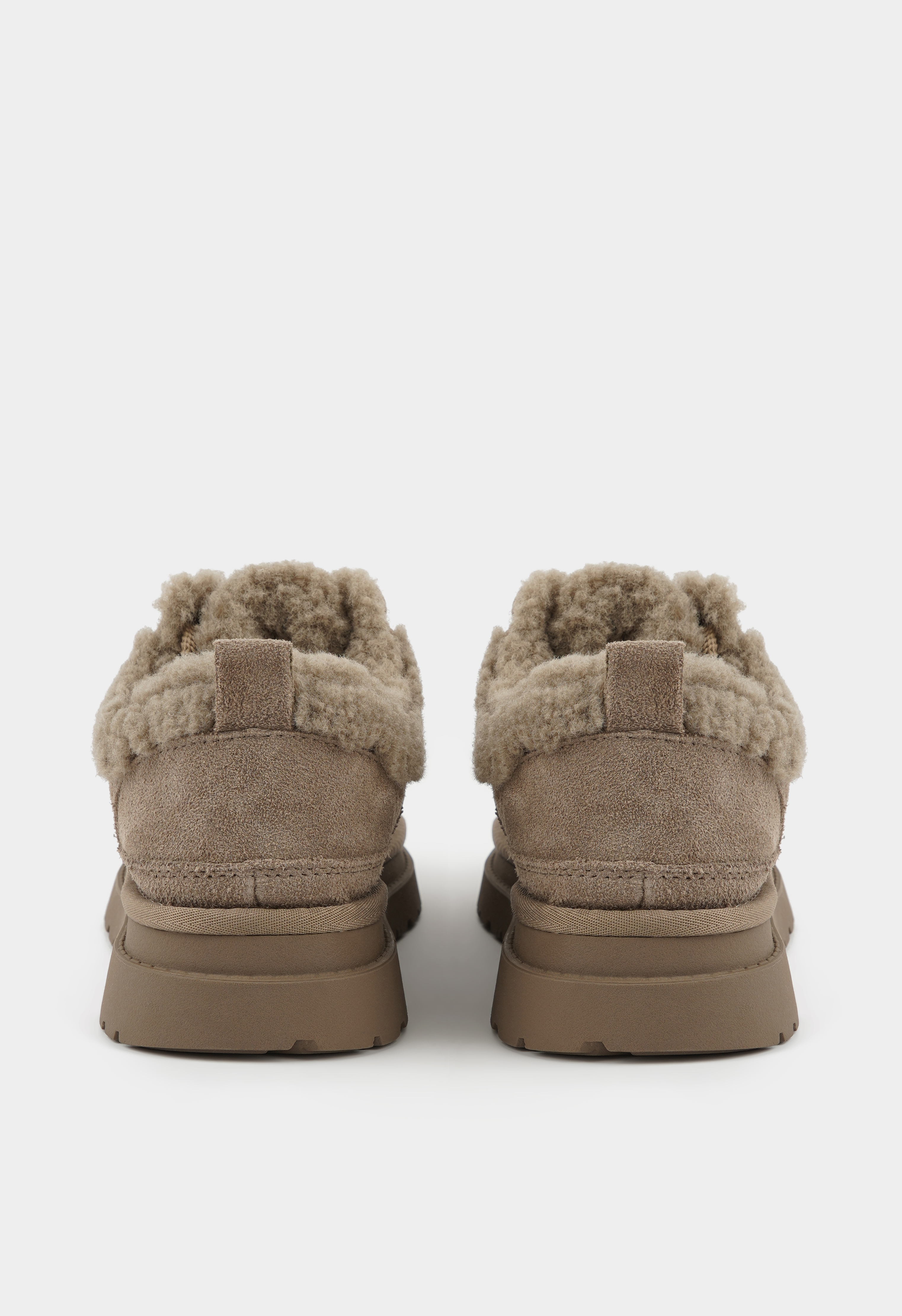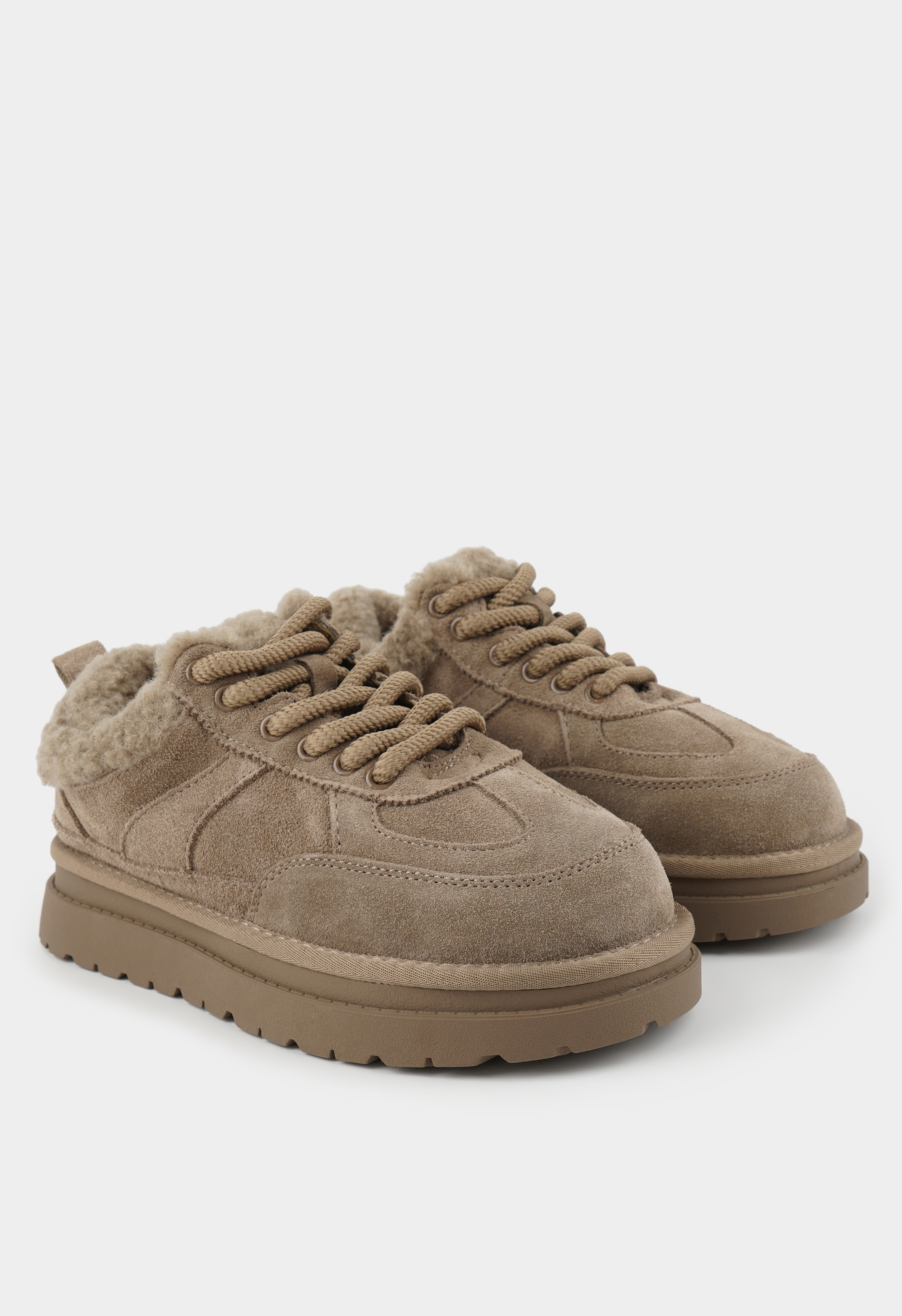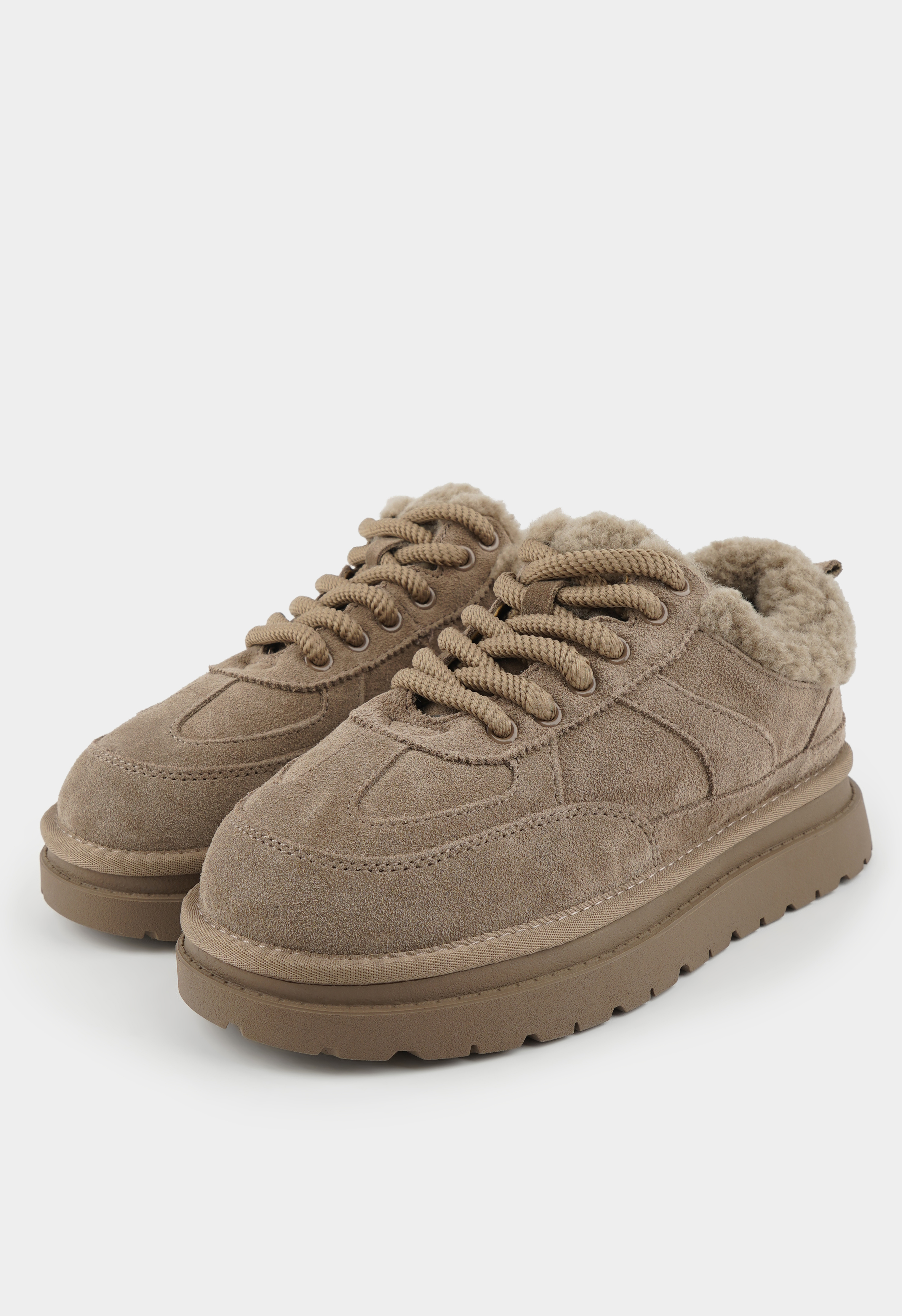 Полуботинки бежевого цвета – гармоничное сочетание мягкого дизайна и практичности, созданное для стильных образов на каждый день. Модель выполнена из натуральной замши, которая приятно ложится по ноге и сохраняет безупречный внешний вид, внутренняя отделка из натуральной шерсти обеспечивает тепло и комфорт в прохладную погоду. Жесткая подошва придает устойчивость и защищает от влаги, округлый мысок создает удобную посадку, а аккуратная шнуровка помогает легко регулировать объем. Платформа и фурнитура в цвете хаки добавляет современный акцент и делает модель особенно выразительной.
