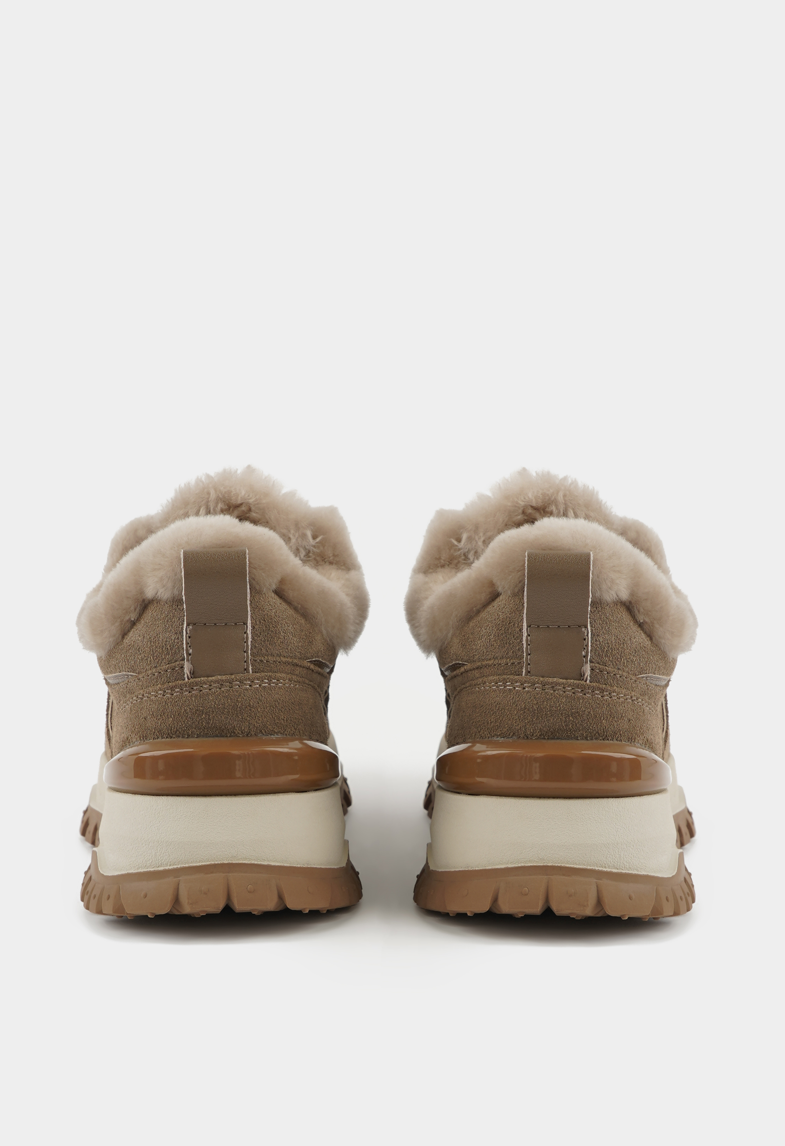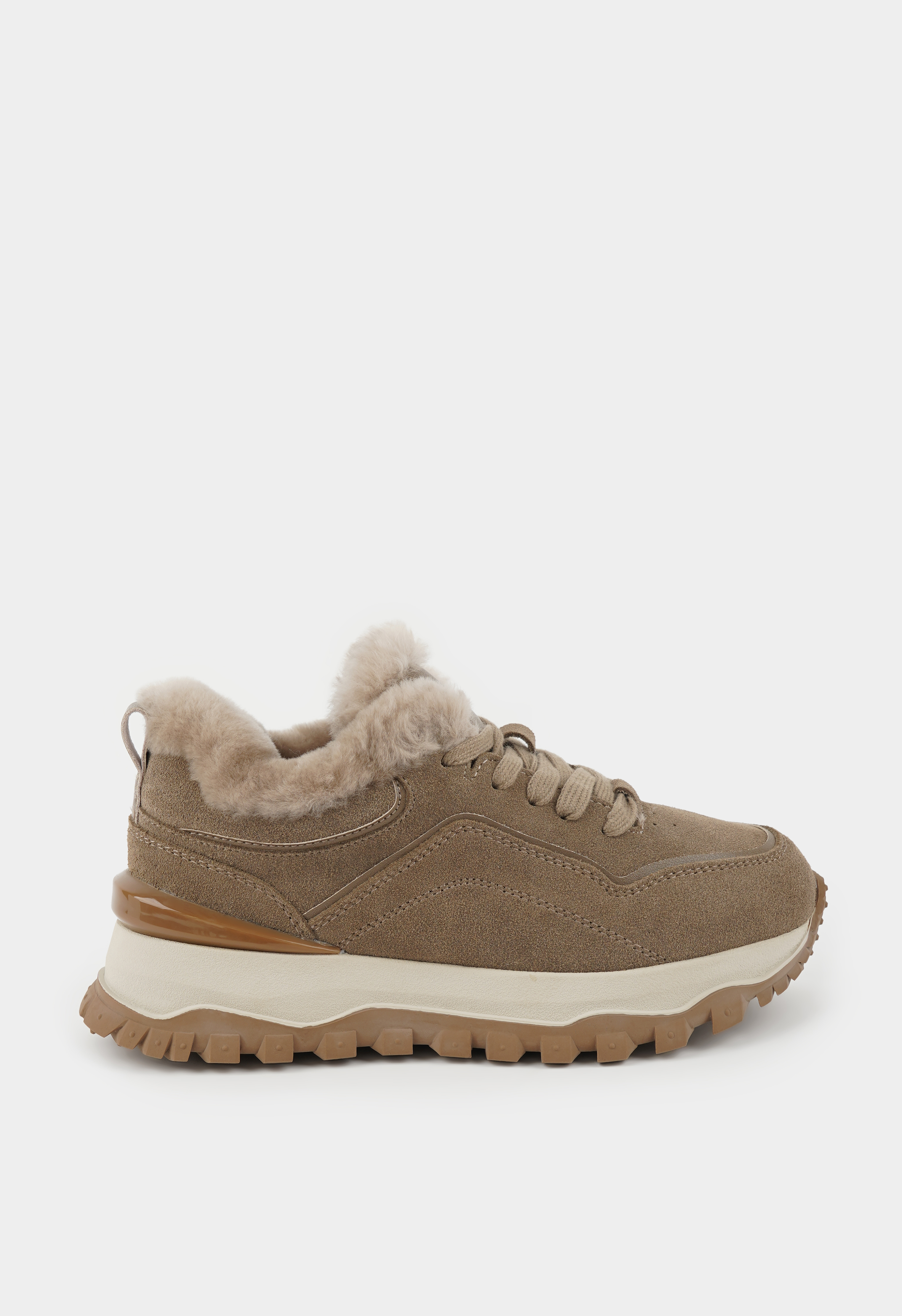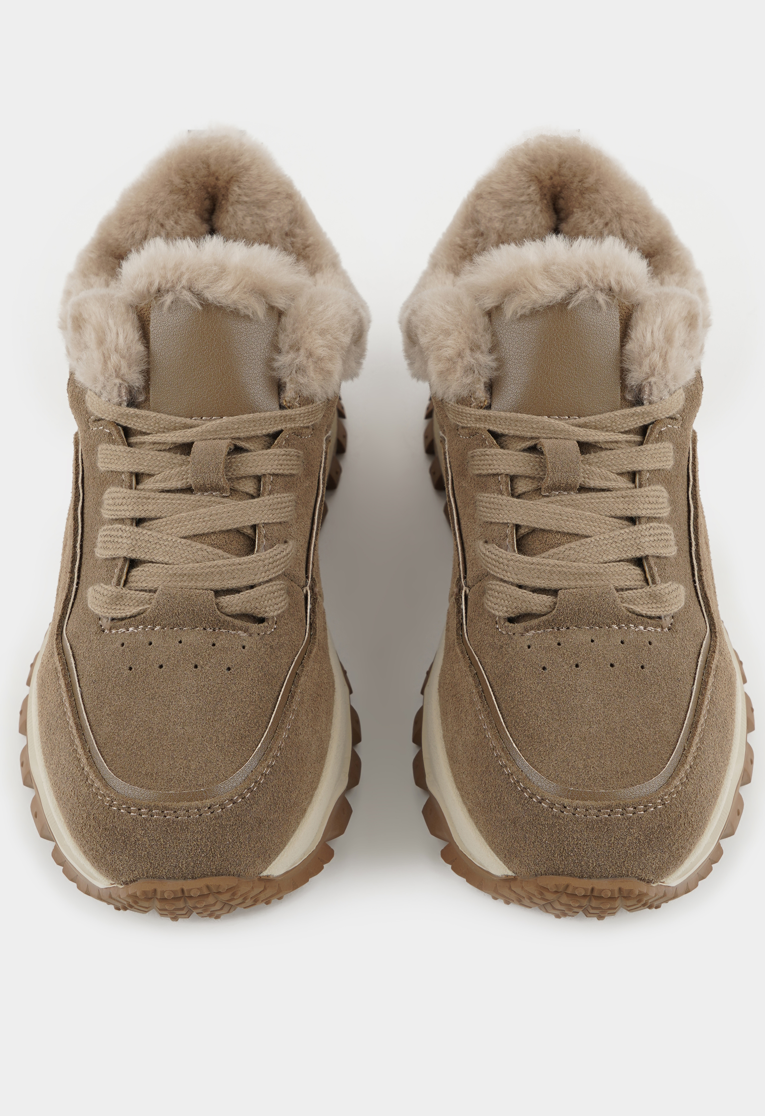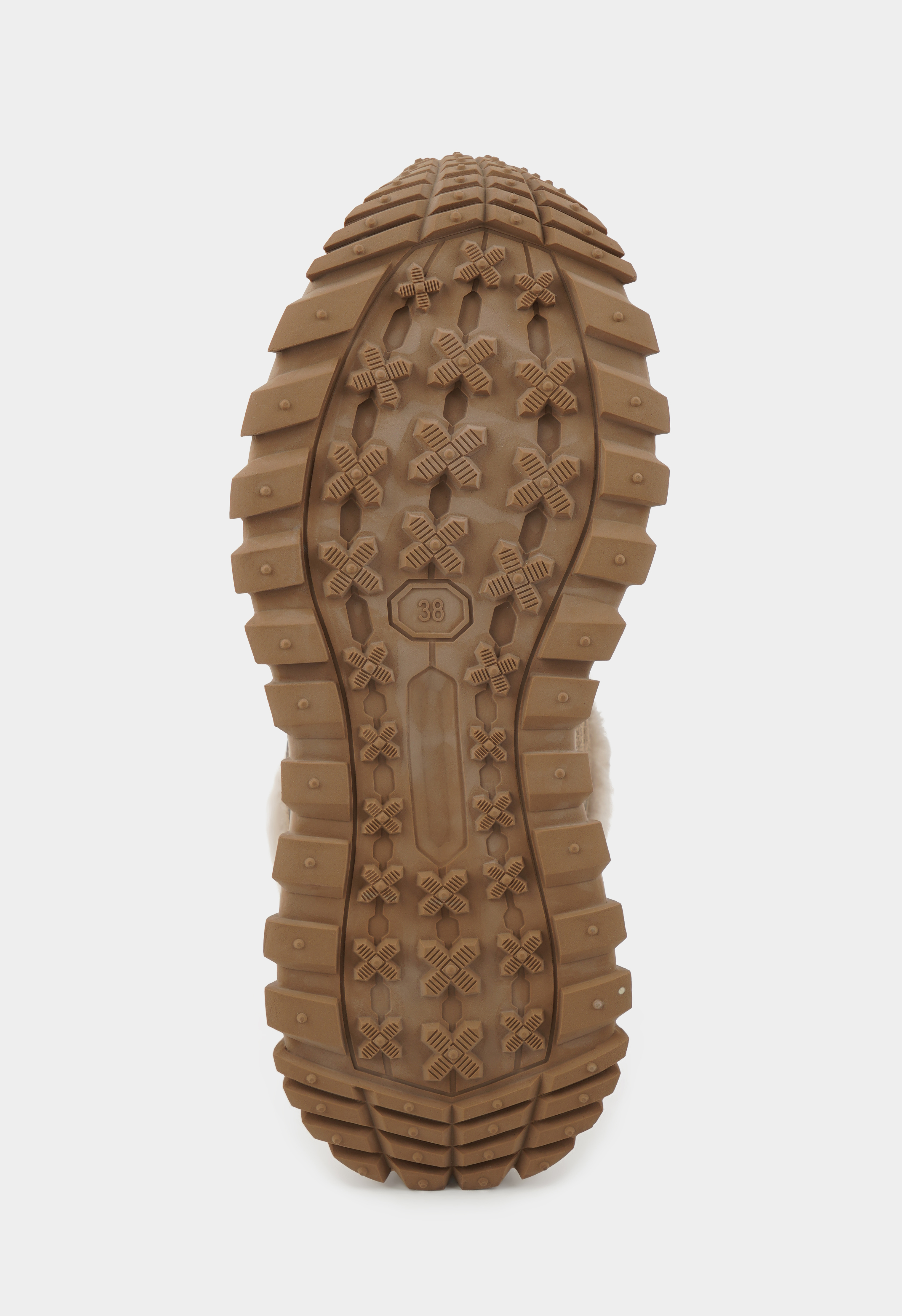 Базовые ботинки бежевого цвета – идеальный выбор для тех, кто ценит комфорт и лаконичный стиль в повседневной обуви. Натуральная замша придает модели мягкость и благородство, а внутренняя отделка из натуральной шерсти дарит тепло и уют в холодные зимние дни. Жесткая подошва обеспечивает устойчивость и надежность при ходьбе, округлый мысок делает обувь удобной, в то время как шнуровка позволяет легко подстроить посадку под ногу. Платформа добавляет легкий визуальный акцент и делает шаг уверенным, превращая эту модель в практичное и стильное дополнение к любому гардеробу.