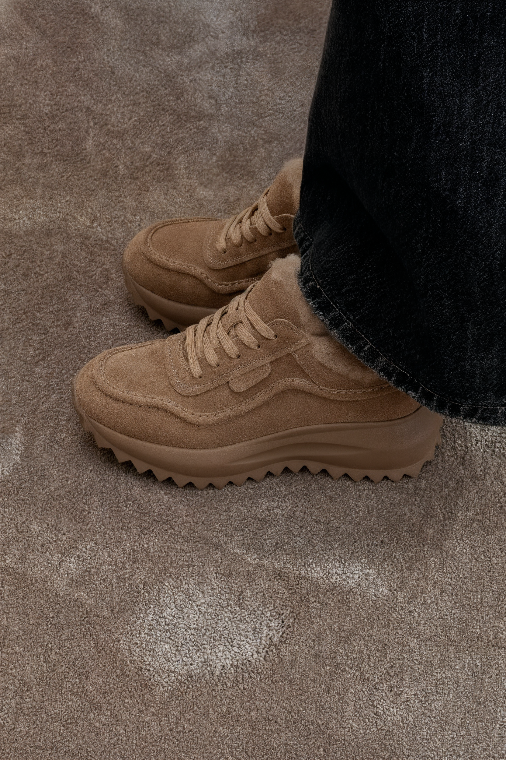 Ботинки коричневого цвета – стильное решение для тех, кто ищет баланс между комфортом и современным дизайном. Верх из натуральной замши выглядит утонченно и легко сочетается с повседневными образами, в то время как подкладка из натуральной шерсти обеспечивает мягкость и тепло в прохладную погоду. Жесткая подошва делает шаг устойчивым, округлый мысок способствует удобной посадке, а шнуровка добавляет функциональности и подчеркивает повседневный силуэт. Платформа придает модели выразительность, создавая обувь, которая сочетает практичность и элегантный стиль.