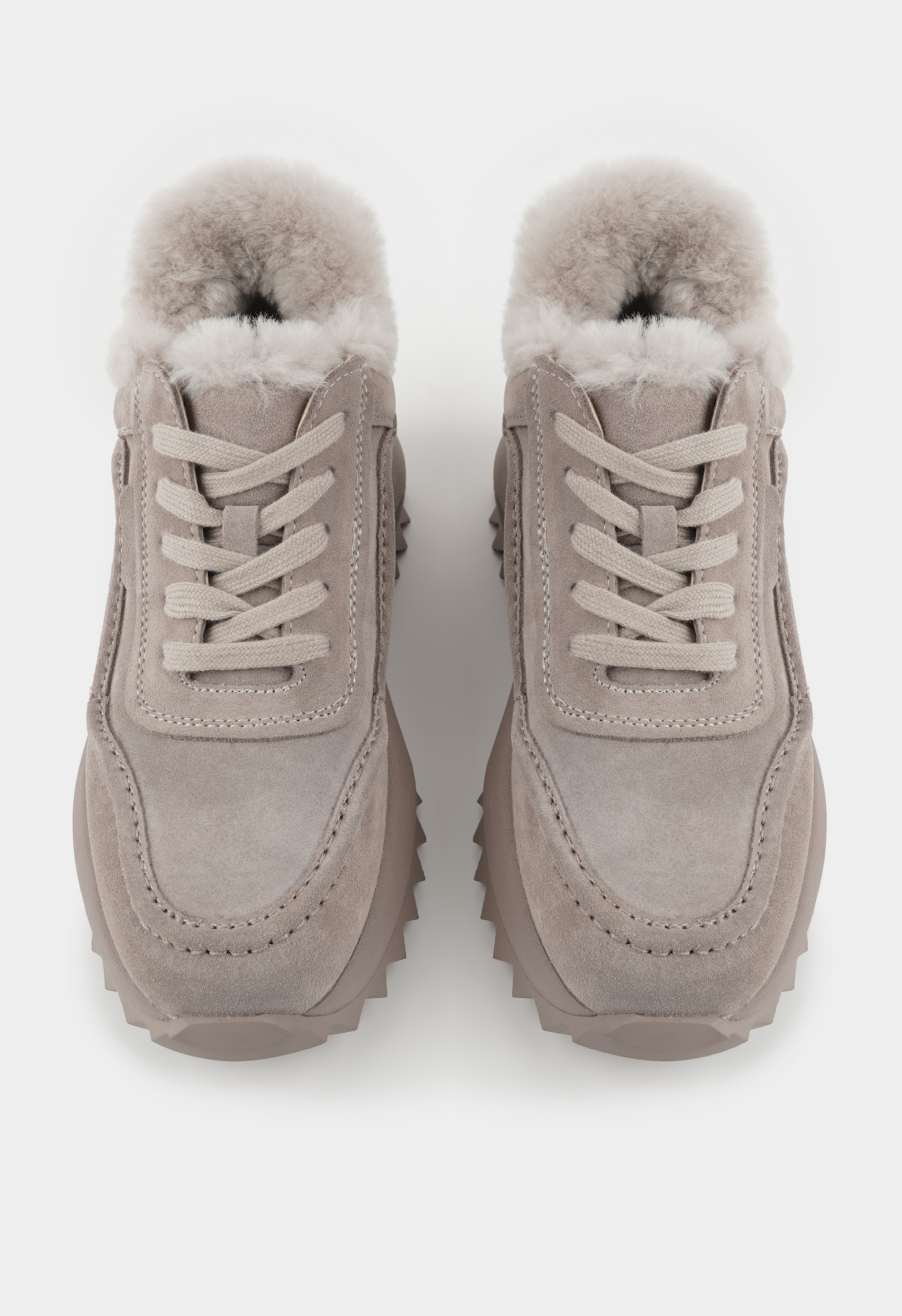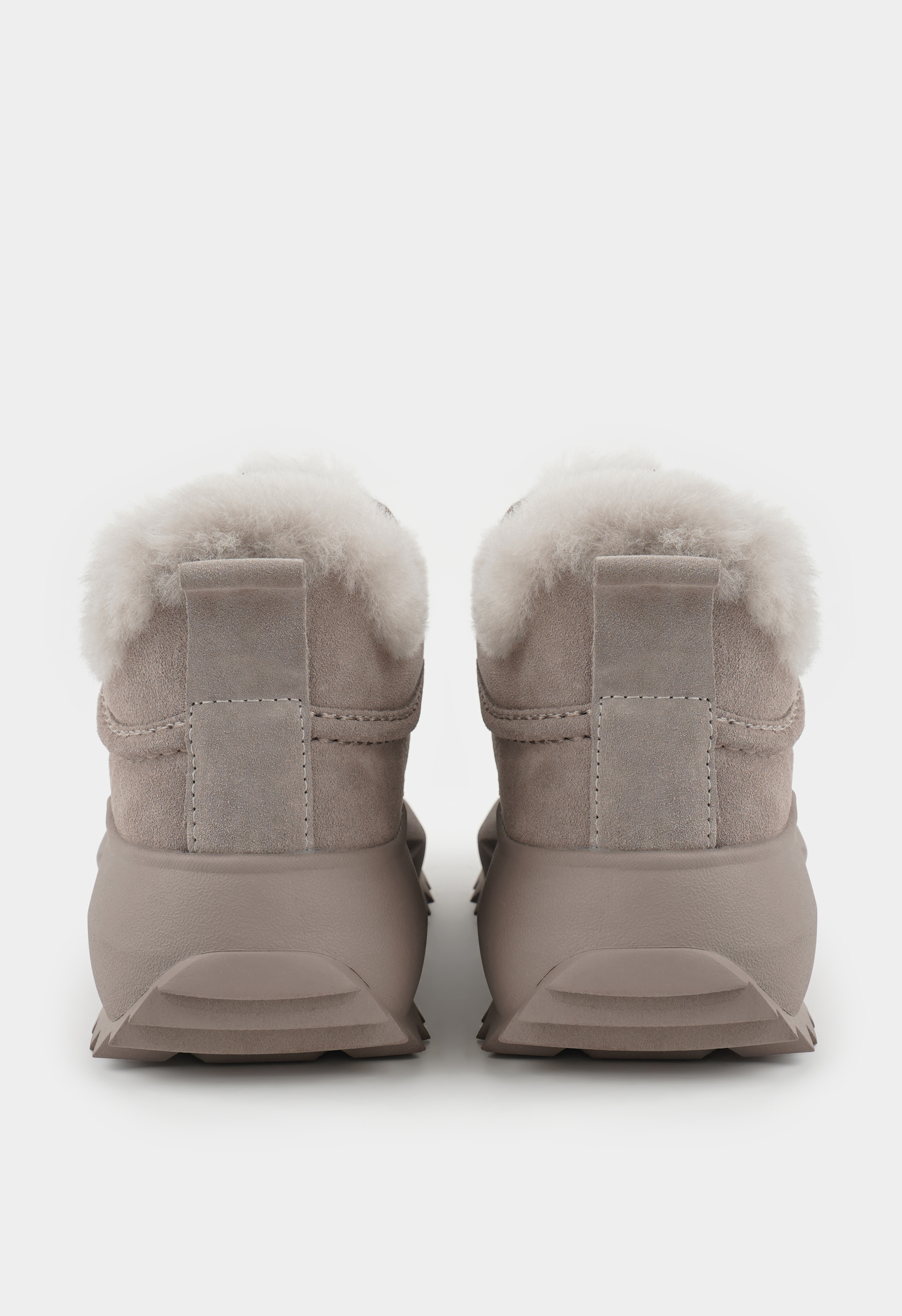 Ботинки серого цвета – стильное решение для тех, кто ищет баланс между комфортом и современным дизайном. Верх из натуральной замши выглядит утонченно и легко сочетается с повседневными образами, в то время как подкладка из натуральной шерсти обеспечивает мягкость и тепло в прохладную погоду. Жесткая подошва делает шаг устойчивым, округлый мысок способствует удобной посадке, а шнуровка добавляет функциональности и подчеркивает повседневный силуэт. Платформа придает модели выразительность, создавая обувь, которая сочетает практичность и элегантный стиль.