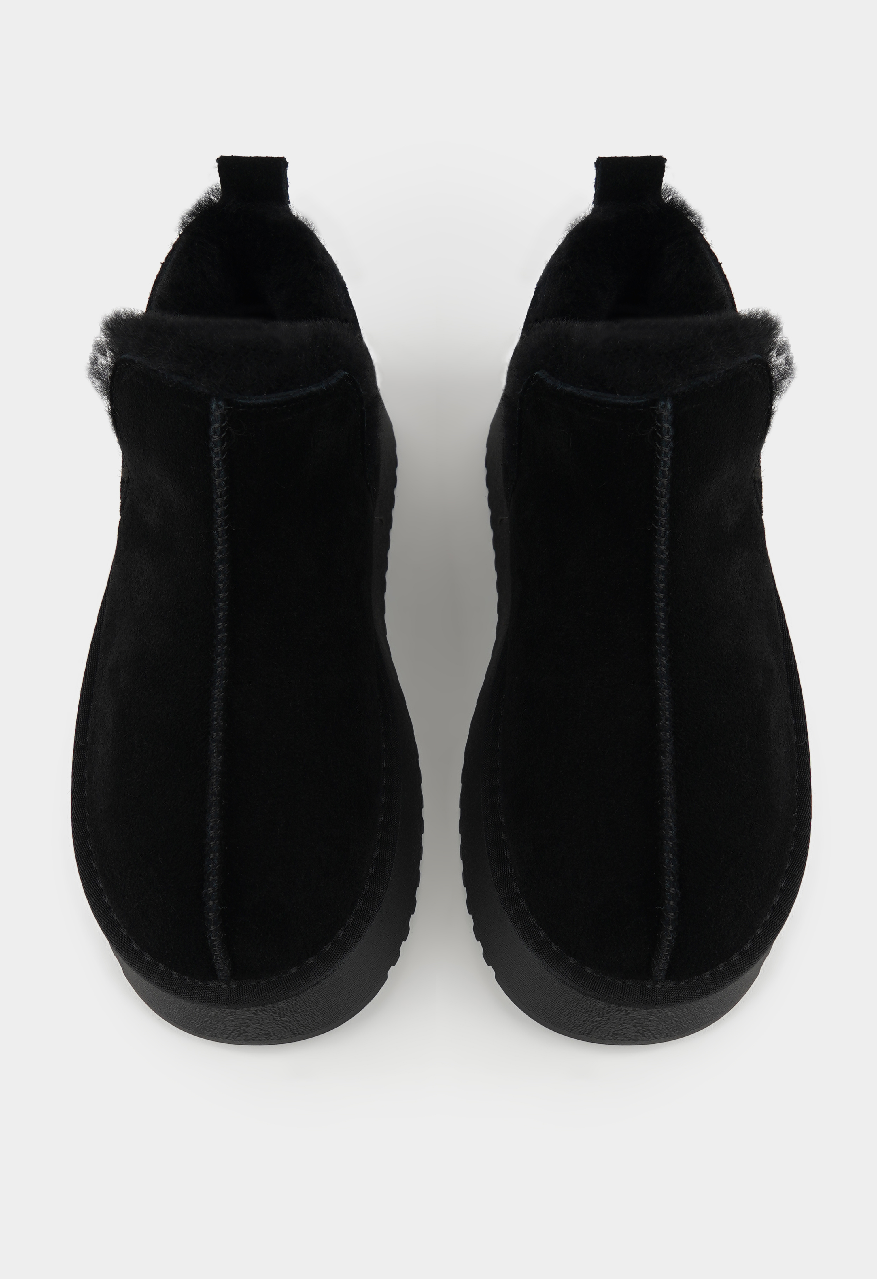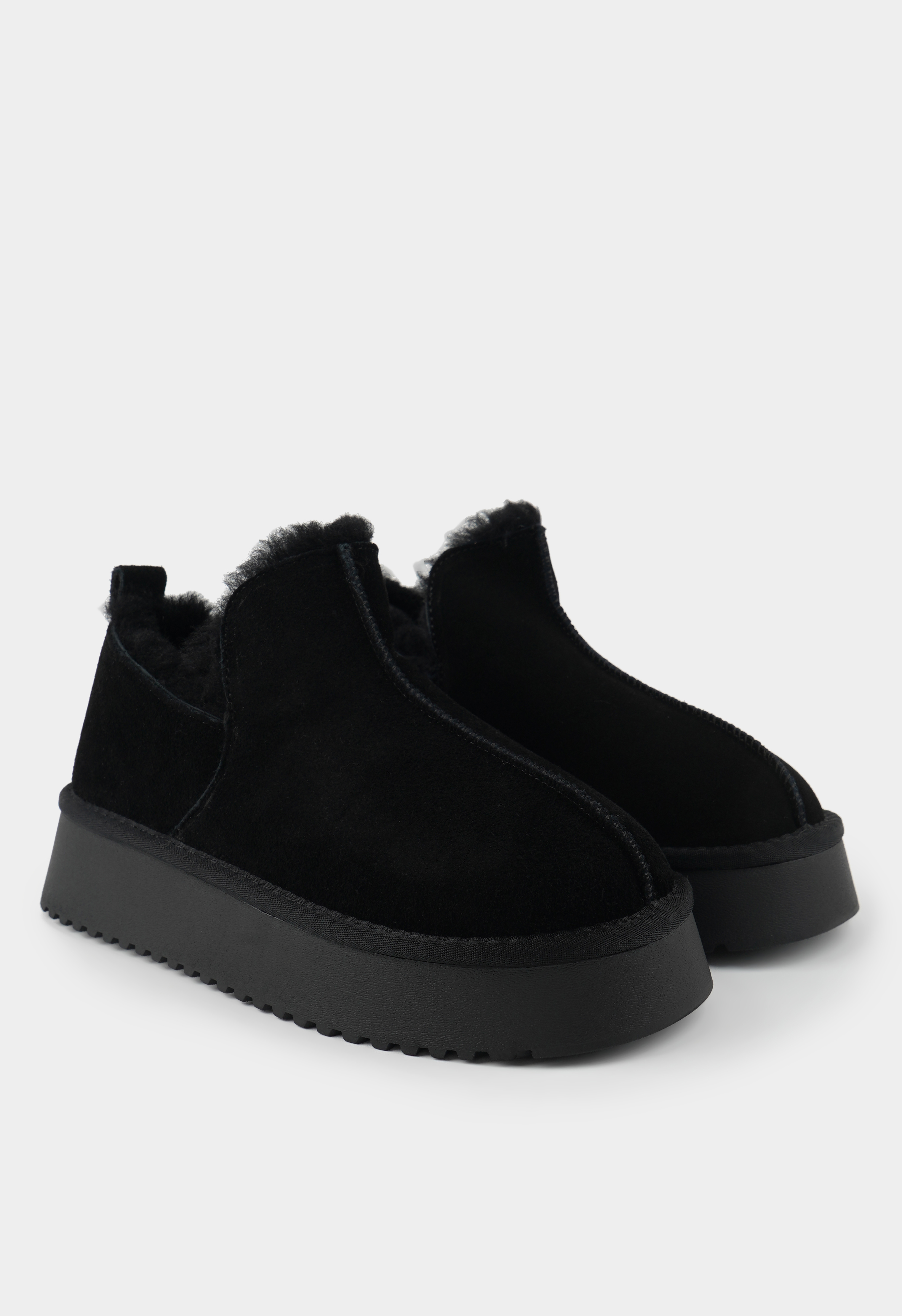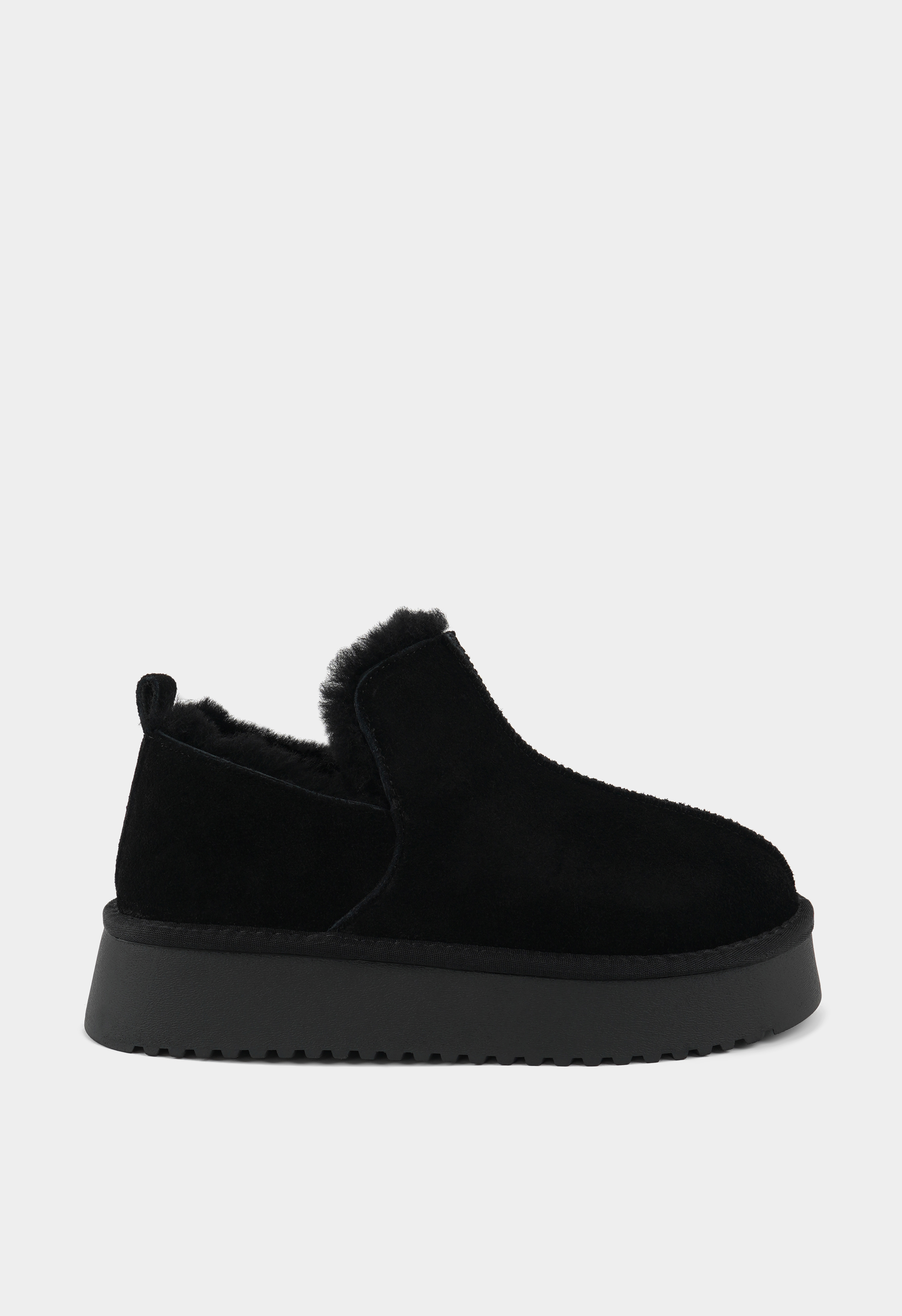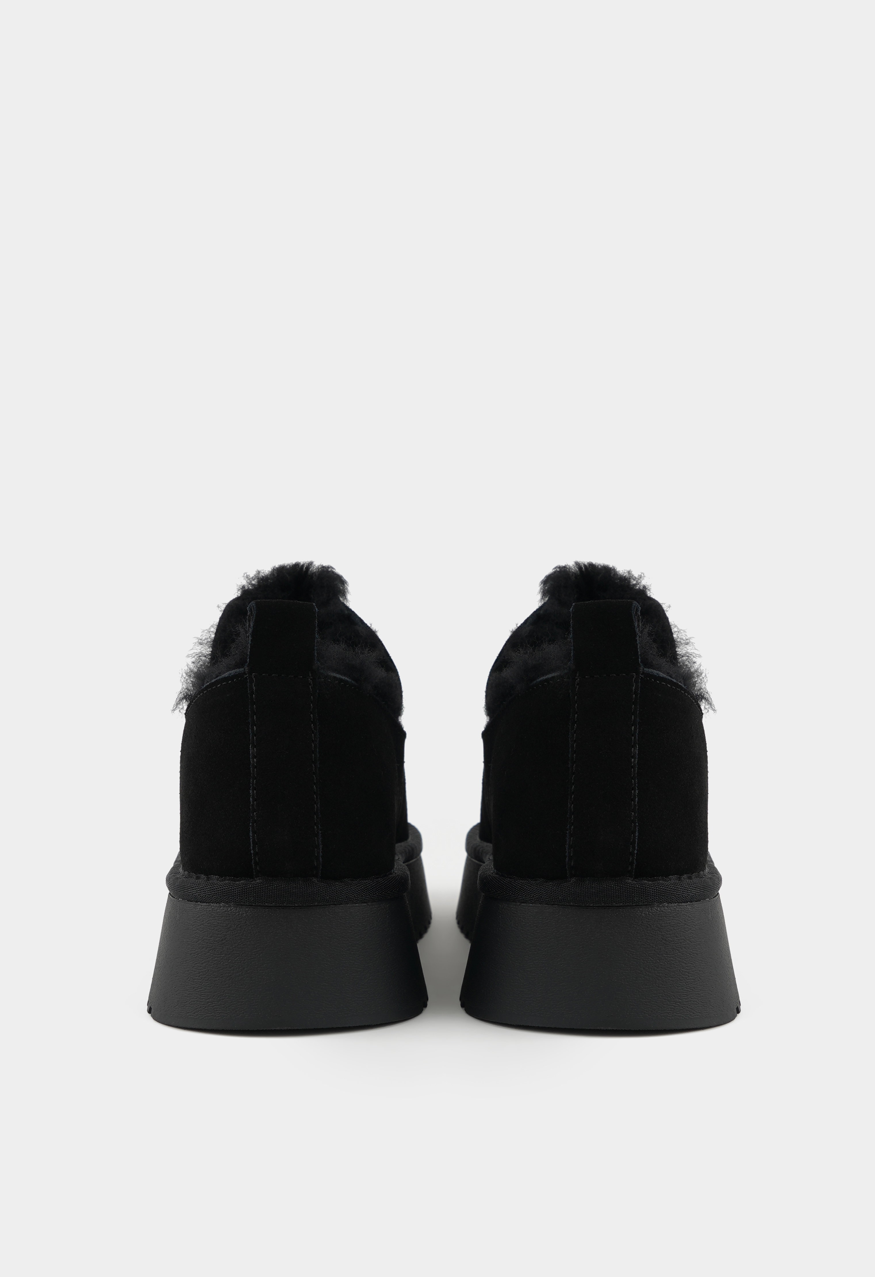 Лаконичные ботинки черного цвета – универсальная модель для тех, кто ценит сдержанный стиль и комфорт в любой ситуации. Натуральная замша придает обуви благородную фактуру и мягкость, а внутренняя отделка из натуральной шерсти обеспечивает тепло и уют в прохладную погоду. Жесткая подошва гарантирует устойчивость и надежную поддержку стопы, округлый мысок делает посадку комфортной, в то время как аккуратная платформа добавляет современности и визуальной легкости. Эти ботинки станут практичным выбором для повседневных образов и отлично дополнят как классический, так и базовый стиль.