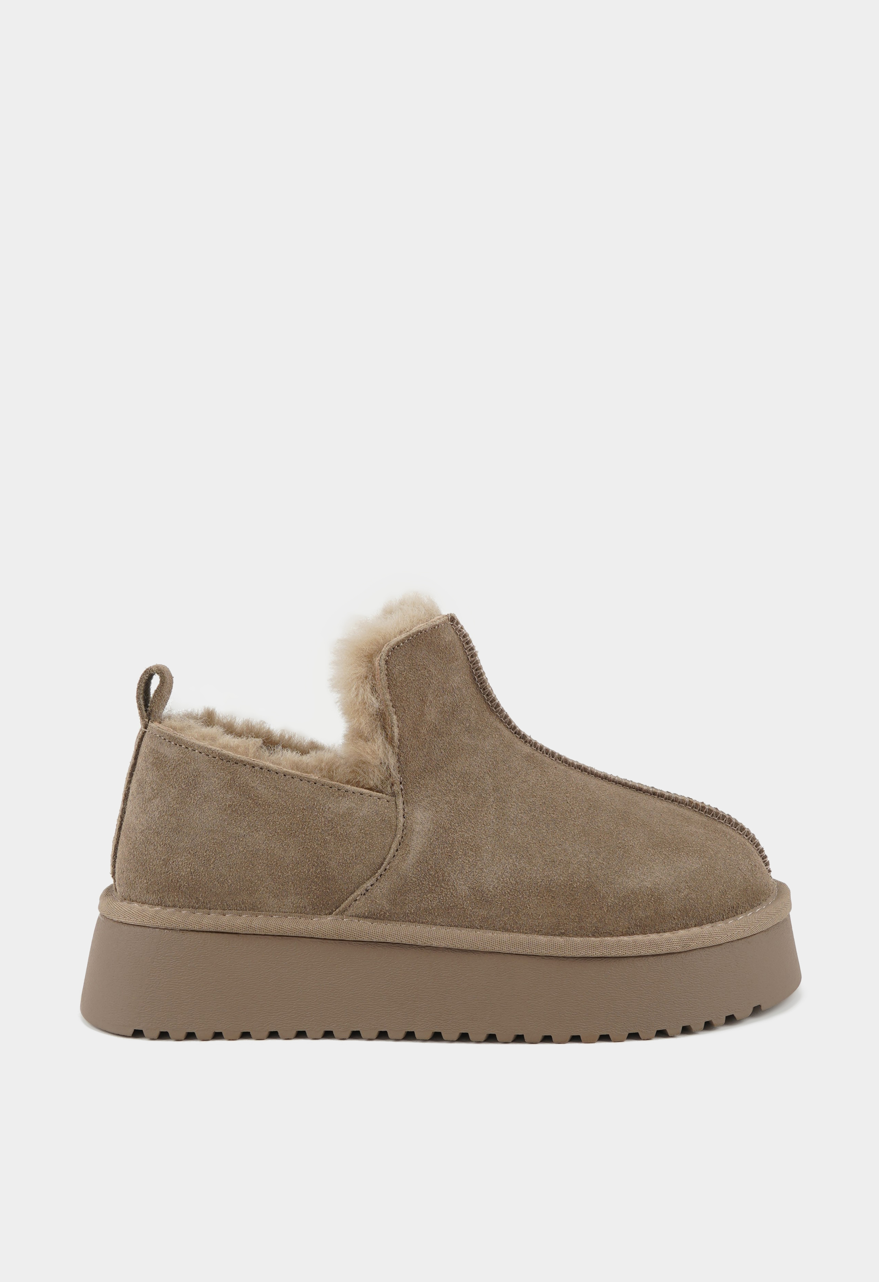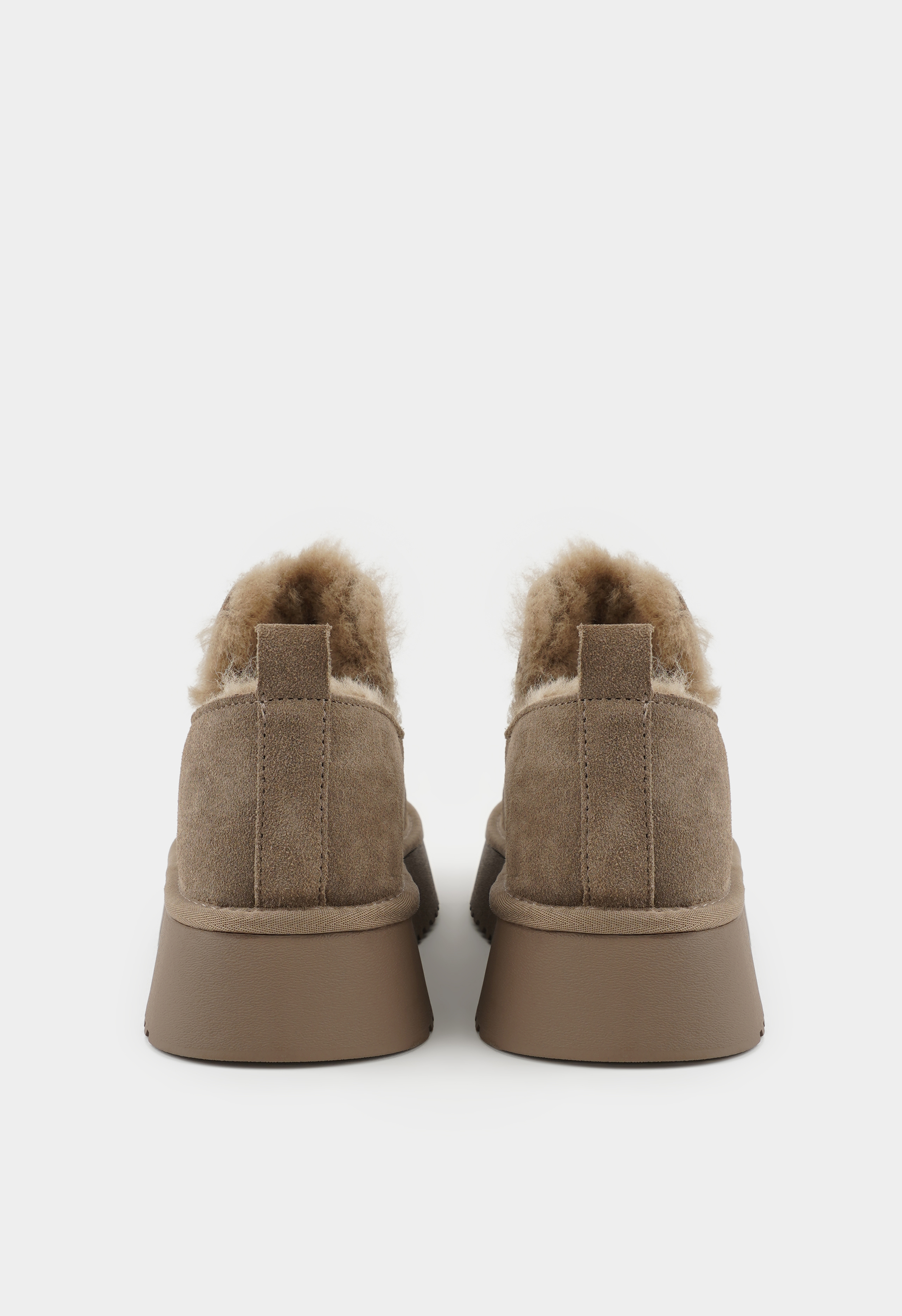 Лаконичные ботинки бежевого цвета – универсальная модель для тех, кто ценит сдержанный стиль и комфорт в любой ситуации. Натуральная замша придает обуви благородную фактуру и мягкость, а внутренняя отделка из натуральной шерсти обеспечивает тепло и уют в прохладную погоду. Жесткая подошва гарантирует устойчивость и надежную поддержку стопы, округлый мысок делает посадку комфортной, в то время как аккуратная платформа добавляет современности и визуальной легкости. Эти ботинки станут практичным выбором для повседневных образов и отлично дополнят как классический, так и базовый стиль.