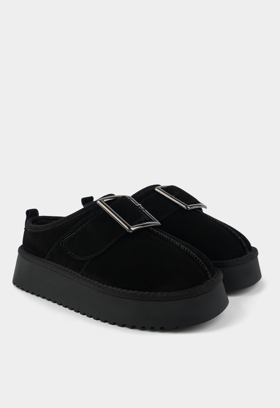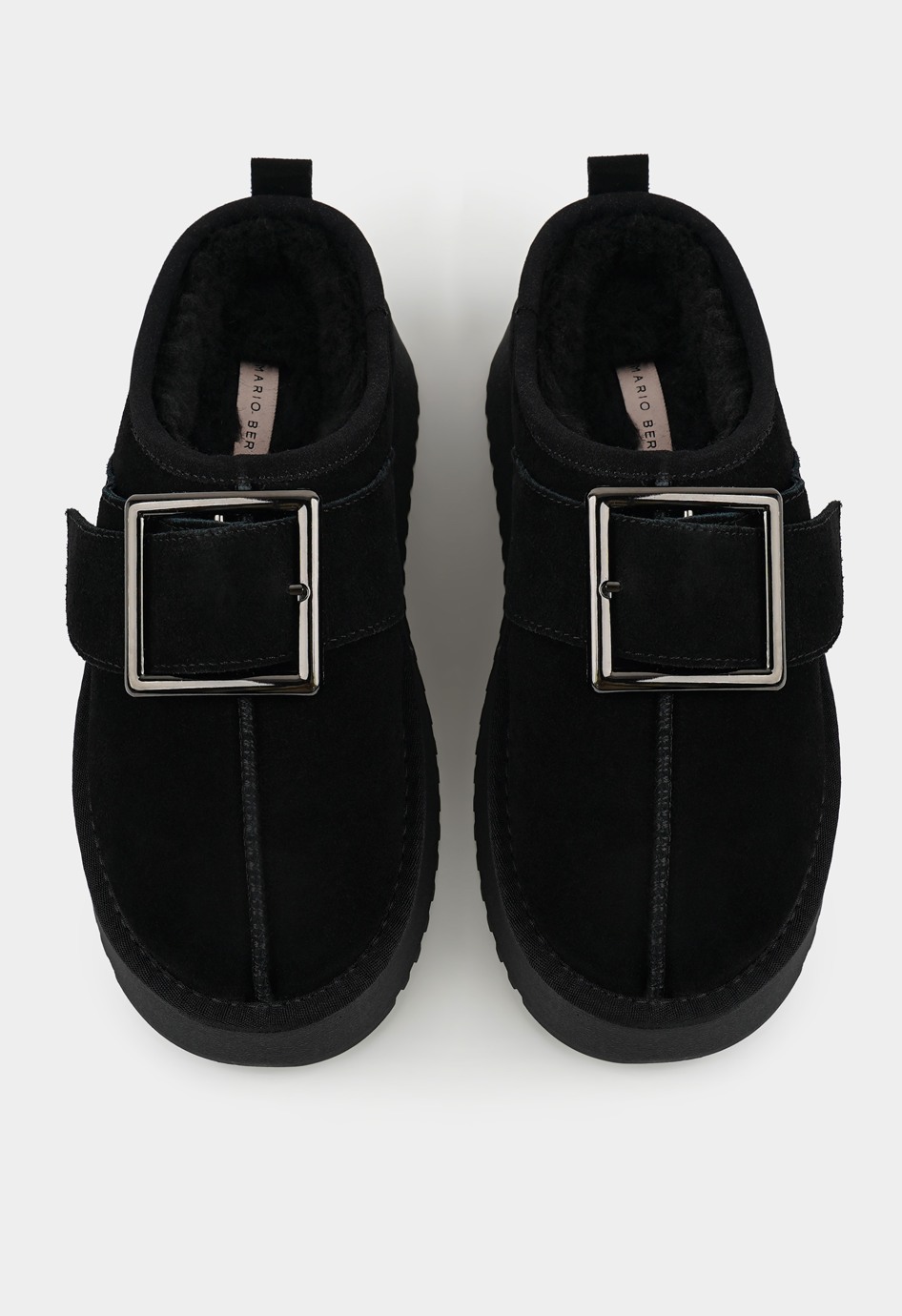 Полуботинки черного цвета – стильный вариант для тех, кто ценит элегантность и комфорт в повседневной обуви. Верх из натуральной замши придает модели утонченный внешний вид и мягкость, а внутренняя отделка из натуральной шерсти обеспечивает уют и тепло в прохладную погоду. Жесткая подошва делает шаг устойчивым, округлый мысок гарантирует удобство, а металлическая фурнитура добавляет выразительный акцент. Умеренная платформа создает гармоничное сочетание практичности и изящного стиля.