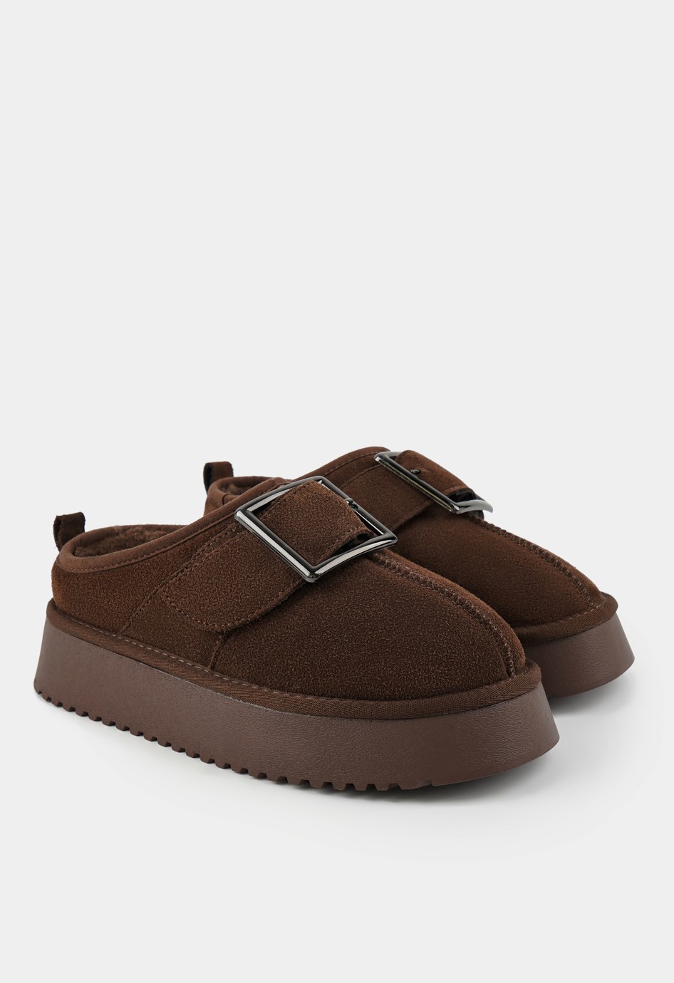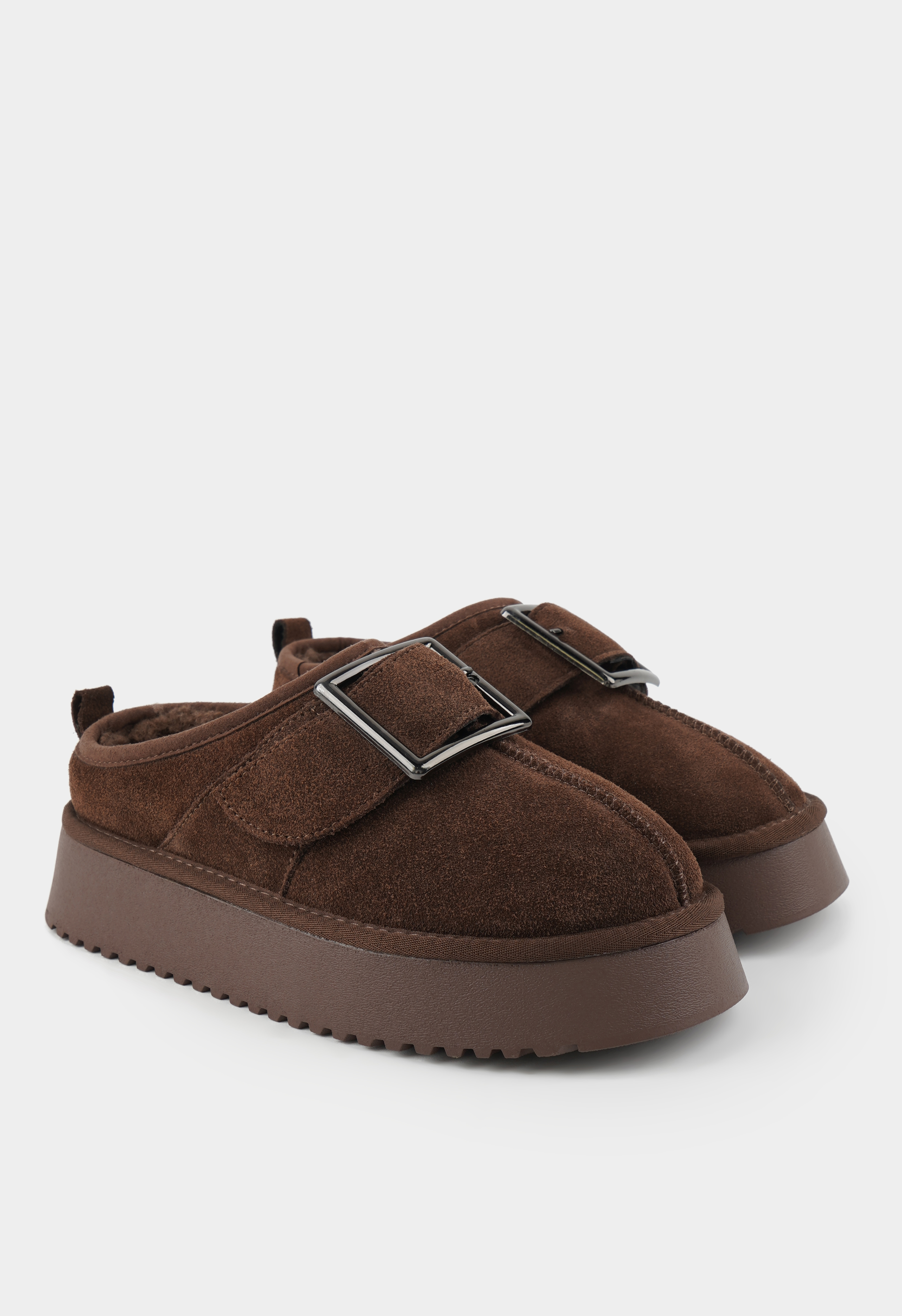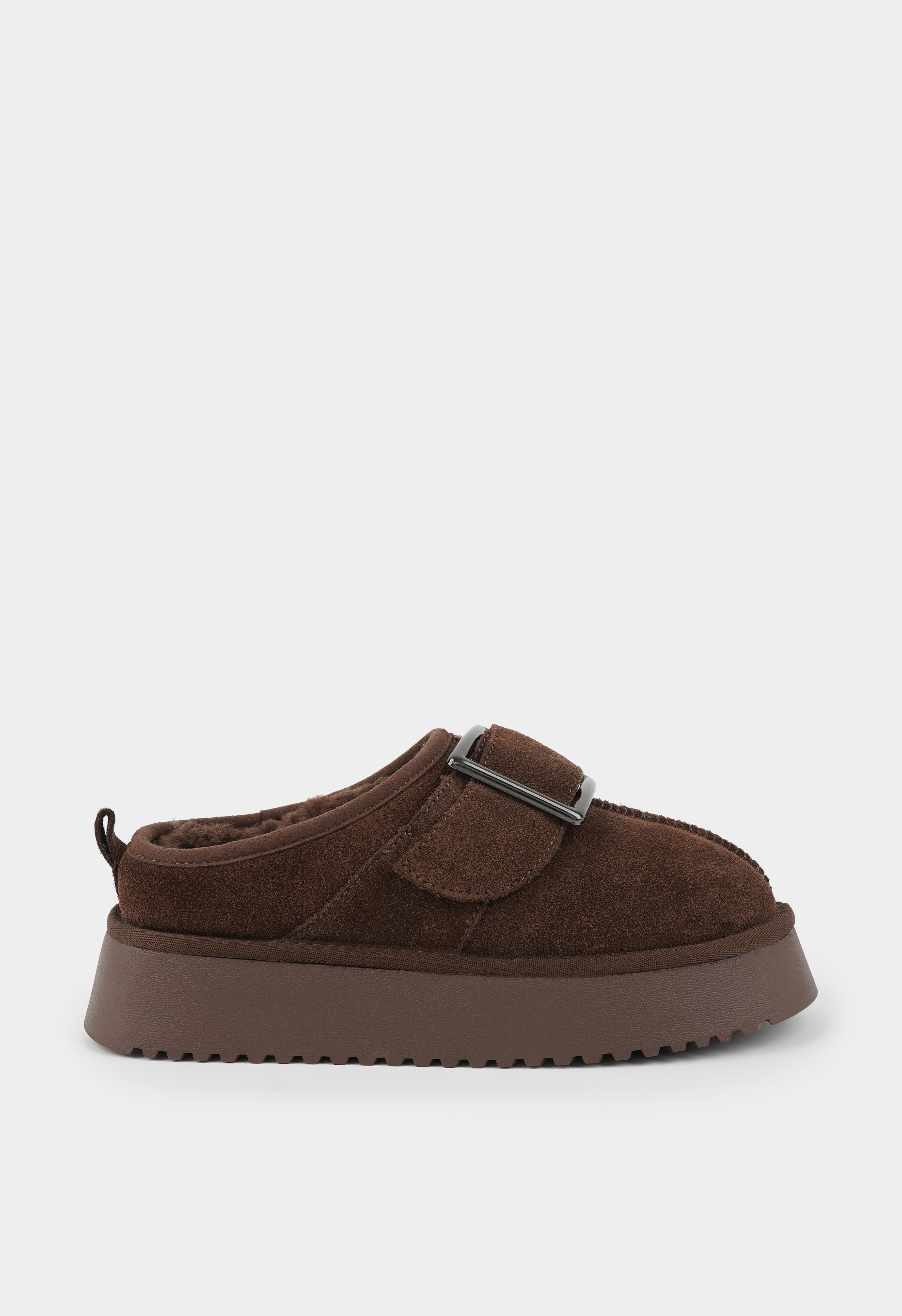 Полуботинки коричневого цвета – стильный вариант для тех, кто ценит элегантность и комфорт в повседневной обуви. Верх из натуральной замши придает модели утонченный внешний вид и мягкость, а внутренняя отделка из натуральной шерсти обеспечивает уют и тепло в прохладную погоду. Жесткая подошва делает шаг устойчивым, округлый мысок гарантирует удобство, а металлическая фурнитура добавляет выразительный акцент. Умеренная платформа создает гармоничное сочетание практичности и изящного стиля.