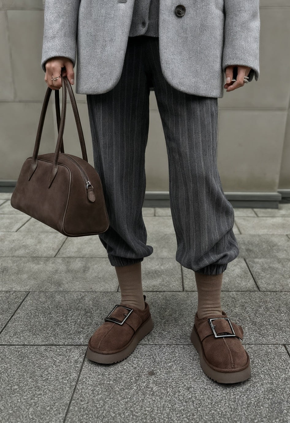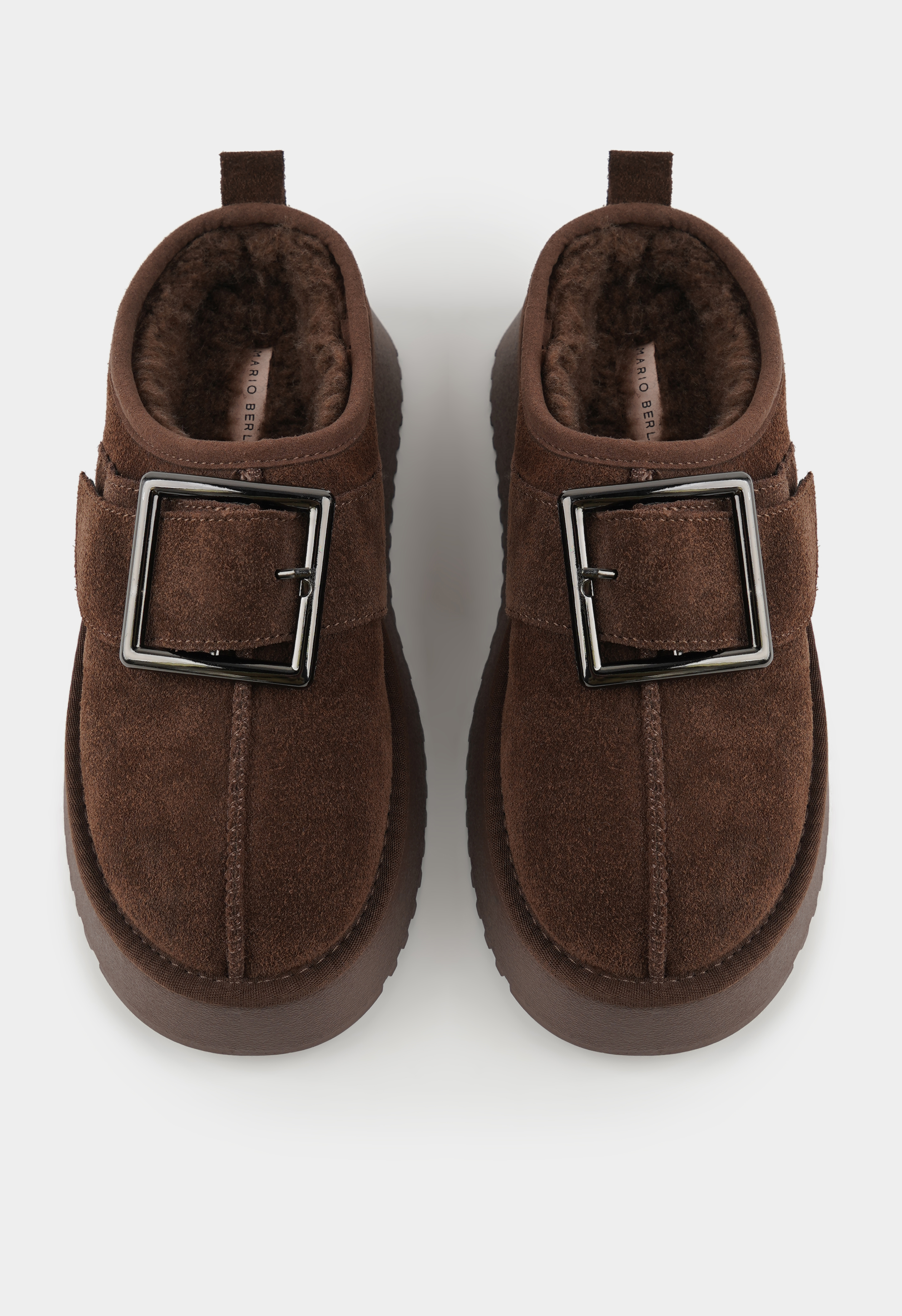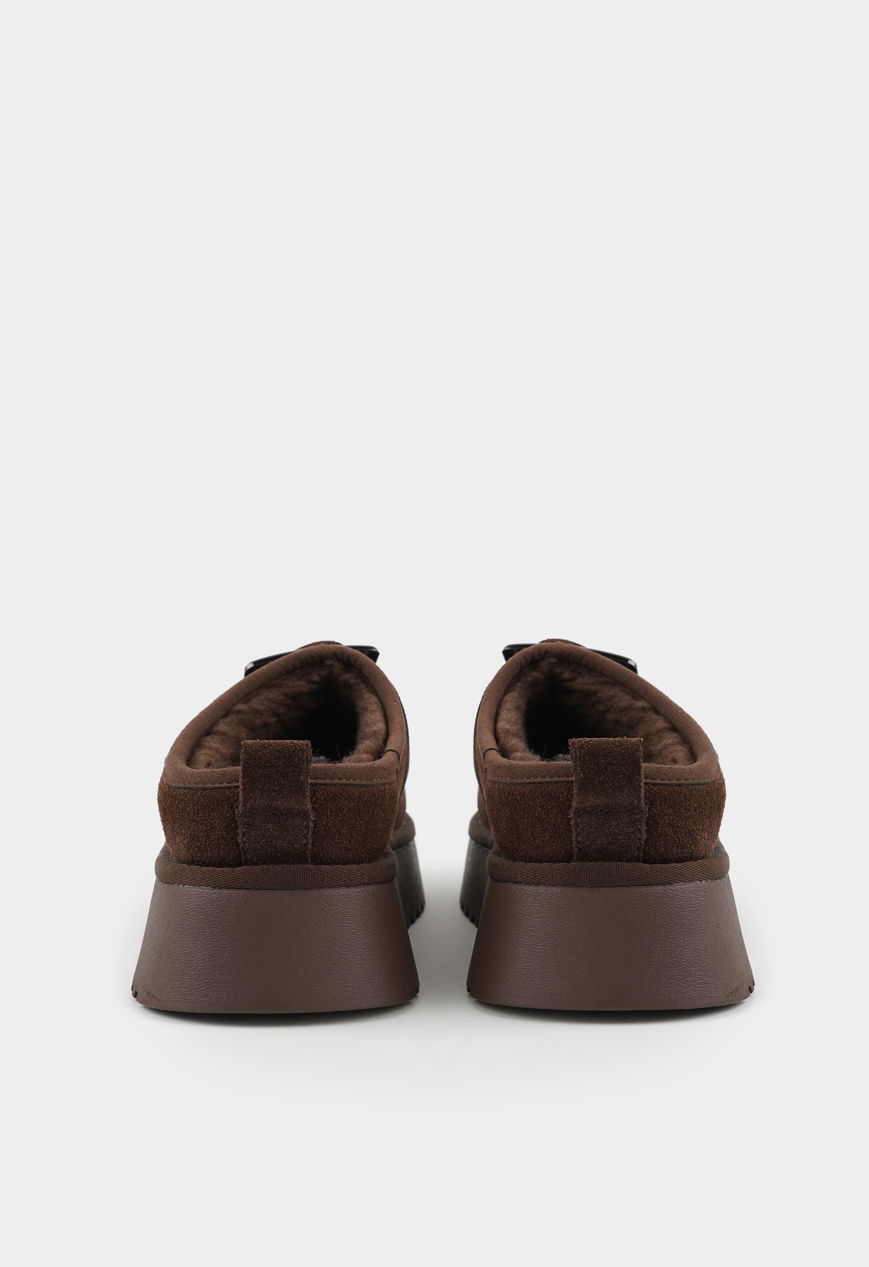 Полуботинки коричневого цвета – стильный вариант для тех, кто ценит элегантность и комфорт в повседневной обуви. Верх из натуральной замши придает модели утонченный внешний вид и мягкость, а внутренняя отделка из натуральной шерсти обеспечивает уют и тепло в прохладную погоду. Жесткая подошва делает шаг устойчивым, округлый мысок гарантирует удобство, а металлическая фурнитура добавляет выразительный акцент. Умеренная платформа создает гармоничное сочетание практичности и изящного стиля.