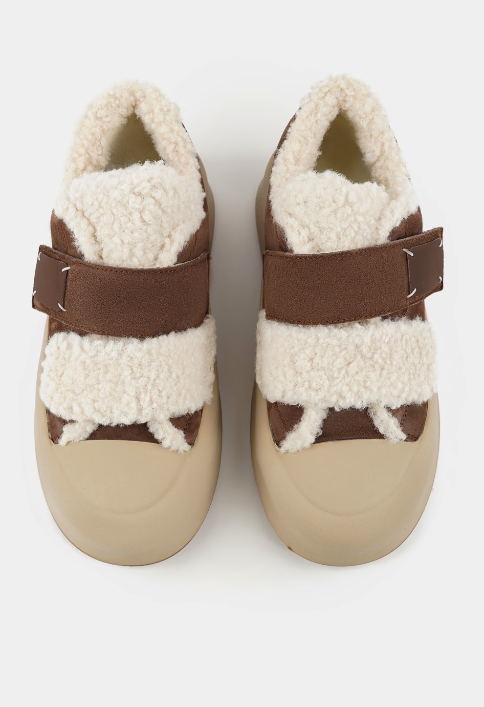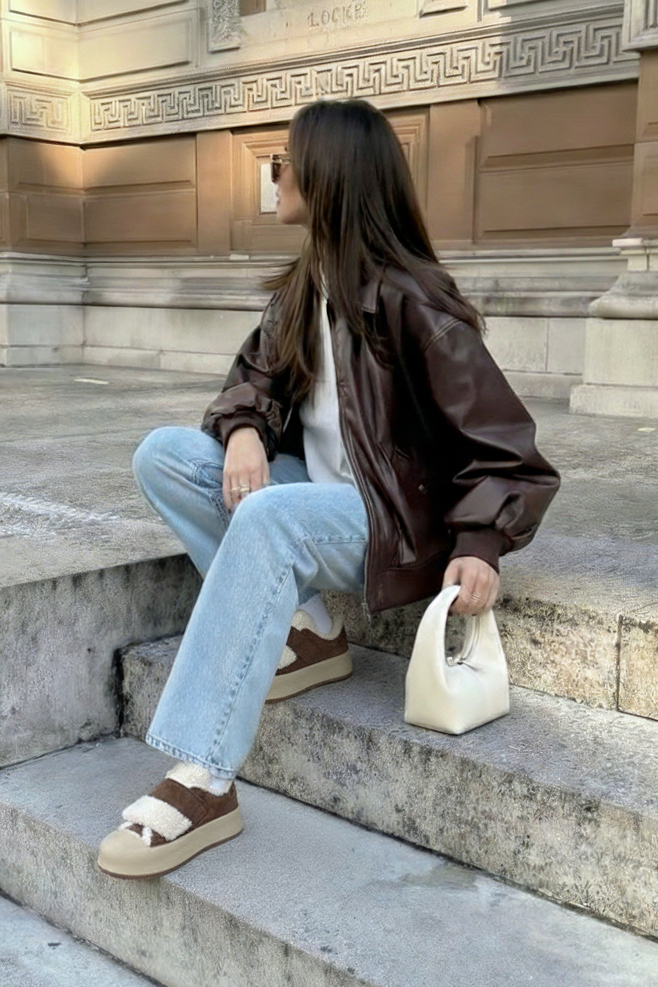Коричневые кроссовки – удобное и стильное решение для повседневной носки в холодное время года. Натуральная замша придает модели мягкость и благородный внешний вид, а внутренняя отделка из натуральной шерсти обеспечивает комфорт и тепло в течение всего дня. Жесткая подошва гарантирует устойчивость, округлый мысок делает обувь комфортной при длительной ходьбе, а застежка-липучка добавляет практичности и позволяет быстро надевать и снимать обувь. Платформа визуально удлиняет силуэт и придает образу современный, динамичный характер.