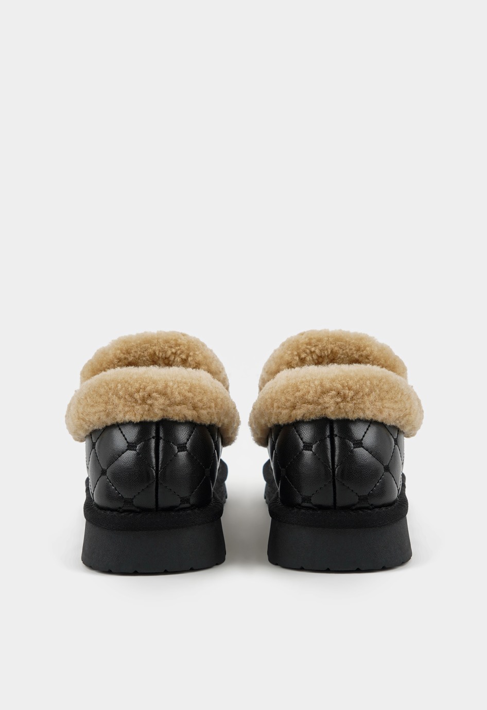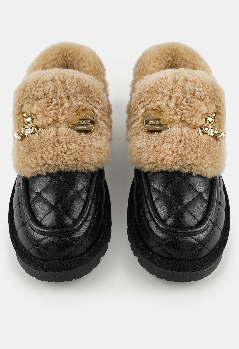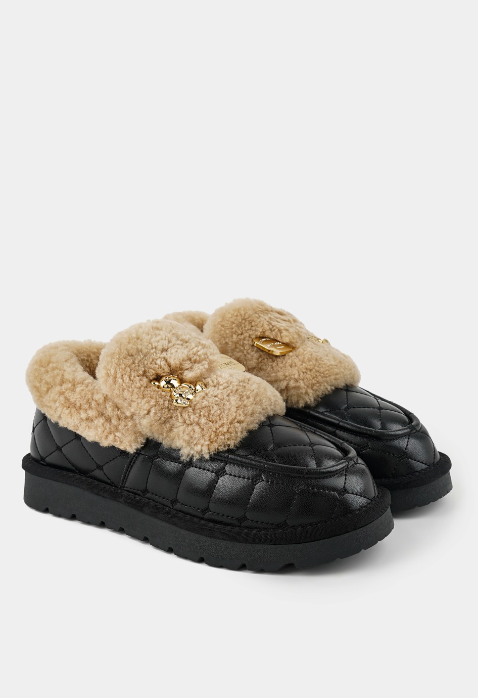Современные угги черного цвета – стильная и практичная пара, которая станет универсальным элементом вашего гардероба. Изготовленные из натуральной кожи, они отличаются прочностью и элегантным внешним видом, мягкая внутренняя отделка из натуральной шерсти поддерживает комфорт и тепло в любую погоду. Гибкая подошва подстраивается под движения стопы, обеспечивая легкость и устойчивость при ходьбе. Округлый мысок делает обувь удобной для повседневной носки, в то время как изящная золотая фурнитура добавляет нотку утонченности. Платформа придает модели современный характер и легко дополняет как классические, так и базовые образы.