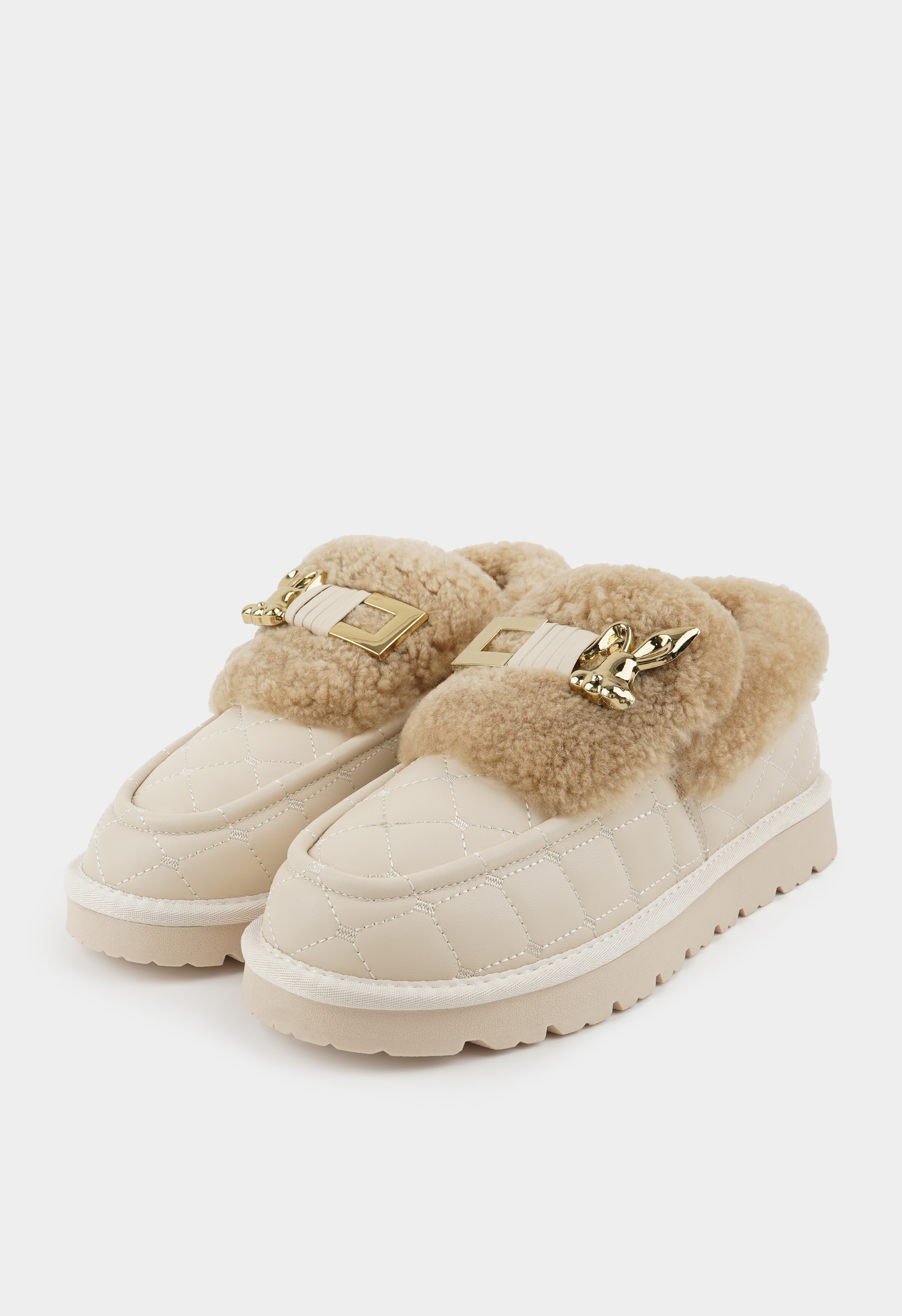 Современные полуботинки молочного цвета – стильная и практичная пара, которая станет универсальным элементом вашего гардероба. Изготовленные из натуральной кожи, они отличаются прочностью и элегантным внешним видом, мягкая внутренняя отделка из натуральной шерсти поддерживает комфорт и тепло в любую погоду. Гибкая подошва подстраивается под движения стопы, обеспечивая легкость и устойчивость при ходьбе. Округлый мысок делает обувь удобной для повседневной носки, в то время как изящная золотая фурнитура добавляет нотку утонченности. Платформа придает модели современный характер и легко дополняет как классические, так и базовые образы.