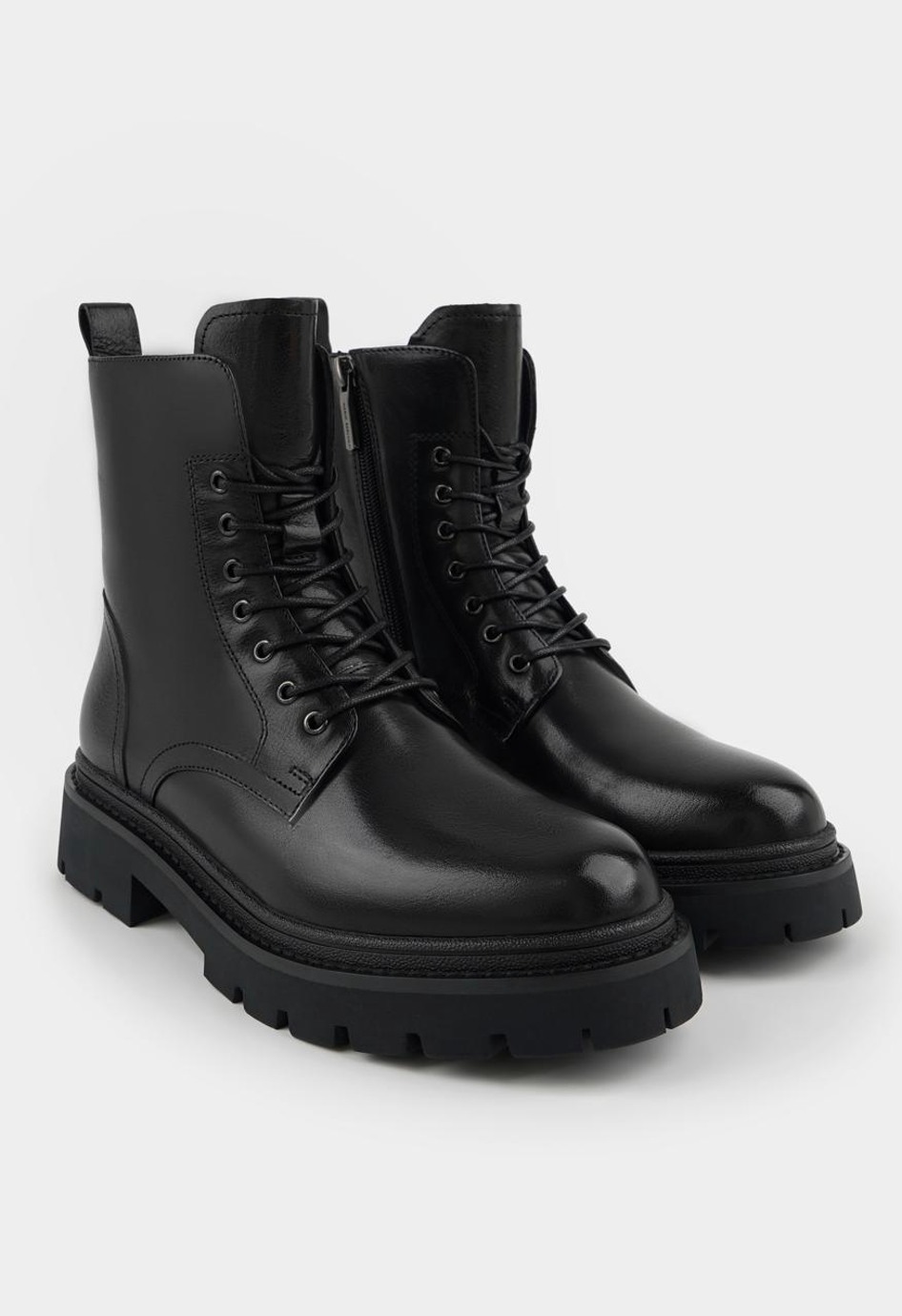 Ботинки черного цвета – современное решение для тех, кто ценит надежность, комфорт и выразительный дизайн. Модель украшена сочетанием серебряной и металлической фурнитуры, что придает ей стильный, немного брутальный характер. Широкий каблук обеспечивает устойчивость, жесткая подошва – уверенность в каждом шаге, а округлый мысок делает обувь удобной при длительной носке. Выполненные из прочной натуральной кожи снаружи и дополненные теплым натуральным мехом внутри, ботинки гарантируют комфорт в холодный сезон. Молния и шнуровка позволяют легко регулировать посадку и обеспечивают удобство при ежедневном использовании.