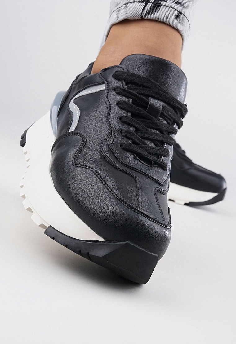 Обратите внимание: данная модель является маломеркой и отлично подходит для ног со средней и широкой полнотой стопы. Советуем проконсультироваться с менеджером по выбору наиболее подходящего Вам размера. Стильные кроссовки на платформе выполнены из натуральной мягкой кожи чёрного цвета и декорированы оригинальными вставками. Изделие дополнено удобной шнуровкой и кожаной подкладкой, которая идеально облегает стопу. Эффектная модель из новой коллекции превосходно сочетается с элементами базового гардероба и поможет оставаться в тренде не один сезон.