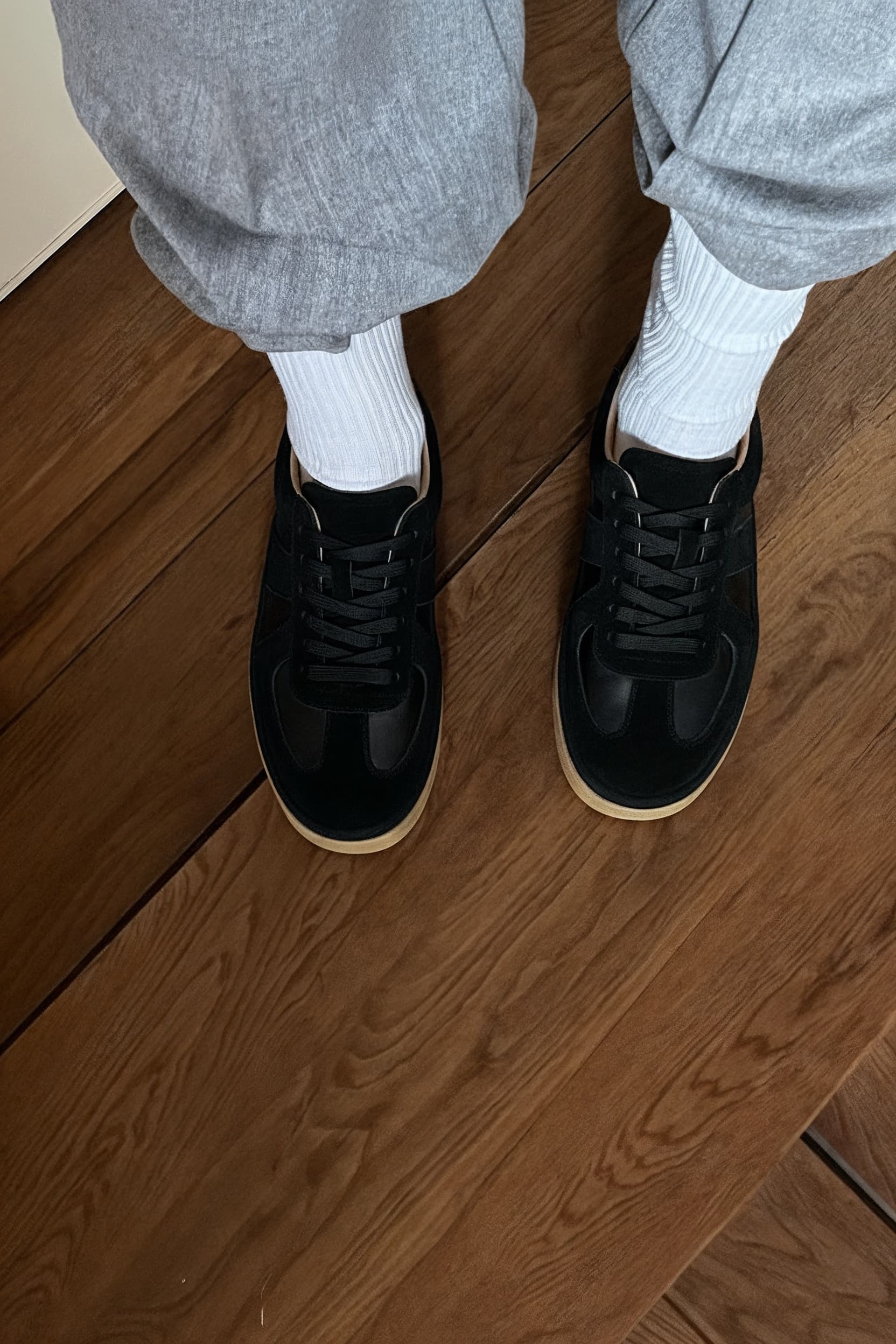 Кеды из натуральной замши в универсальном черном цвете – это стиль и уверенность в каждом шаге. Жесткая подошва с платформой дает отличную поддержку и устойчивость, а округлый мысок и шнуровка обеспечивают удобную посадку и комфорт на весь день. Матовая фактура замши добавляет образу глубины и элегантности, превращая спортивную классику в элемент современного городского стиля.