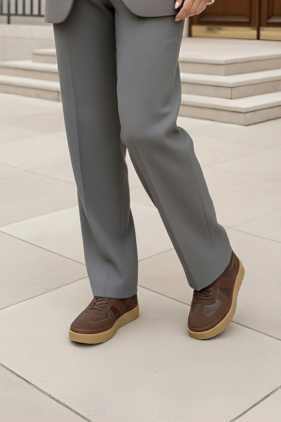 Кеды из натуральной замши в универсальном коричневом цвете – это стиль и уверенность в каждом шаге. Жесткая подошва с платформой дает отличную поддержку и устойчивость, а округлый мысок и шнуровка обеспечивают удобную посадку и комфорт на весь день. Матовая фактура замши добавляет образу глубины и элегантности, превращая спортивную классику в элемент современного городского стиля.