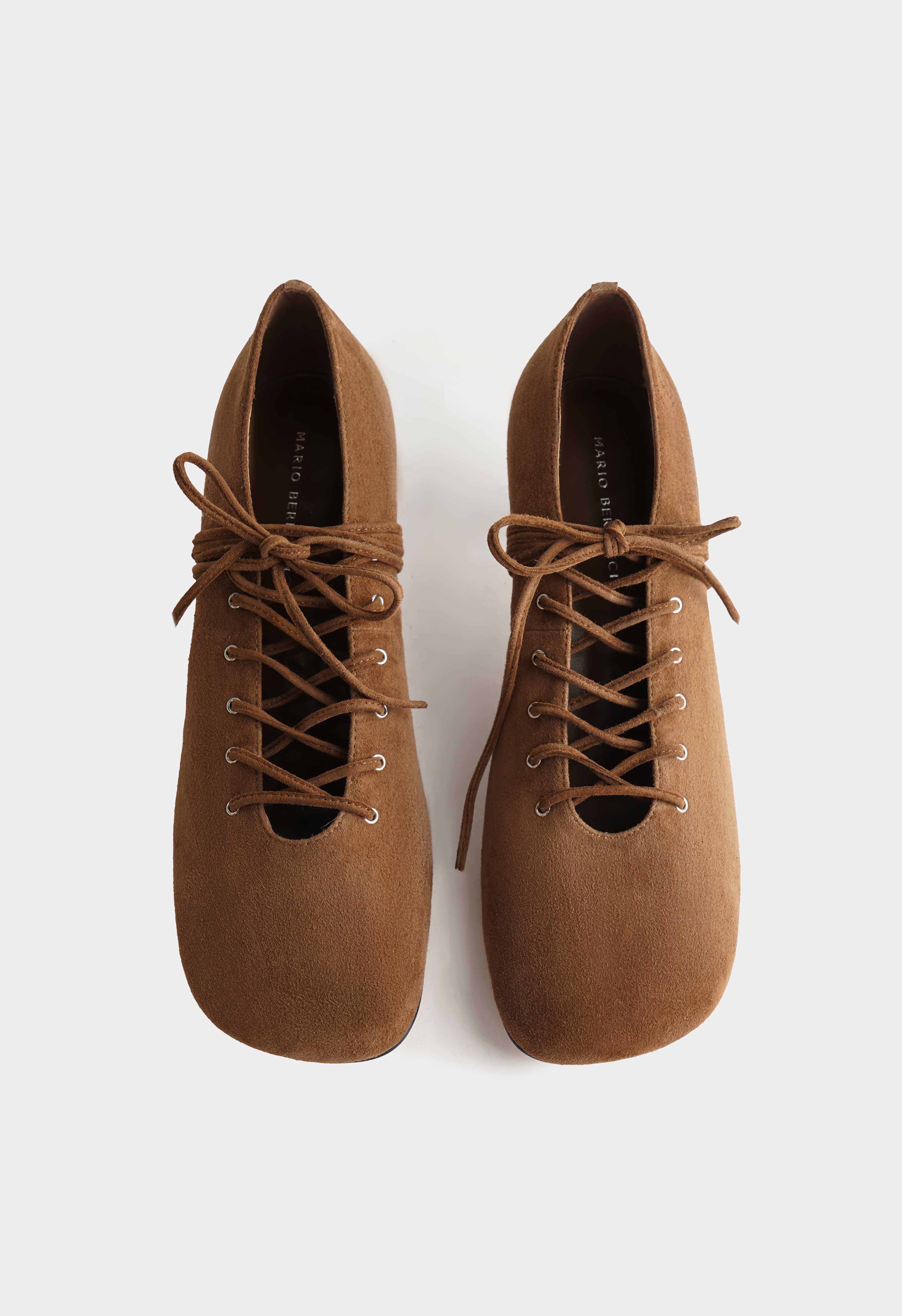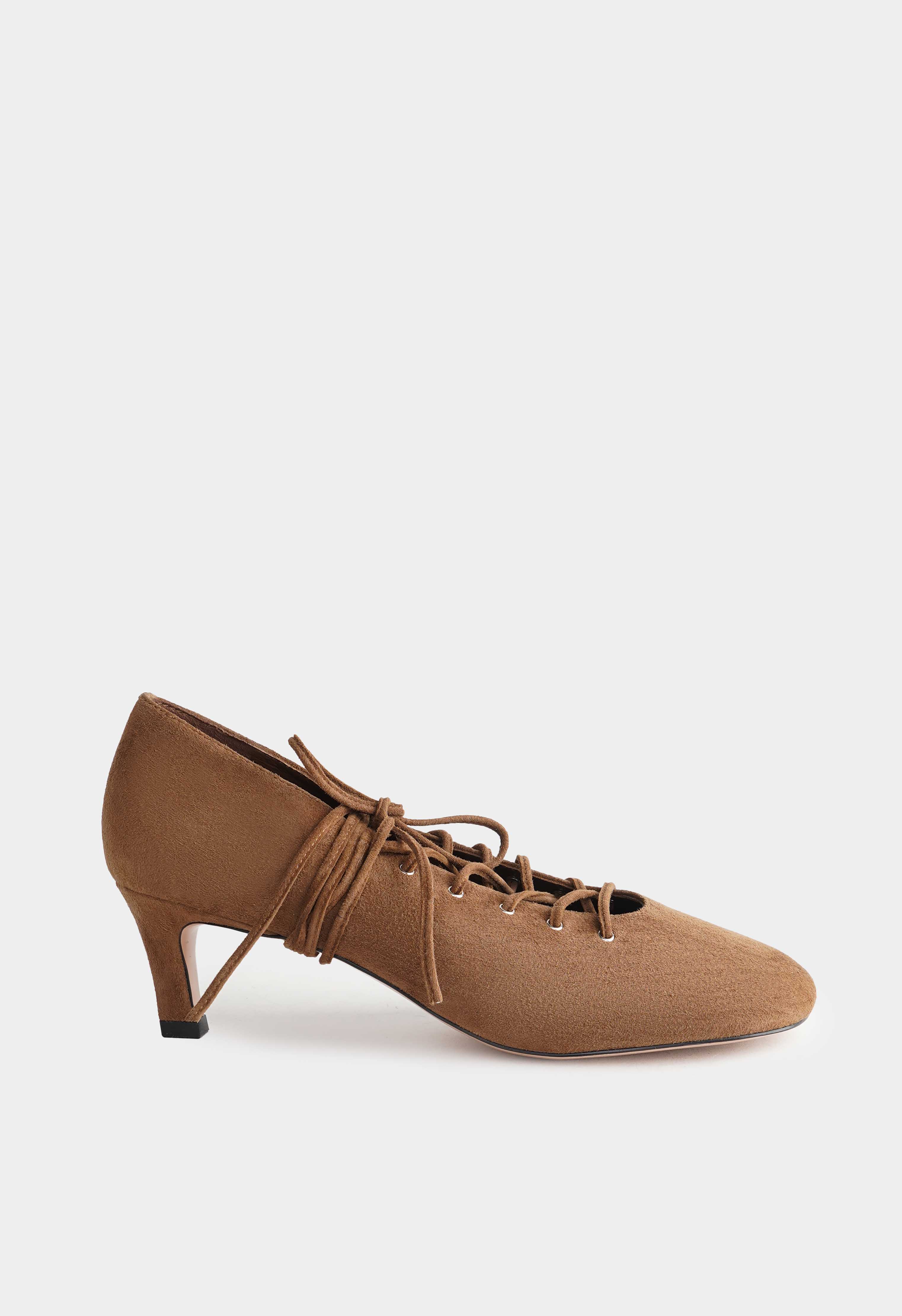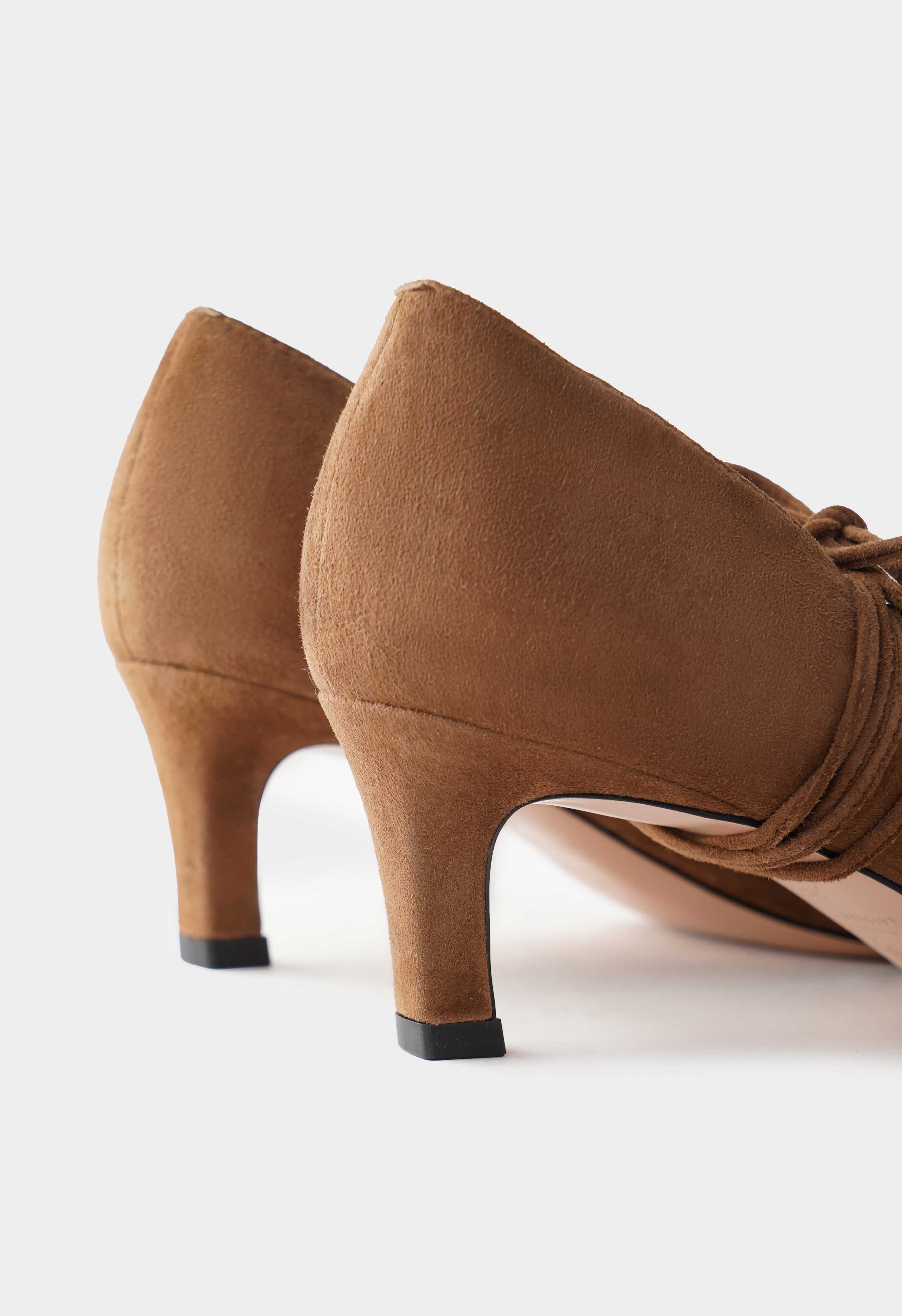 Эти изысканные туфли из натуральной замши в теплом коричневом оттенке сочетают утонченность и практичность для любого стильного образа. Квадратный мысок создает современный силуэт, каблук-рюмка дарит устойчивость, а шнуровка с серебряной фурнитурой добавляет элегантный акцент и надежную посадку. Гибкая подошва обеспечивает комфортную амортизацию и свободу движений на весь день.