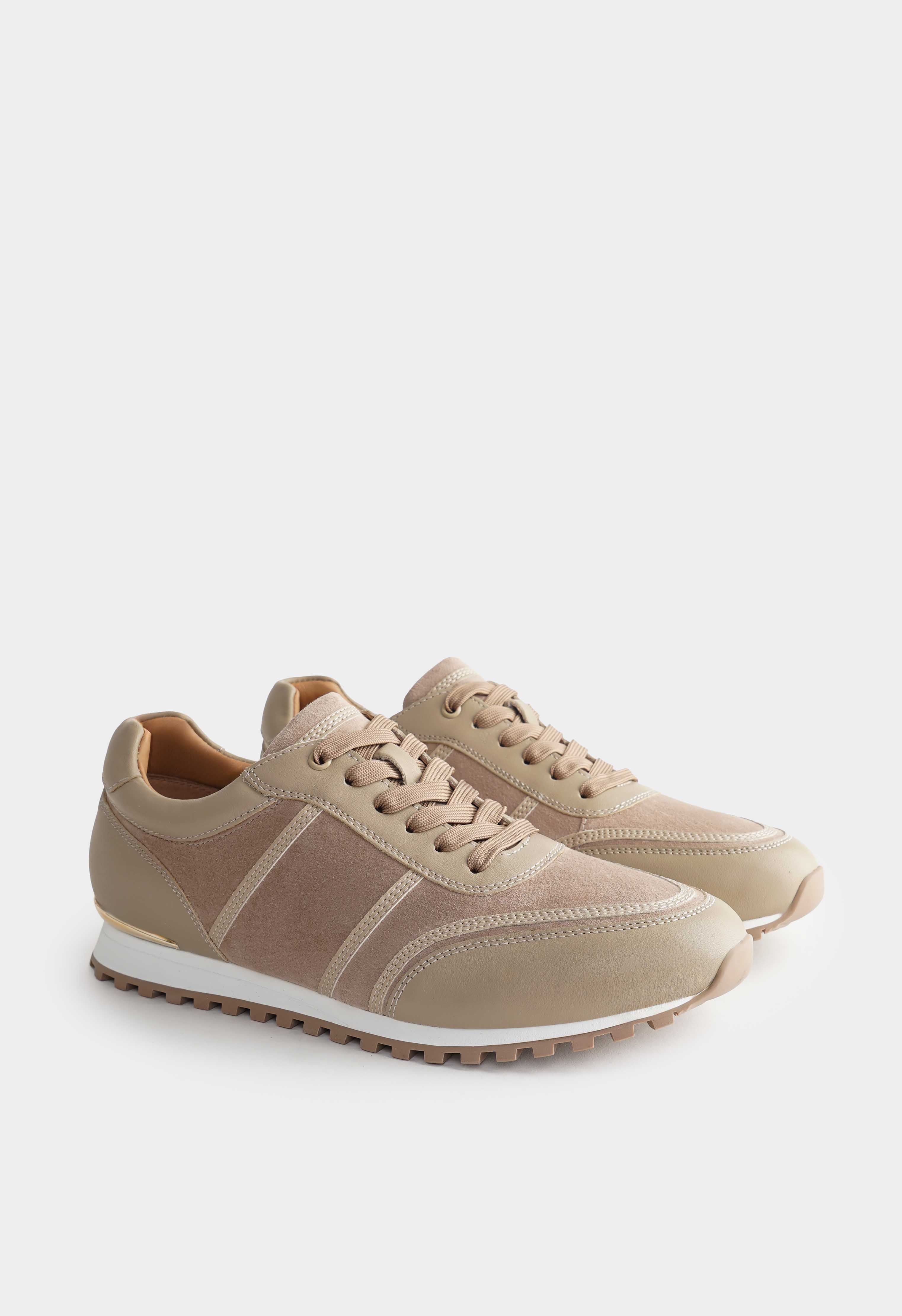 Бежевые кроссовки из натуральной кожи – спокойная база, которая легко вписывается в любой гардероб и выглядит аккуратно в каждом образе. Гладкая кожа в сочетании с фактурными вставками добавляет глубины дизайну, а округлый мысок обеспечивает комфортную посадку на каждый день. Шнуровка надежно фиксирует стопу, в то время как аккуратная золотая фурнитура добавляет деликатный акцент и подчеркивает внимание к деталям. Платформа визуально вытягивает силуэт и добавляет рост, жесткая подошва обеспечивает стабильную опору и уверенный шаг в городском ритме.