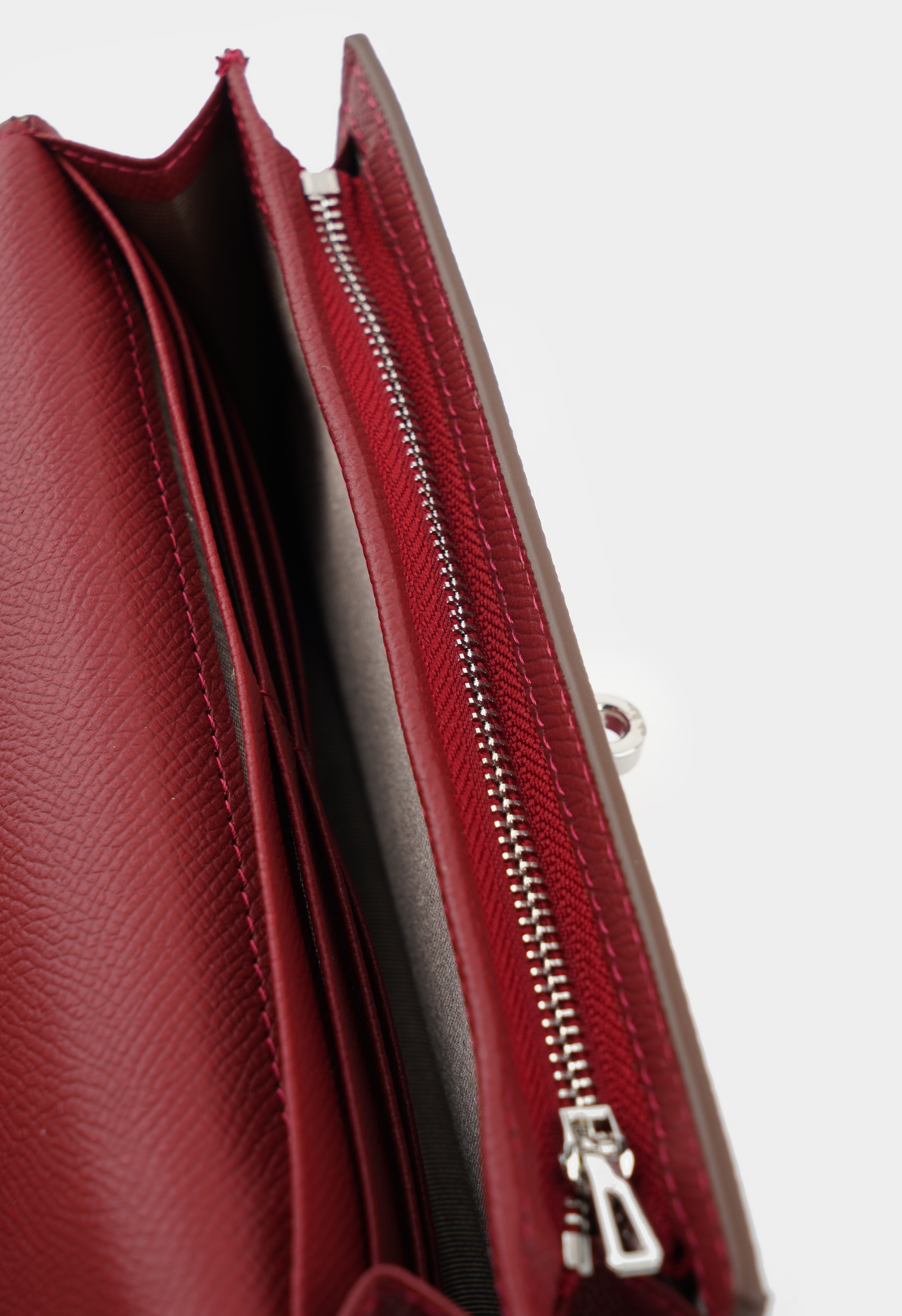 Бордовая сумка 2в1 – клатч и кошелек из натуральной кожи – станет вашим универсальным аксессуаром на каждый день и для особых случаев. Компактный размер удобно вмещает все необходимое, внутри предусмотрены два кармана и шесть отделений для визиток. Элегантный цвет, стильная пряжка и серебряная фурнитура создают современный образ, который легко сочетается с любым стилем. Плечевой ремень-цепочка и съемная ручка-ремешок с карабином позволяют носить сумку так, как удобно именно вам, превращая ее в идеальное решение для активной и стильной жизни.