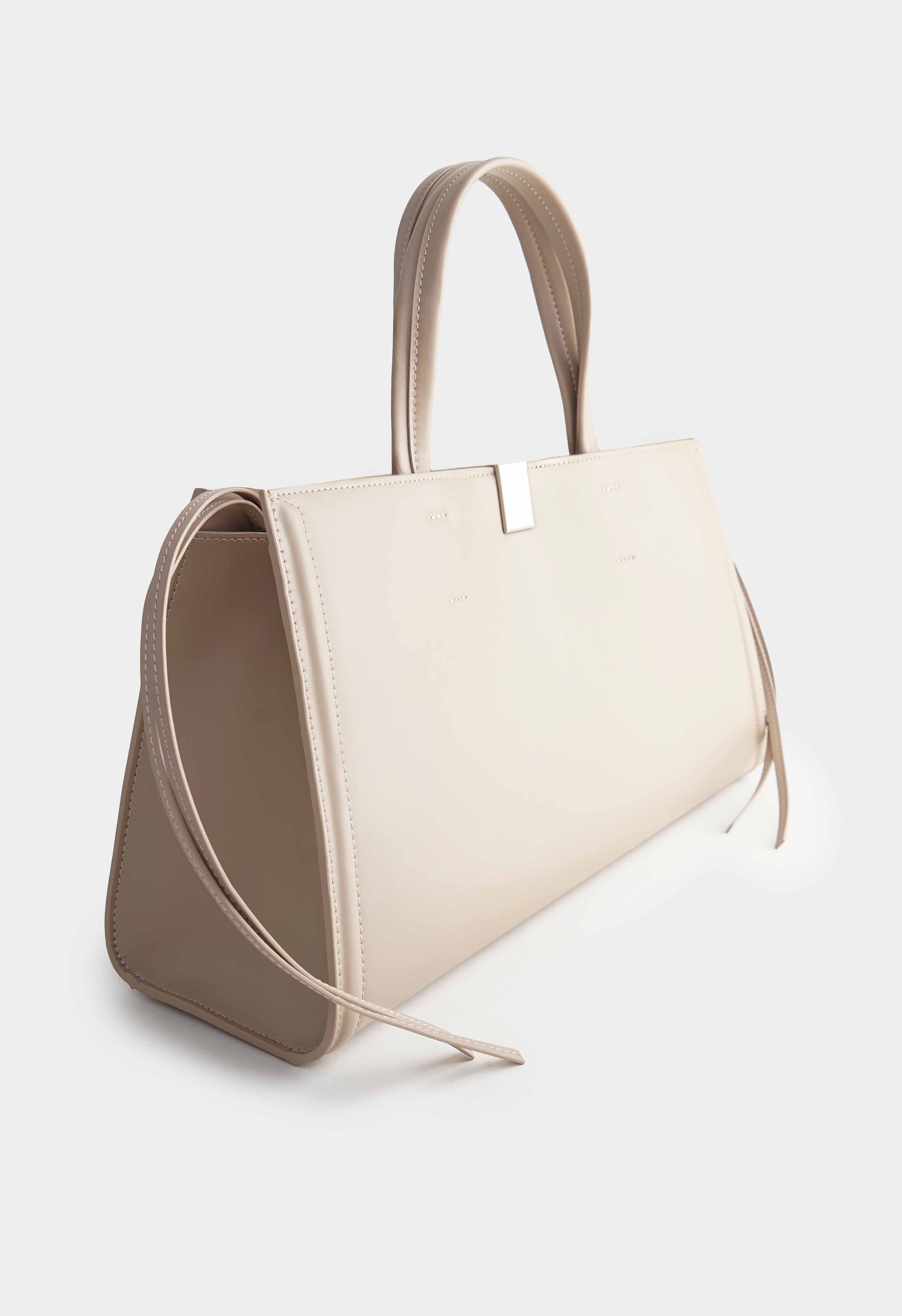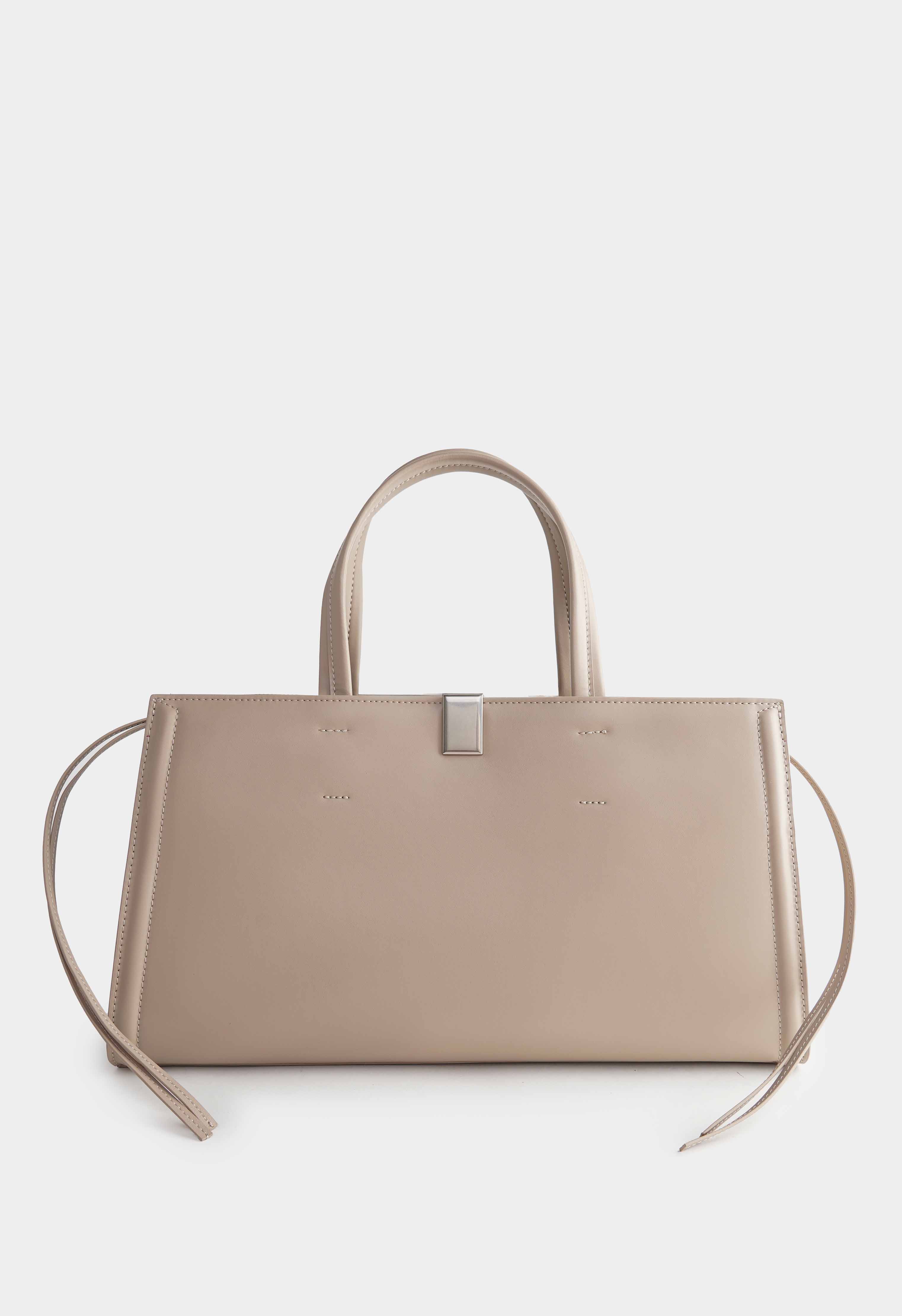 Бежевая сумка из натуральной кожи выглядит строго и дорого благодаря гладкой фактуре и четкой геометричной форме. Акцентная застежка на пряжке с серебряной фурнитурой добавляет аккуратный современный штрих и подчеркивает лаконичный дизайн. Удобные ручки и вытянутый силуэт делают модель идеальной для города и работы. Внутри предусмотрены два кармана, чтобы телефон, ключи и мелочи всегда лежали на своих местах и не терялись в общем отделении.