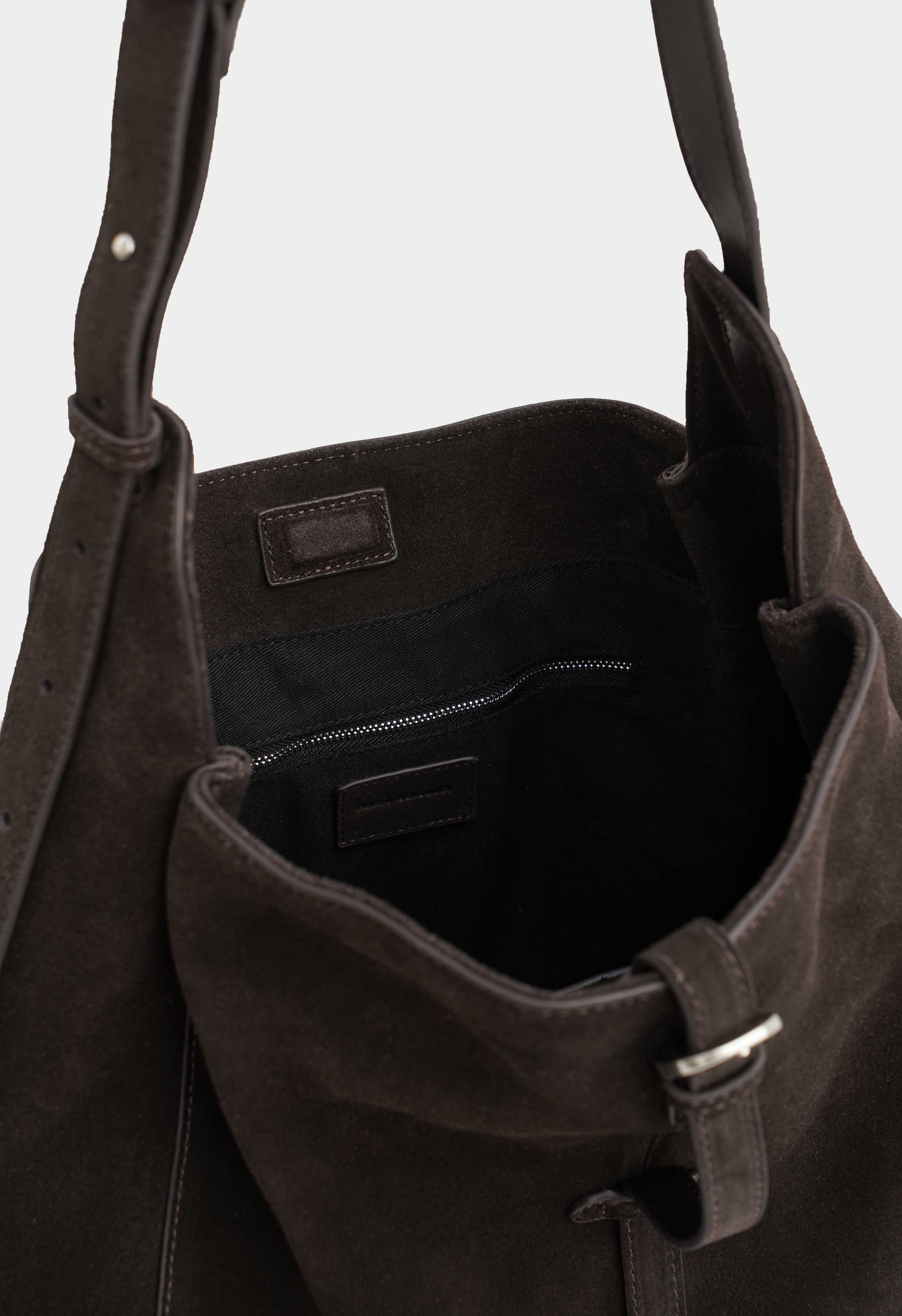 Повседневная коричневая сумка из натуральной замши – мягкий и благородный акцент для повседневных образов: регулируемая ручка позволяет настроить удобную длину, застёжка на магнит закрывается быстро и надежно, а серебряная фурнитура добавляет современный штрих. Внутри предусмотрены два кармана, чтобы аккуратно разложить мелочи и держать все нужное под рукой.