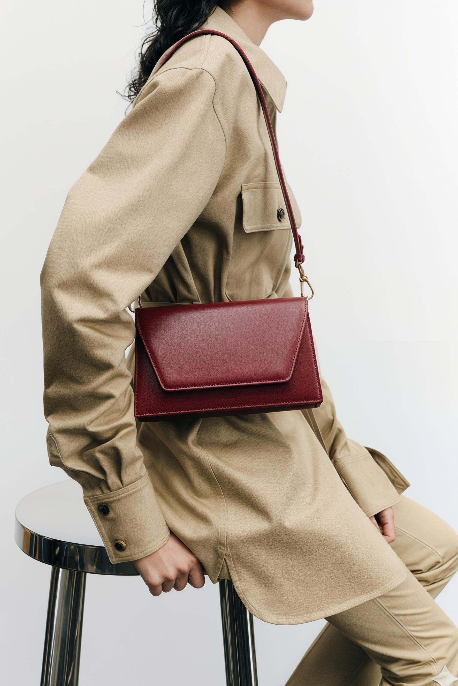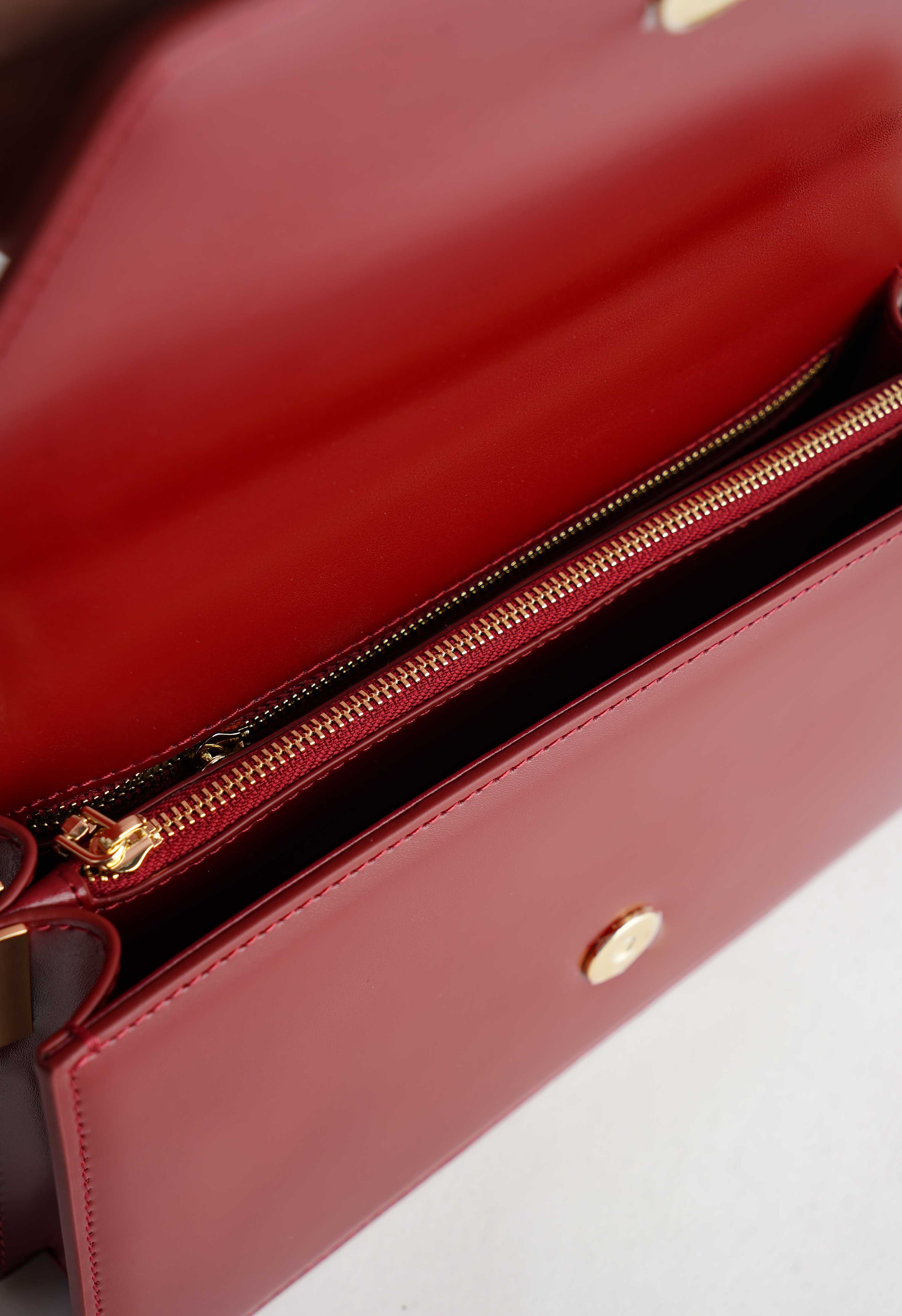 Акцентная сумка бордовом цвете из натуральной кожи – идеальная база, которая делает образ более дорогим и собранным. Аккуратный клапан на магнитной кнопке удобно закрывается одним движением, в то время как изящная золотая фурнитура добавляет красивый акцент и подчеркивает премиальный стиль. Внутри продуманная организация: три отделения, включая одно отделение на молнии, чтобы ценное всегда было под защитой, а также два внутренних кармана – карман на молнии и открытый карман для мелочей. Отдельные отделения под карточки помогают держать порядок, внешний карман снаружи удобно подходит для быстрого доступа к телефону или ключам. В комплекте предусмотрен плечевой ремень, который позволяет комфортно носить сумку на плече или через плечо, оставляя руки свободными.