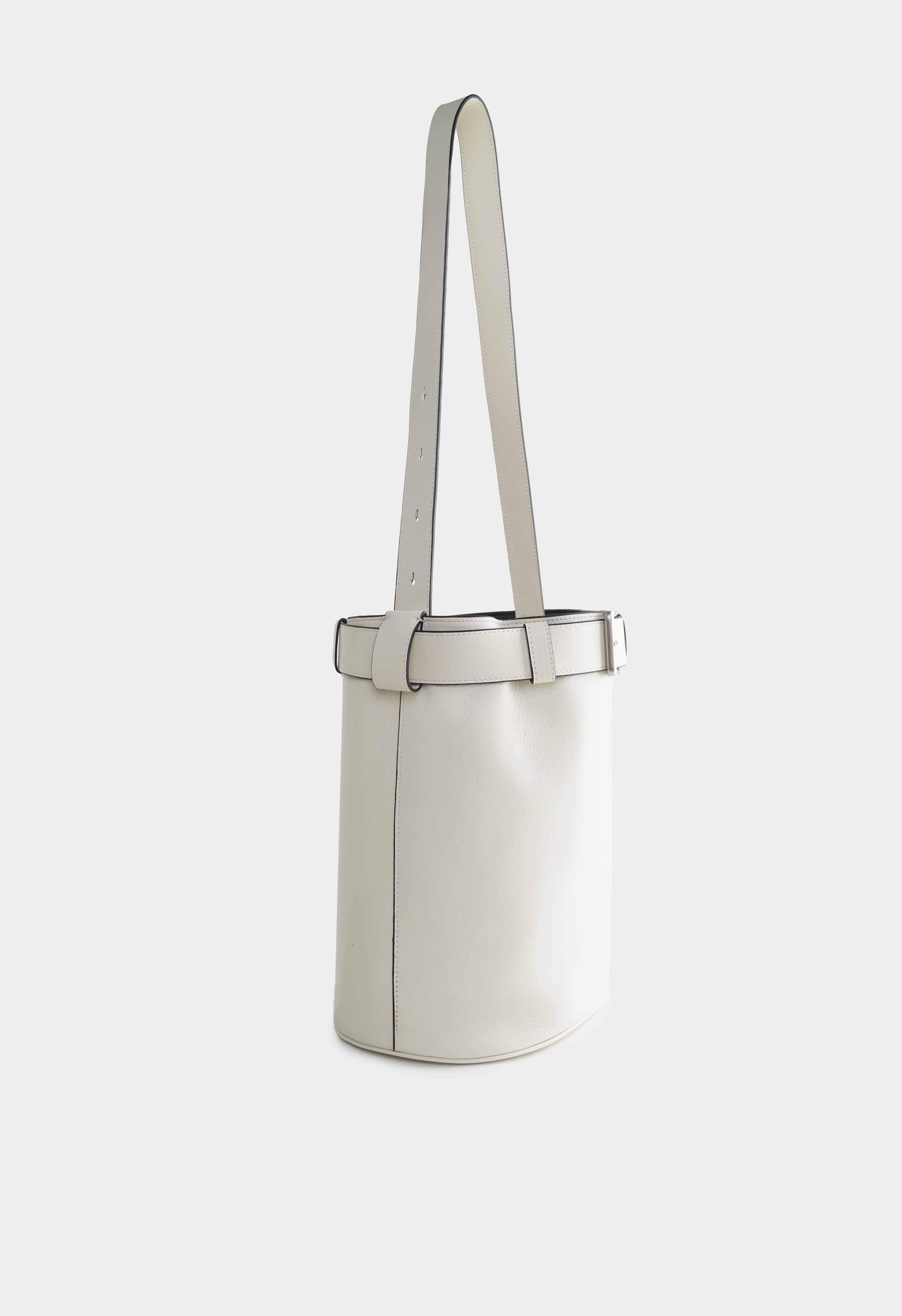 Сумка в нежном молочном цвете из натуральной кожи выглядит свежо и очень элегантно благодаря необычной цилиндрической форме. Декор кожаный ремень с пряжкой подчеркивает силуэт и добавляет выразительный акцент, а серебряная фурнитура делает образ более современным и аккуратным. Регулируемая ручка позволяет выбрать удобную длину и носить сумку так, как хочется. Внутри предусмотрен карман для мелочей для комфортной организации.