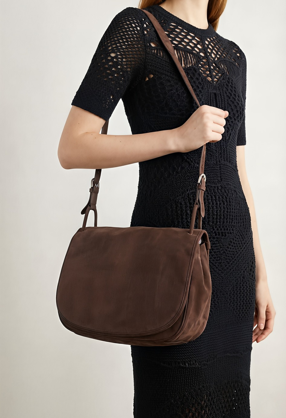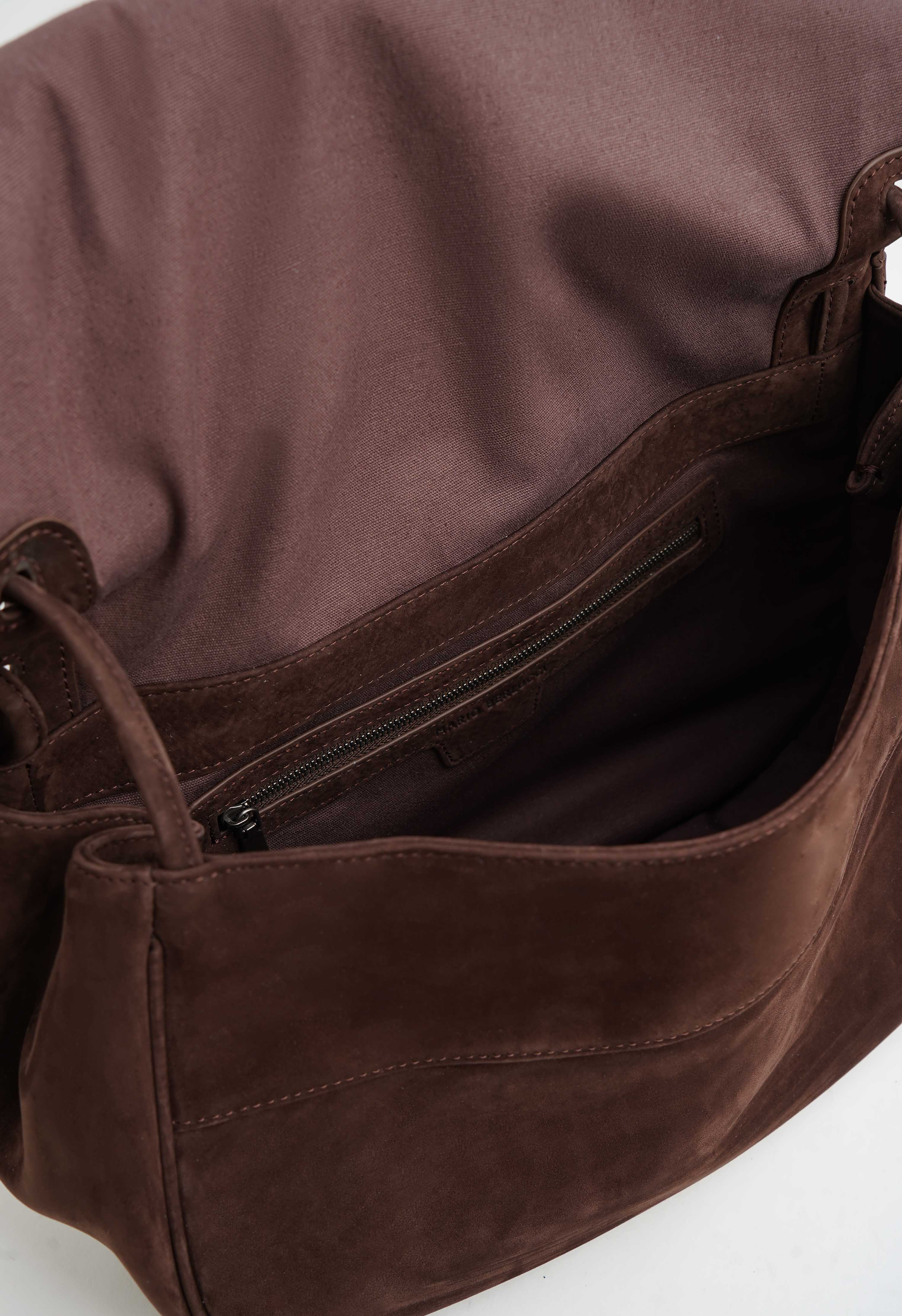 Вместительная сумка светло-коричневого цвета из натуральной замши – универсальная база, которая добавляет образу статус. Регулируемая ручка позволяет носить ее так, как удобно именно вам, а аккуратный клапан надежно закрывает содержимое. Фурнитура металлик подчеркивает современный характер модели, внутри предусмотрены три кармана для идеальной организации мелочей, а один внешний карман выручит, когда нужно быстро достать телефон или ключи.
