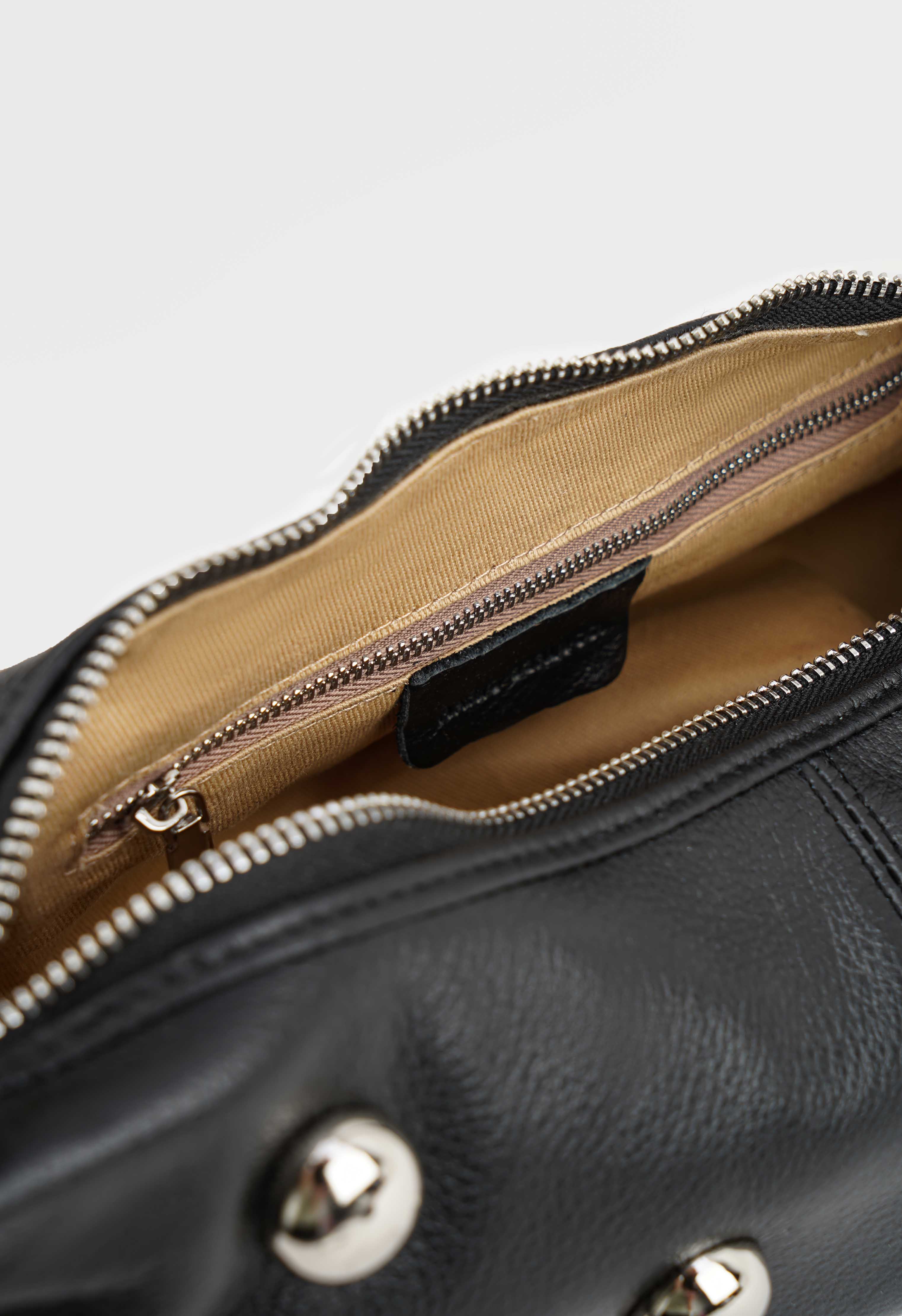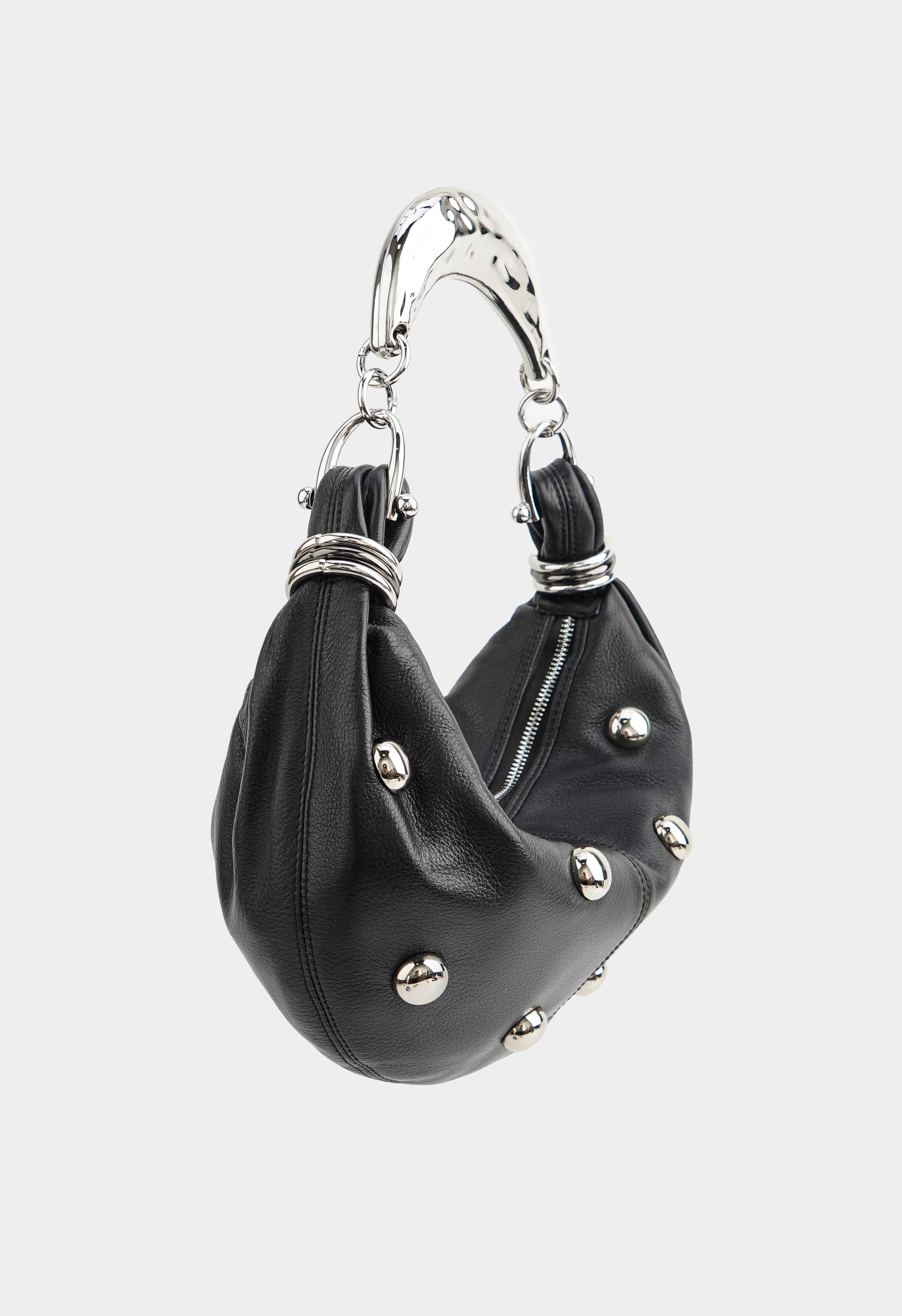 Оригинальная черная сумка из натуральной кожи с крупными серебряными деталями – эффектный аксессуар с характером, который сразу притягивает взгляды и добавляет образу модной дерзости. Плечевой ремень в комплекте обеспечивает комфорт в носке, молния надежно закрывает содержимое, серебряная фурнитура поддерживает общий стиль, а внутри предусмотрены два кармана, чтобы удобно разложить мелочи и держать все важное под рукой.