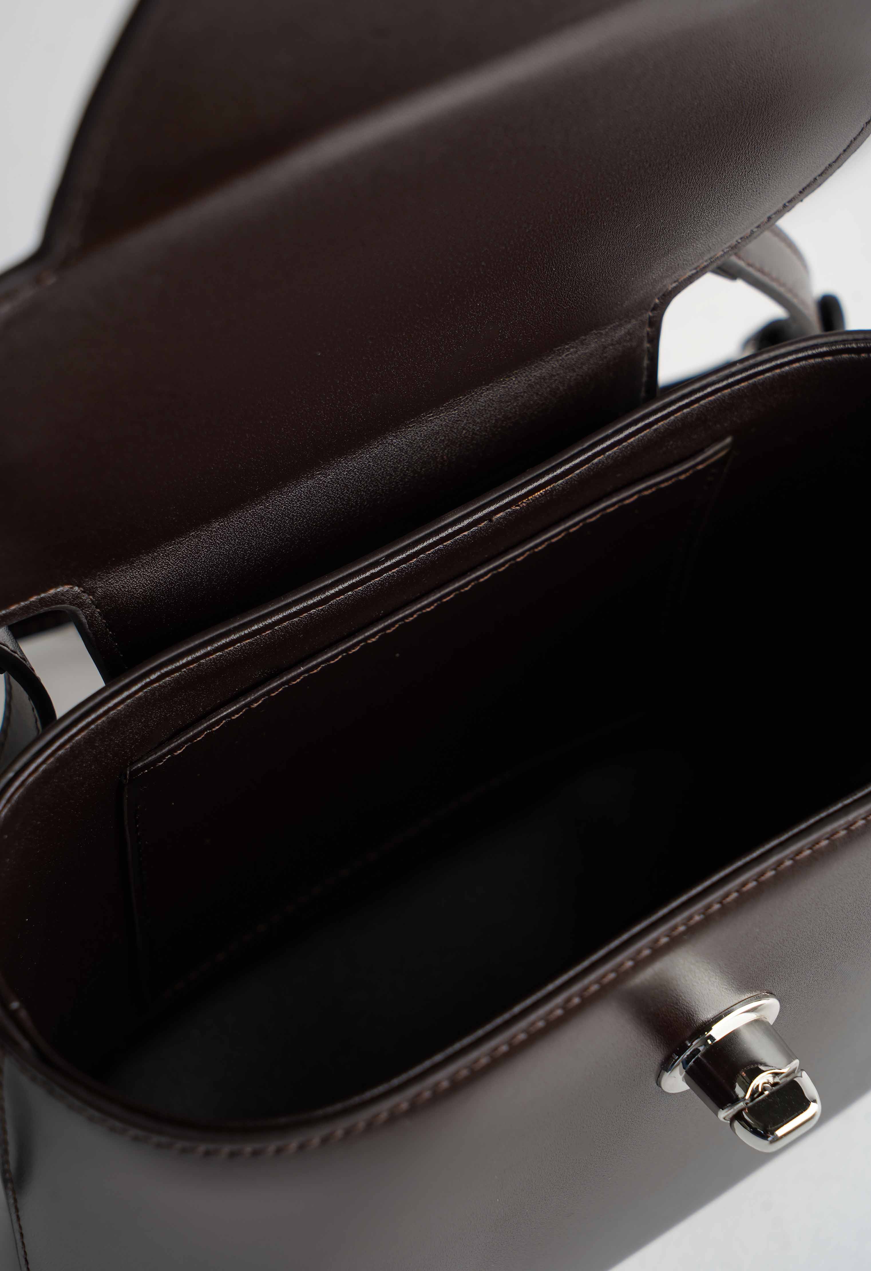 Строгая коричневая сумка из натуральной кожи выглядит элегантно и дорого благодаря гладкой фактуре и мягко округленной форме. Акцентная пряжка с золотой фурнитурой подчеркивает аккуратный клапан и добавляет образу благородный блеск. Компактный размер остается практичным: внутри предусмотрен карман для мелочей, чтобы телефон, ключи и карты лежали аккуратно. В комплекте есть плечевой ремень, благодаря которому удобно носить сумку на плече или через плечо, сохраняя руки свободными, а стиль – безупречным.