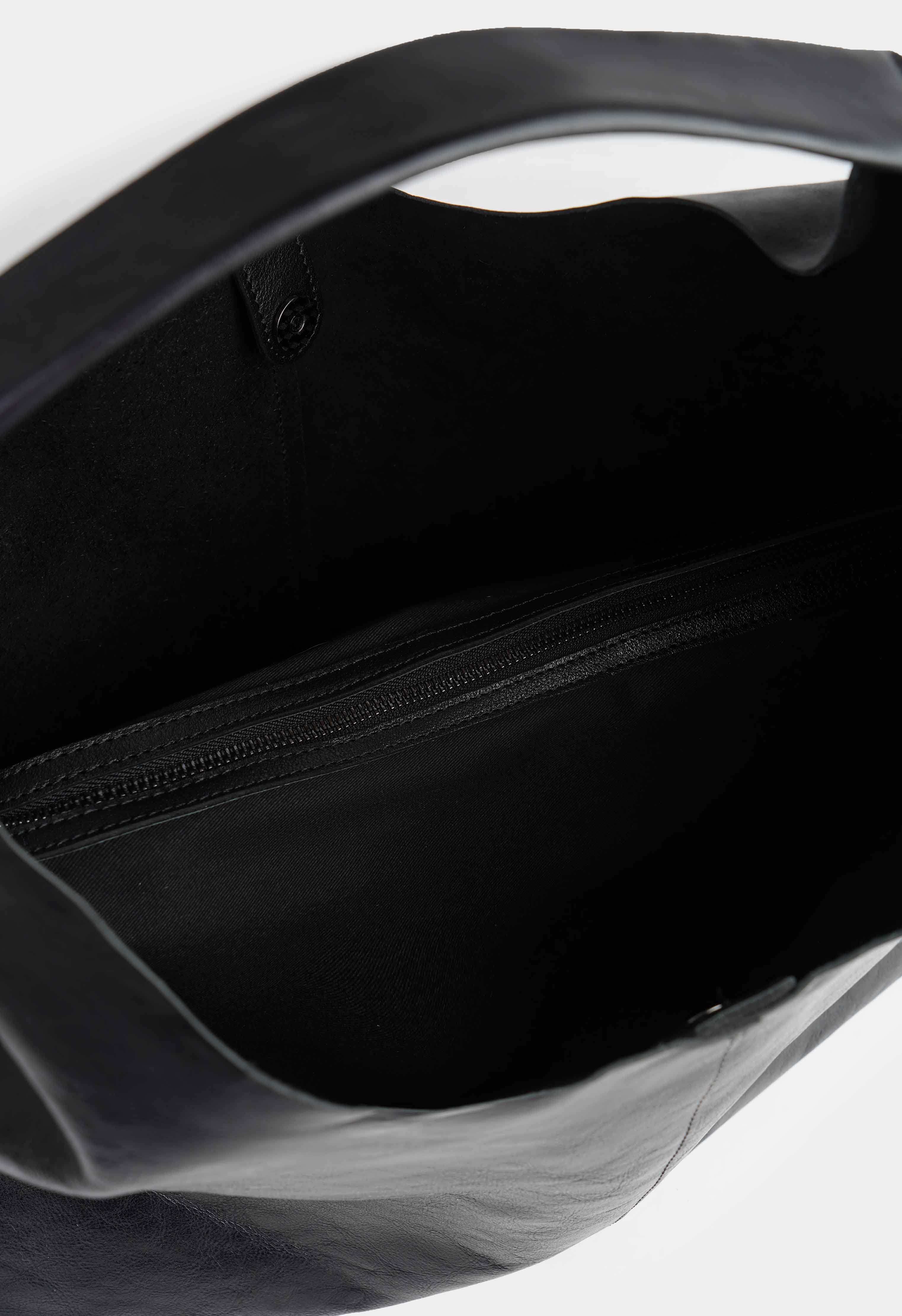 Черная женская сумка из натуральной кожи – стильный и функциональный аксессуар для повседневных и деловых образов. Удобный текстильный вкладыш на молнии с двумя внутренними карманами позволяет аккуратно организовать личные вещи, а надежная застежка на кнопку обеспечивает быстрый доступ и комфорт в использовании. Лаконичная фурнитура в оттенке металлик придаёт сумке современный акцент, подчеркивая ее элегантный и универсальный дизайн.