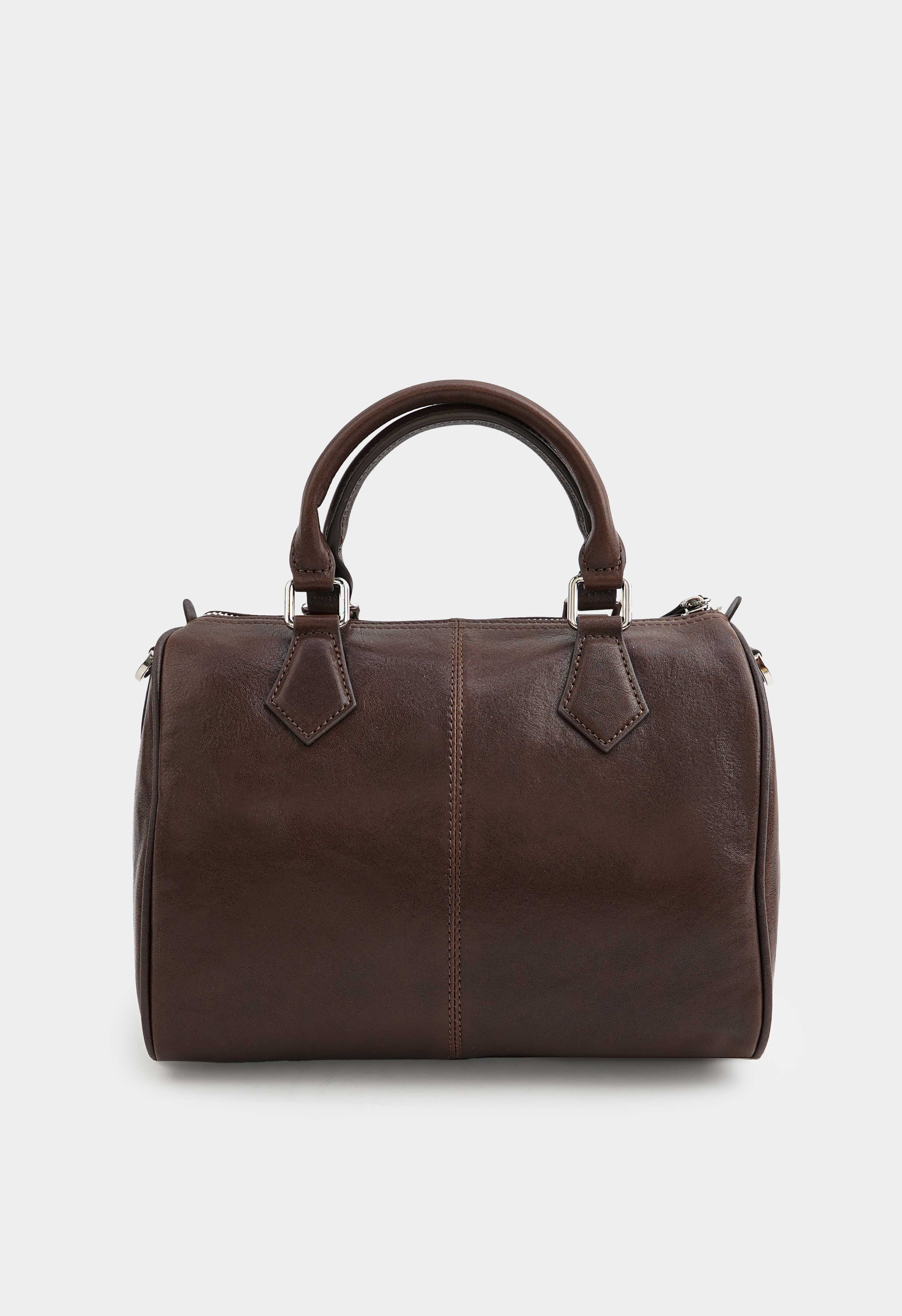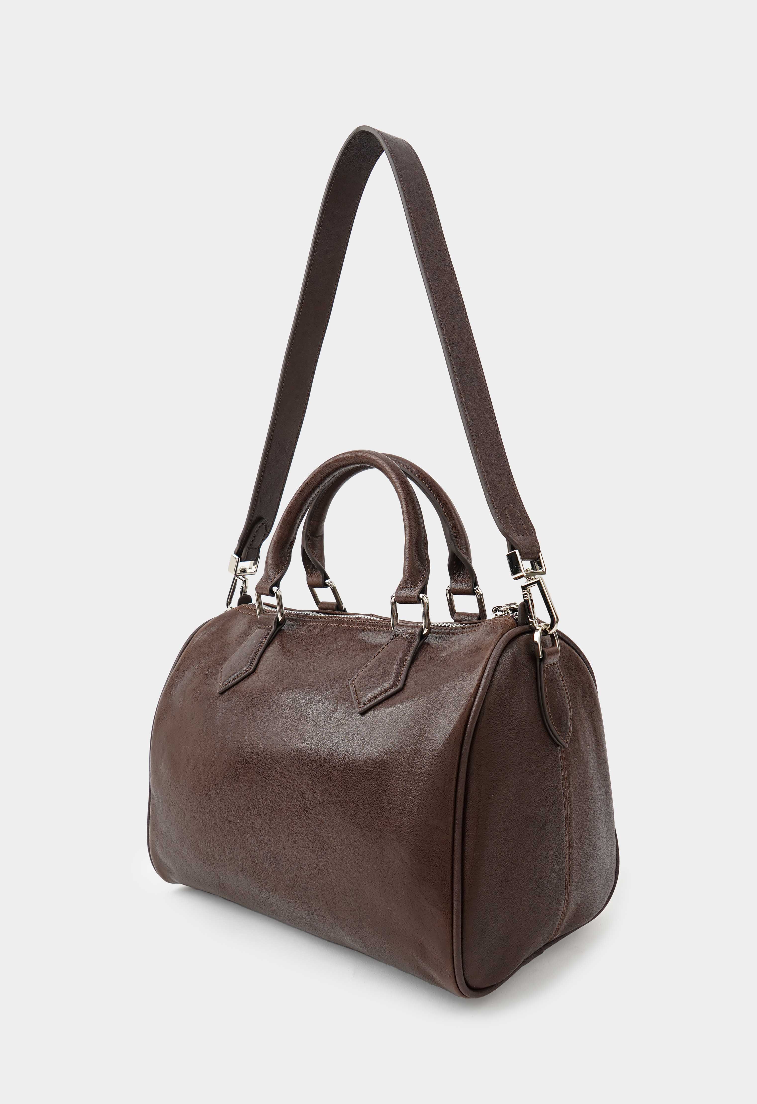 Современная коричневая сумка из натуральной кожи – практичная и выразительная модель для динамичного дня: два плечевых ремня обеспечивают удобную посадку и комфорт в носке, а обвес из кожаной тесьмы с мини-замочком добавляет модный акцент и делает сумку запоминающейся. Молния защищает содержимое, серебряная фурнитура придает современный блеск, в то время как внутри предусмотрены два кармана, чтобы аккуратно разложить мелочи и быстро находить самое нужное.