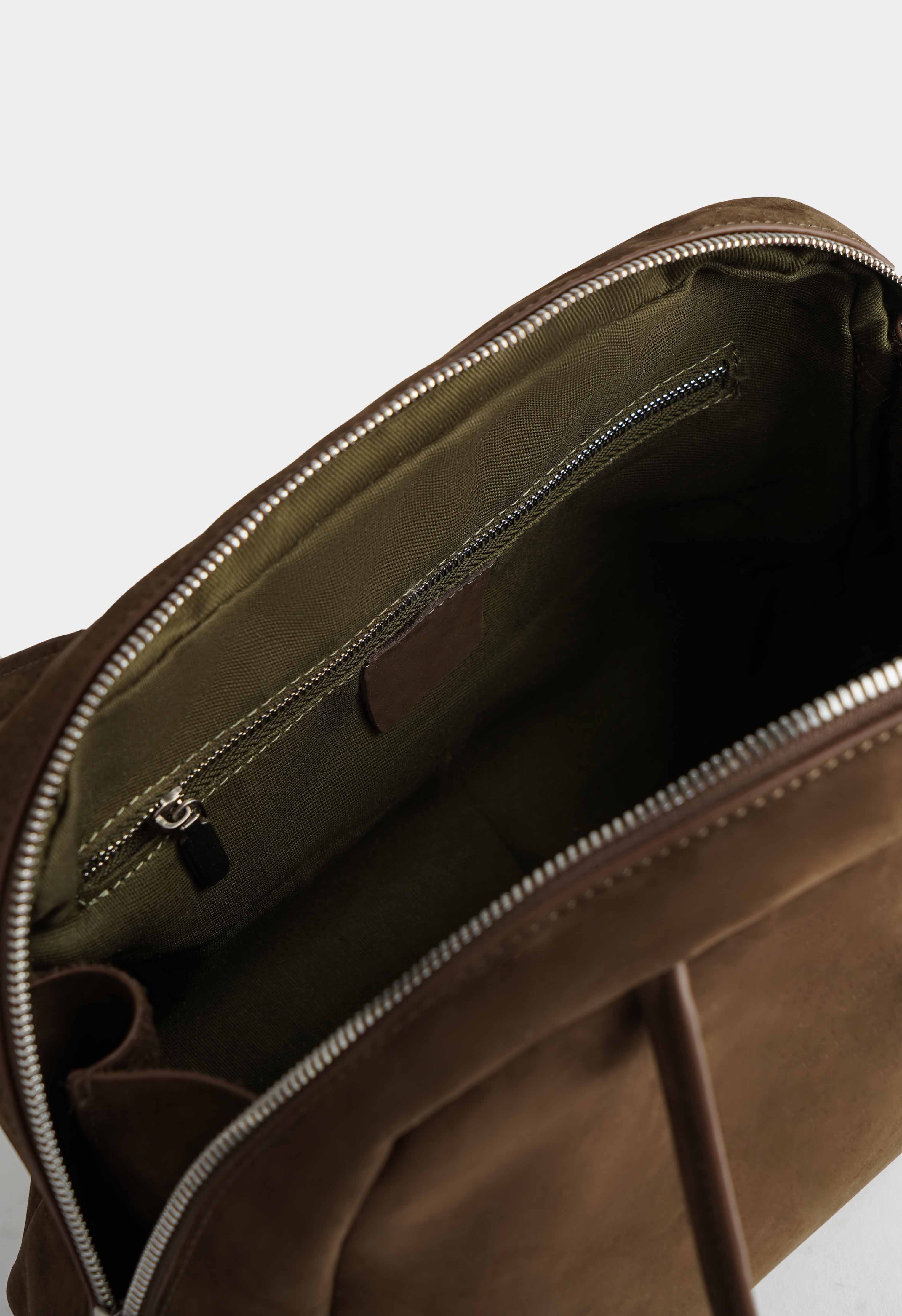 Светло-коричневая женская сумка из нубука – практичный и стильный аксессуар для повседневной жизни и городских образов. Мягкий и приятный на ощупь материал придает модели изысканный вид, надежная молния и два внутренних кармана помогают удобно хранить все необходимые вещи. Серебристая фурнитура добавляет элегантный блеск и подчеркивает современный дизайн, делая эту сумку универсальным выбором для прогулок, работы и активного ритма дня.