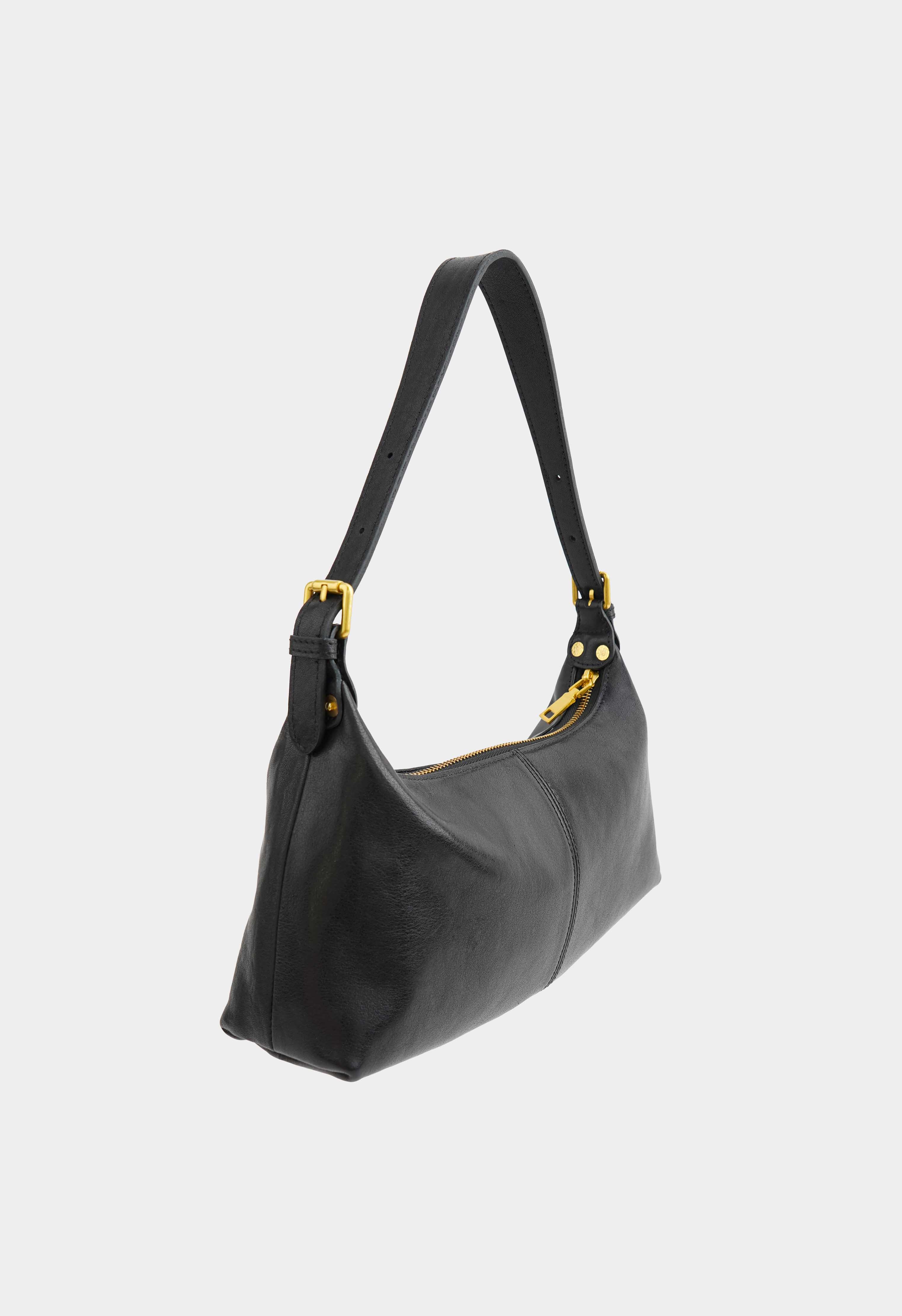 Стильная черная сумка из натуральной кожи – идеальный баланс базы и игривой детали: плечевой ремень удобно ложится на плечо, съемная ручка позволяет менять посадку и настроение образа, а обвес из кожаной тесьмы со смайликом добавляет характер и делает модель особенной. Золотая фурнитура красиво подчеркивает черную кожу, молния надежно закрывает сумку, в то время как два внутренних кармана помогают держать мелочи в порядке.