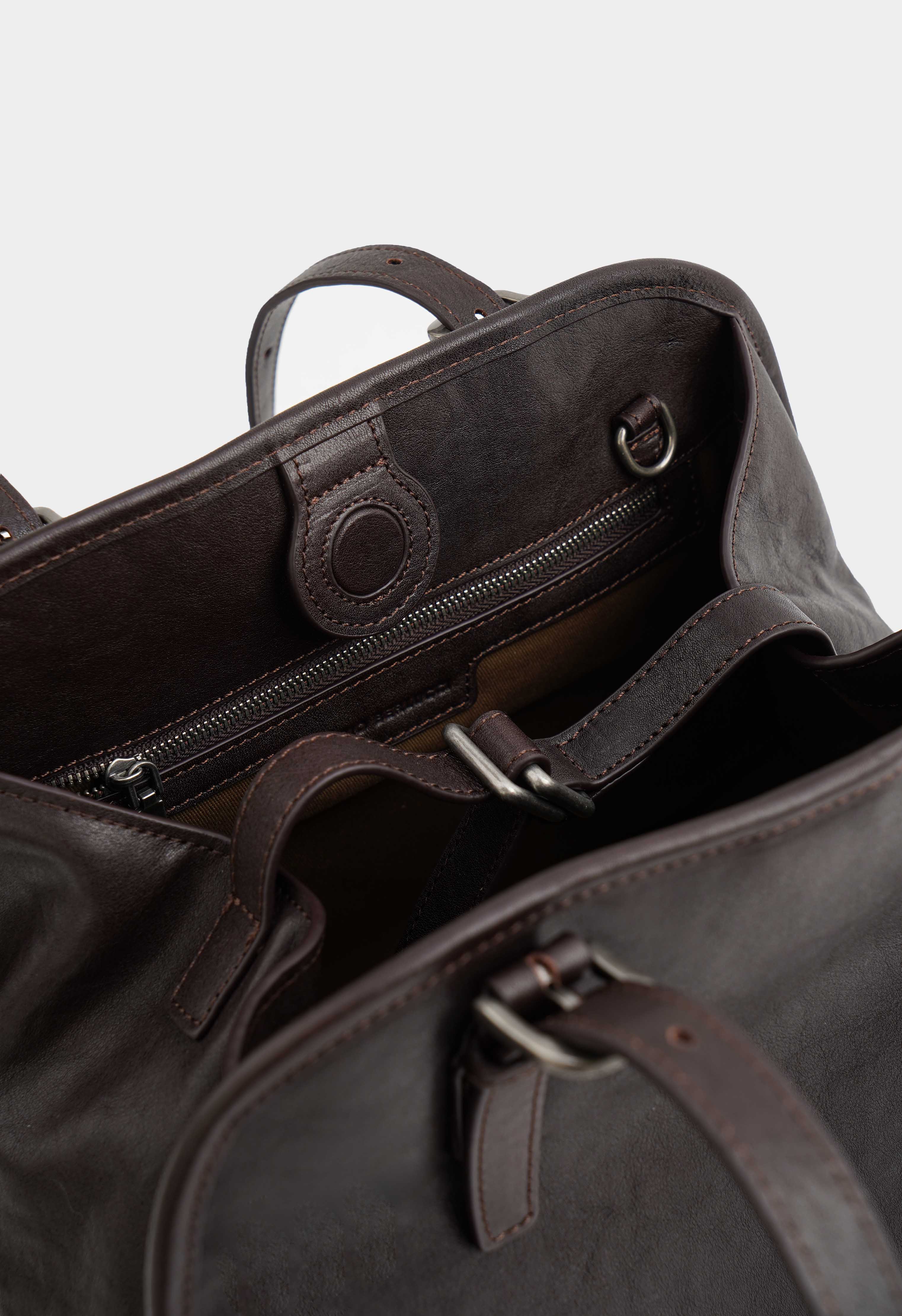 Сумка коричневого цвета из натуральной кожи – универсальная модель на каждый день: две съемные ручки позволяют менять стиль и посадку, а плечевой ремень в комплекте дает максимум свободы в носке. Застежка на магнит закрывается быстро и надежно, фурнитура в оттенке металлик добавляет современный акцент, внутри – два кармана для аккуратной организации мелочей, внешний карман выручает, когда нужно быстро достать самое нужное.