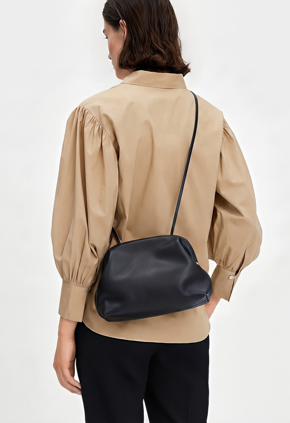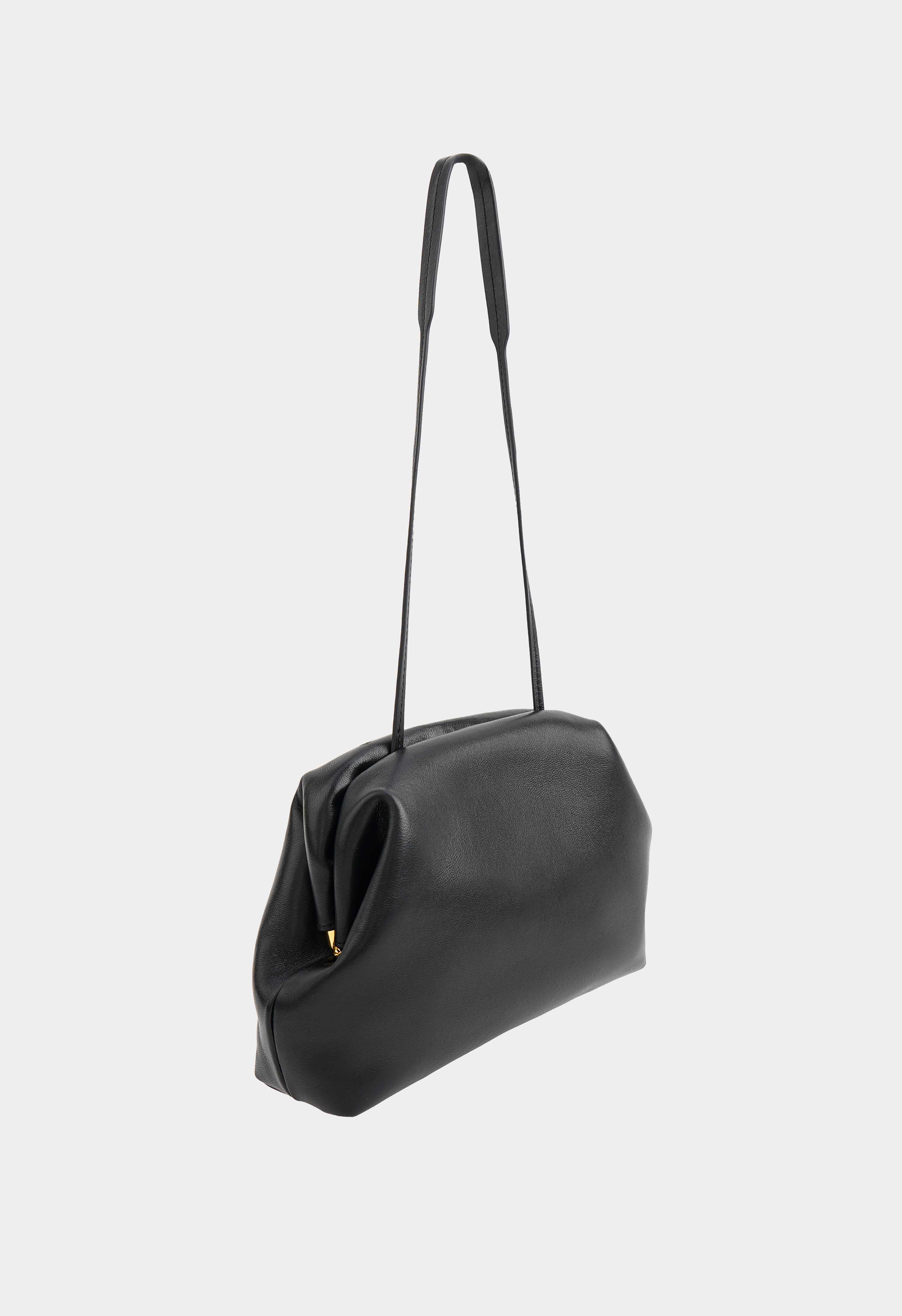 Минималистичная сумка черного цвета из натуральной кожи – идеальная база для любого образа: съемные ручки позволяют менять стиль носки, в то время как плечевой ремень в комплекте добавляет удобства на каждый день. Застежка на магнит закрывается быстро и надежно, золотая фурнитура красиво подчёркивает лаконичный дизайн, а внутри предусмотрен один карман, чтобы самое нужное всегда было аккуратно организовано и под рукой.