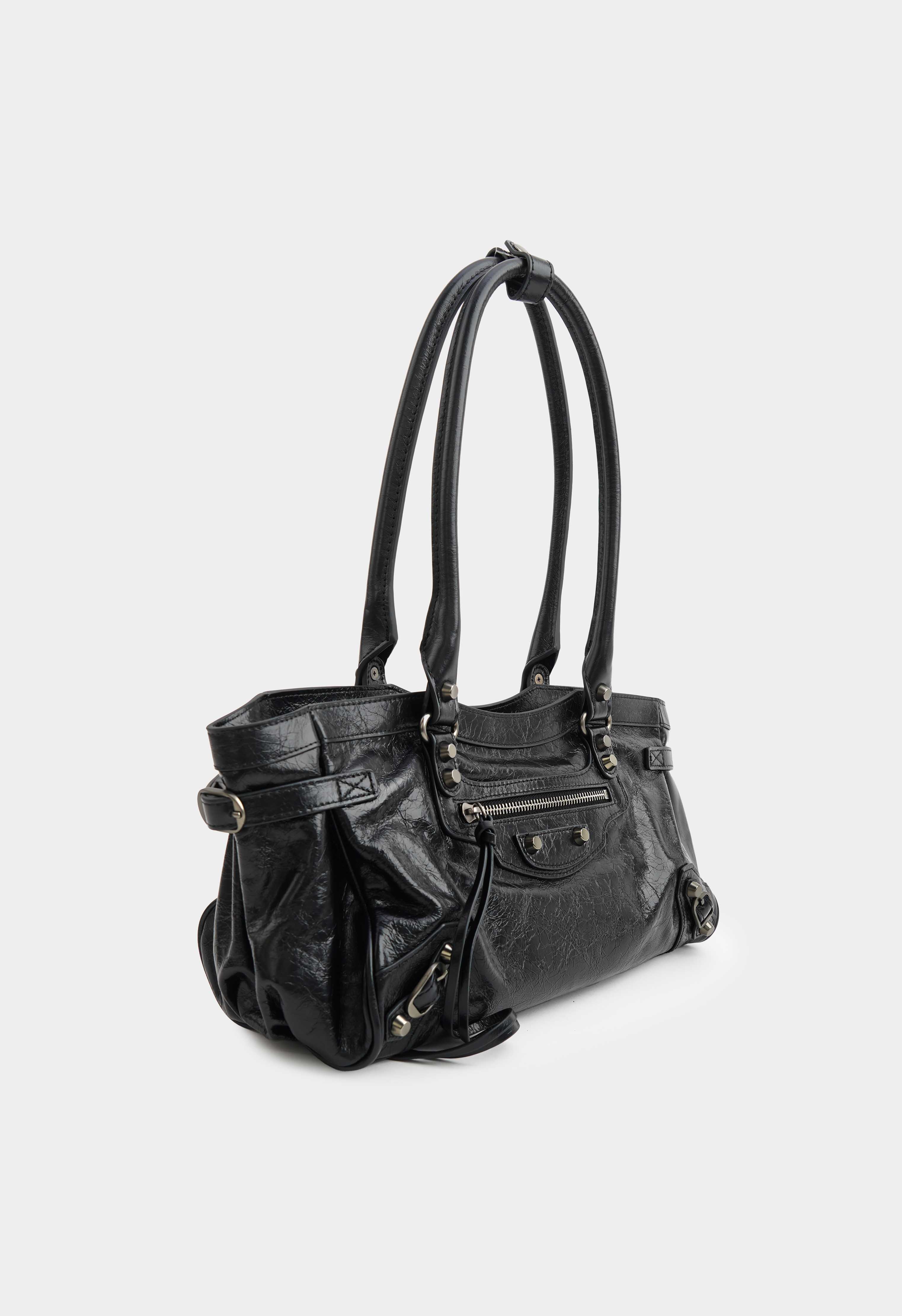 Черная сумка из натуральной кожи – универсальная и по-настоящему практичная модель на каждый день: удобные ручки комфортно лежат в руке и на плече, в то время как фурнитура металлик добавляет современный акцент и делает образ собранным. Молния надежно закрывает содержимое, внутри расположены два кармана для аккуратной организации мелочей, а внешний карман выручит, когда нужно быстро достать телефон или ключи.