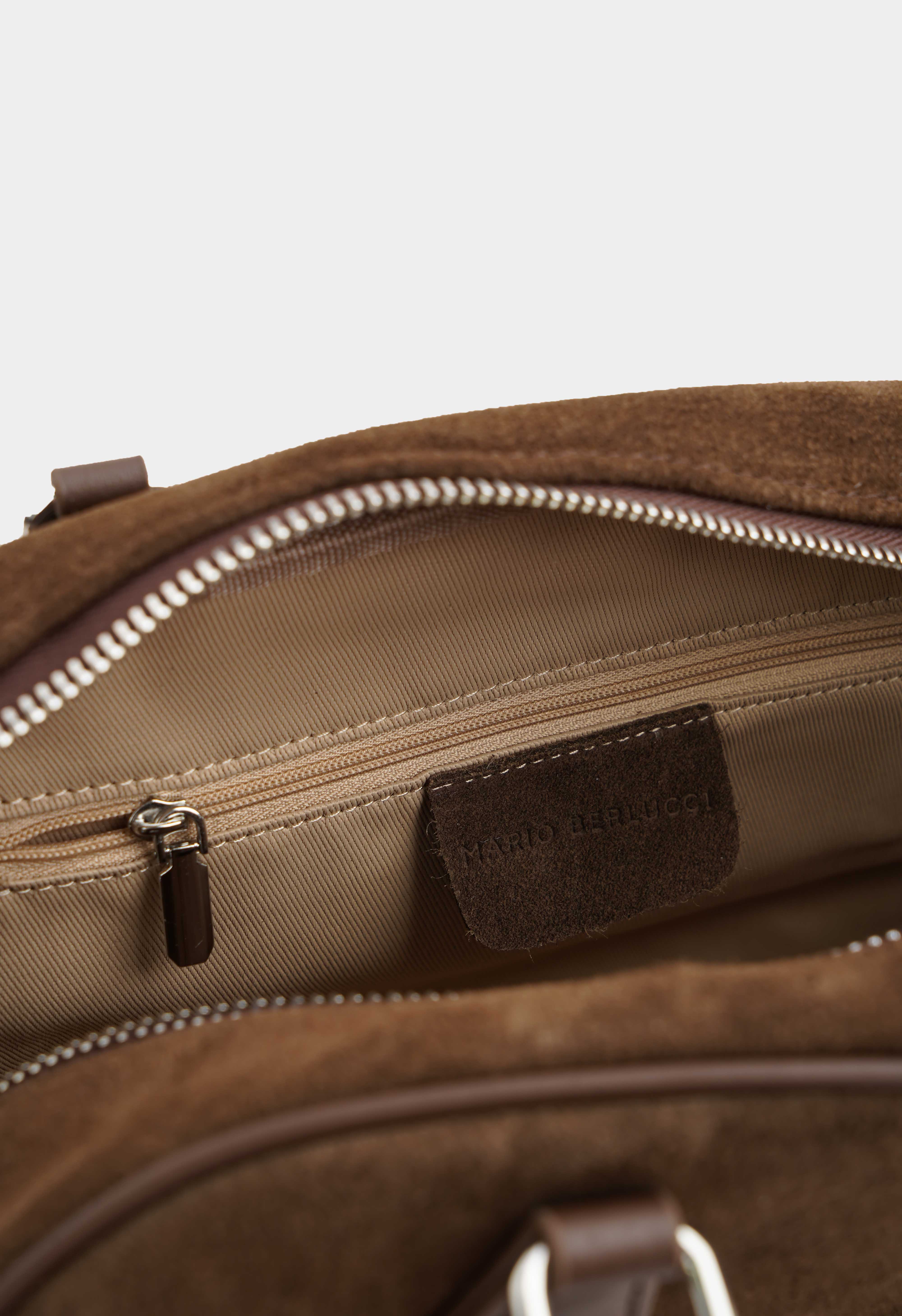Замшевая сумка светло-коричневого цвета – уютный акцент на каждый день: натуральная замша выглядит благородно и приятно ощущается в руках, а обвес из кожаной тесьмы добавляет характер и завершает образ. Серебряная фурнитура красиво контрастирует с глубоким коричневым оттенком, молния надежно фиксирует содержимое, в то время как два внутренних кармана помогают держать телефон и мелочи в порядке.