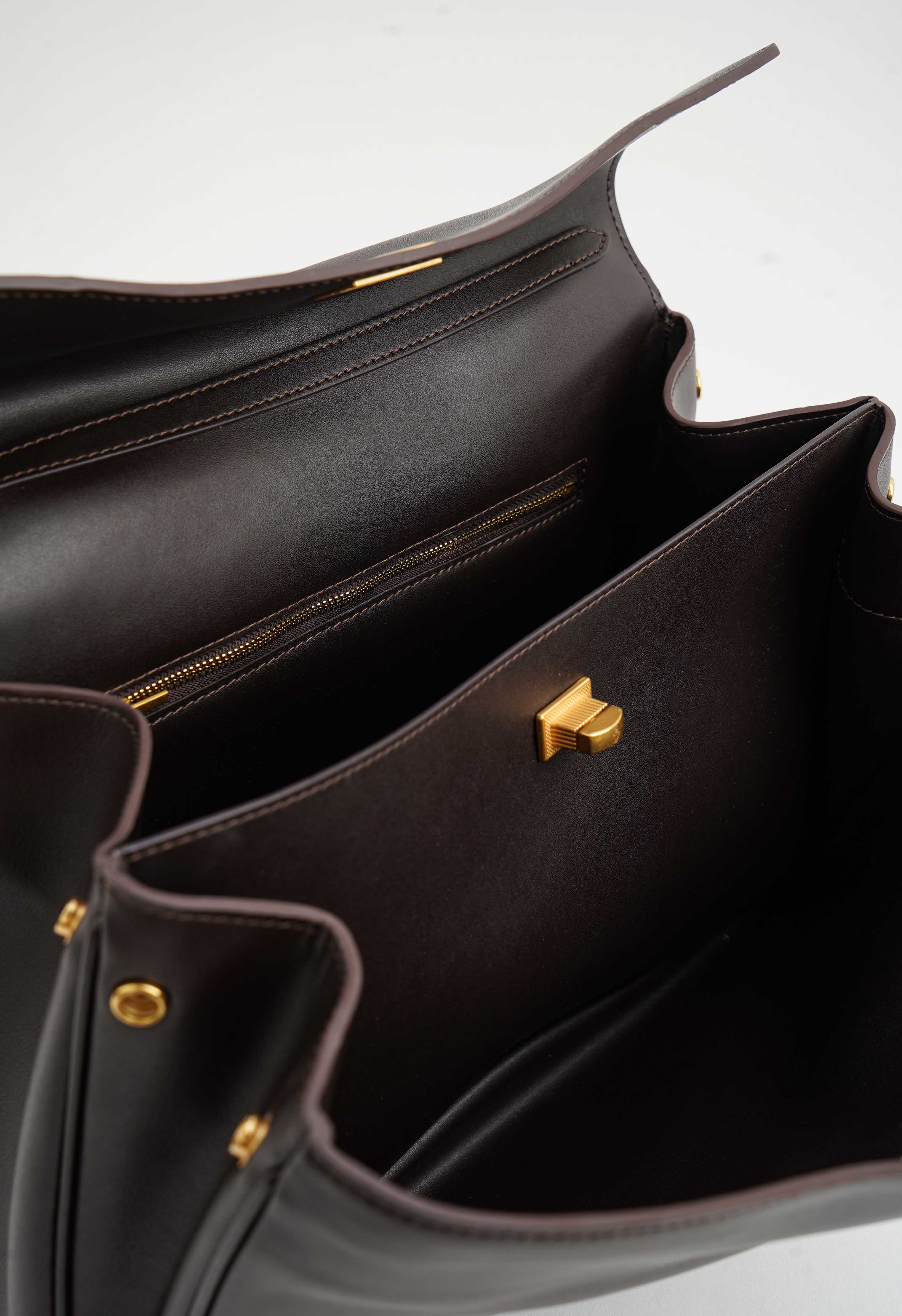 Эффектная сумка темно-коричневого цвета из натуральной кожи – универсальный вариант на каждый день: в комплекте плечевой ремень для комфортной носки, а обвес из кожаной тесьмы добавляет аккуратную стильную деталь. Пряжка и серебряная фурнитура подчеркивают лаконичный дизайн, внутри предусмотрен один карман для мелочей, в то время как два внешних кармана помогают держать под рукой самое нужное.