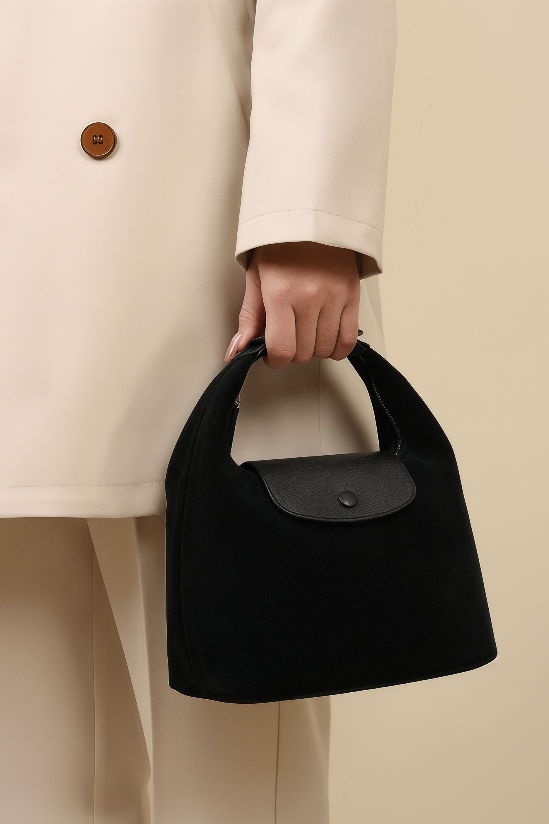 Черная женская замшевая сумка – стильный и функциональный аксессуар для повседневной жизни и городских образов. Надежный кожаный клапан с молнией и два внутренних кармана обеспечивают удобное хранение и организацию вещей, а один плечевой ремень и съемная дополнительная ручка позволяют носить сумку так, как удобно именно вам. Мягкая замша придает сумке благородную текстуру, в то время как серебряная фурнитура добавляет современный акцент, подчеркивая актуальный дизайн. Эта сумка станет идеальным выбором для работы, прогулок и активного городского ритма, сочетая комфорт, практичность и стиль.