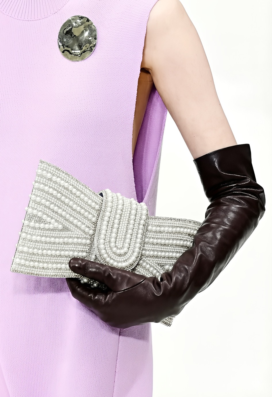 Серебряный клатч в форме эффектного банта – ваш готовый акцент для вечера: текстильная основа украшена декоративными светлыми бусинами и сияющими стразами, которые красиво переливаются при каждом движении и мгновенно притягивают взгляды. Удобная застежка на кнопке надежно фиксирует содержимое, а цепочка в комплекте позволяет носить клатч через плечо, оставляя руки свободными.