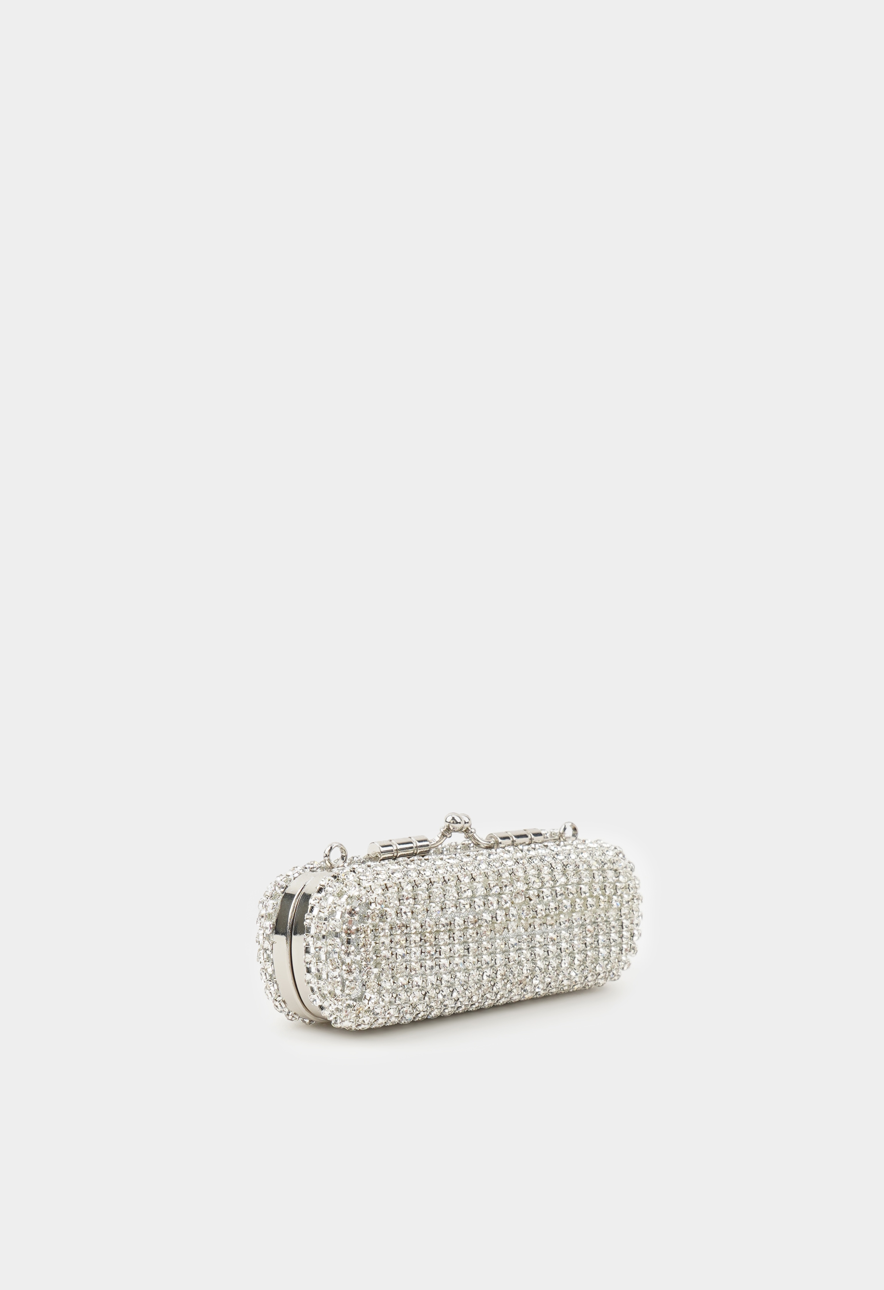 Роскошный серебряный клатч, полностью усыпанный сияющими стразами, создан для тех случаев, когда хочется блистать: он эффектно переливается при любом свете и моментально превращает даже самый базовый образ в вечерний. Жесткая форма держит идеальный вид, а защелкивающаяся застежка сохраняет содержимое в безопасности. В комплекте есть серебряная цепочка, чтобы вы могли носить клатч на плече или в руках, оставаясь свободной и уверенной весь вечер.